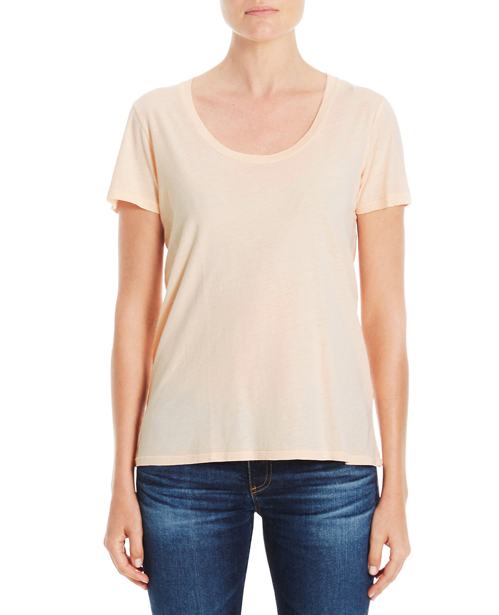 This scoopneck tee features a relaxed silhouette cut from supersoft cotton jersey. Short sleeves. Rib trim.