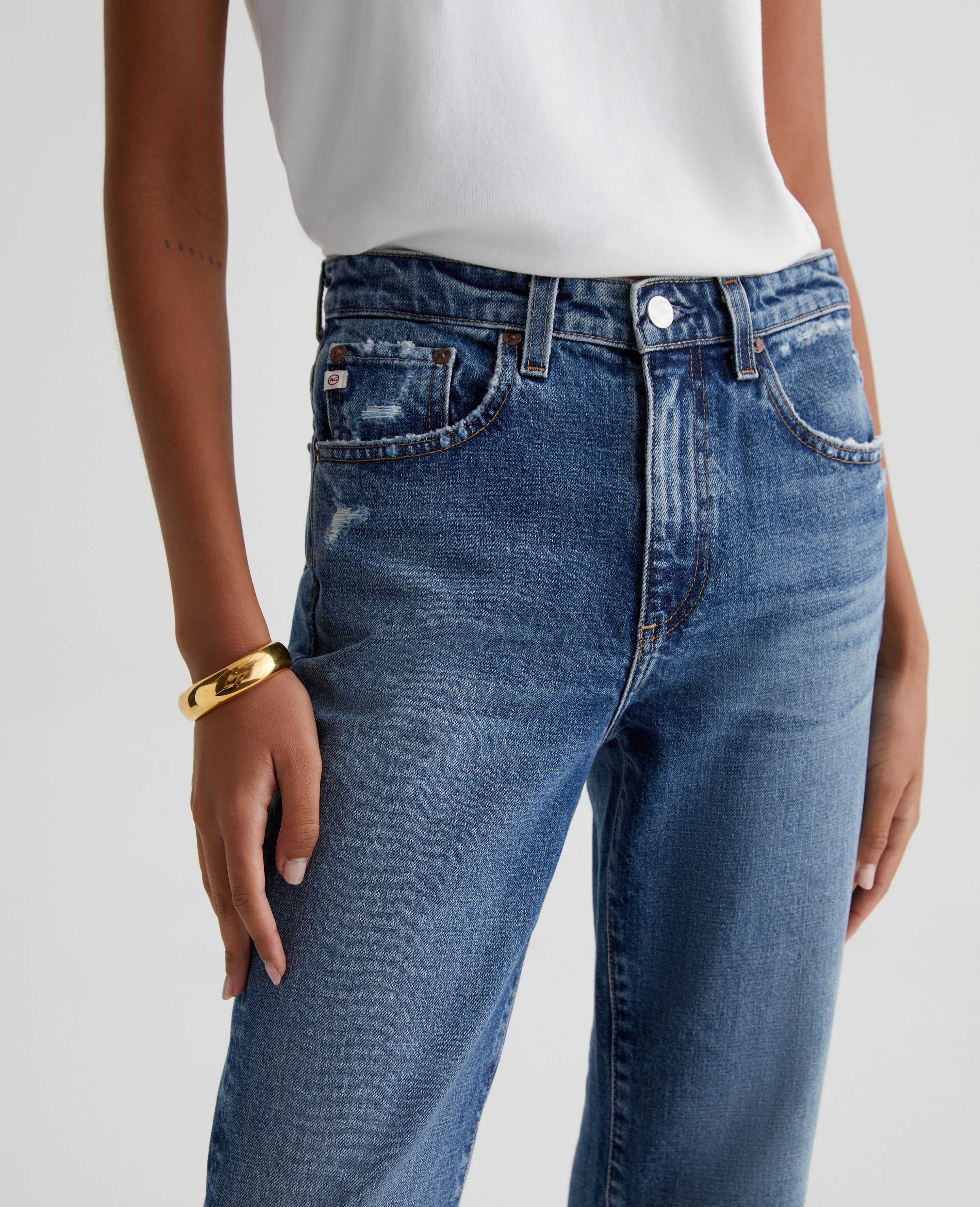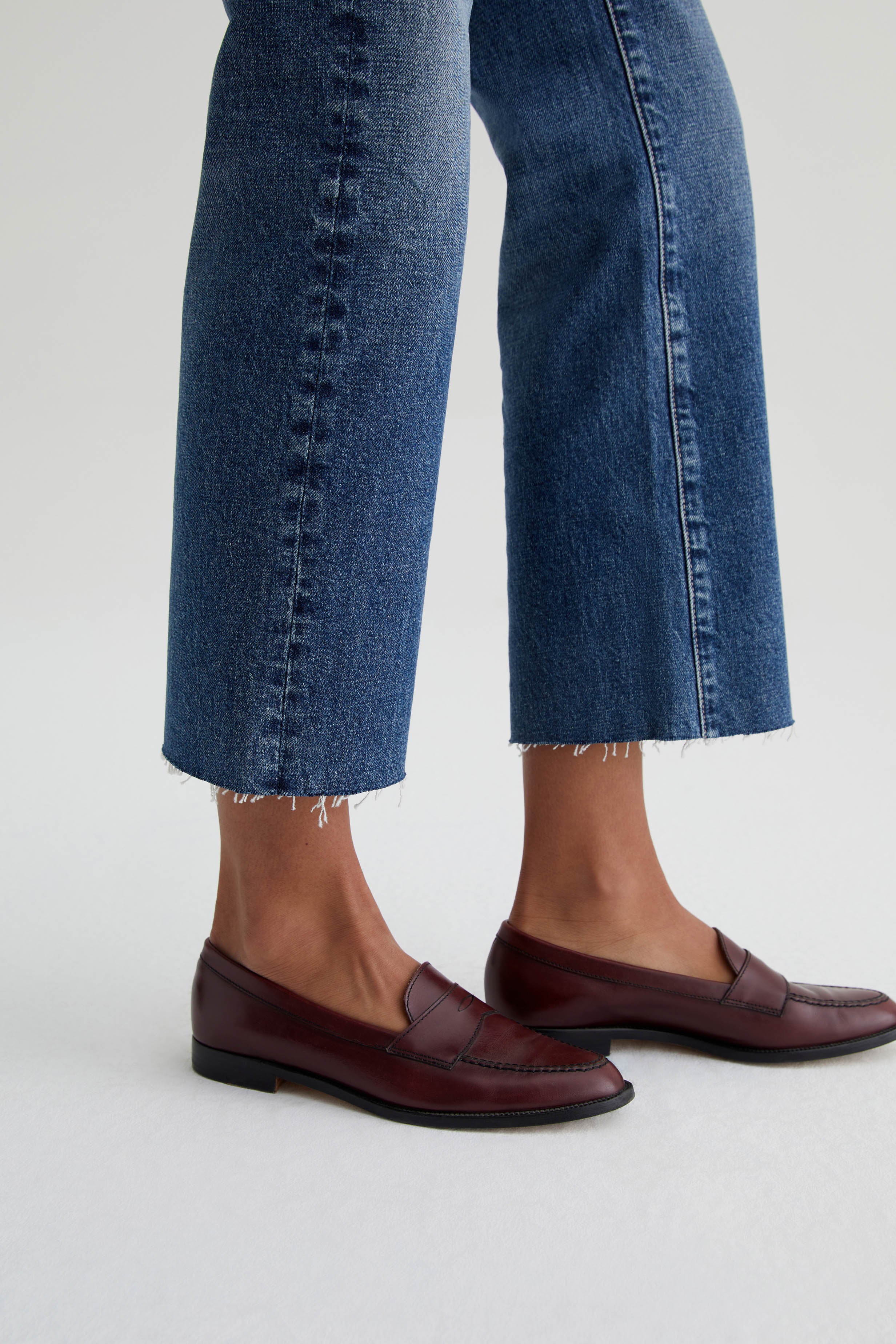 Kinsley is our high-rise pop crop jean featuring raw, cropped hems in a gently flared shape. This pair comes in 11 oz. 360° Denim with vintage bi-stretch and an AGed™ medium blue wash that's been faded, whiskered, and distressed to emulate authentic vintage denim that's seen 15 years of wear.