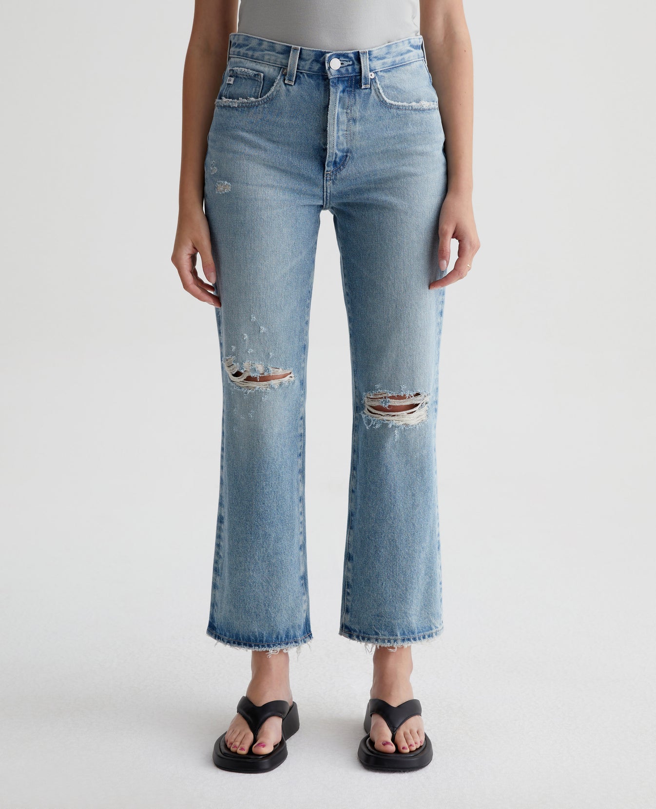 Kinsley is our high-rise pop crop jean featuring a button fly, ripped knees, and worn hems in a gently flared shape. Crafted from 100% cotton 12.75 oz. Savior Rigid Denim, this pair comes in a light wash that's been faded and heavily distressed for a lived-in look.