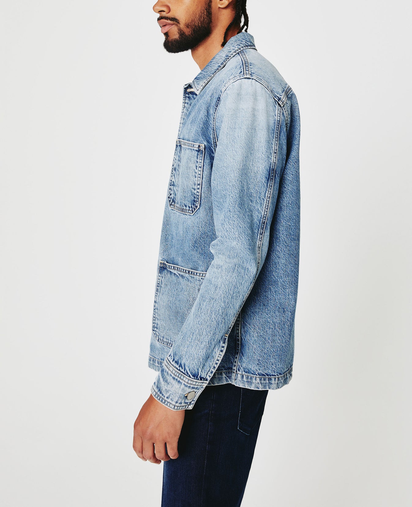 Our new Kirin Chore Jacket appears in a 16-year wash. The lightweight jacket is designed in 11.75 oz. Legion Denim for a workwear jacket that wears durability well. Our Kirin Chore Jacket finesses a modern utility construction with multi-patch pockets.