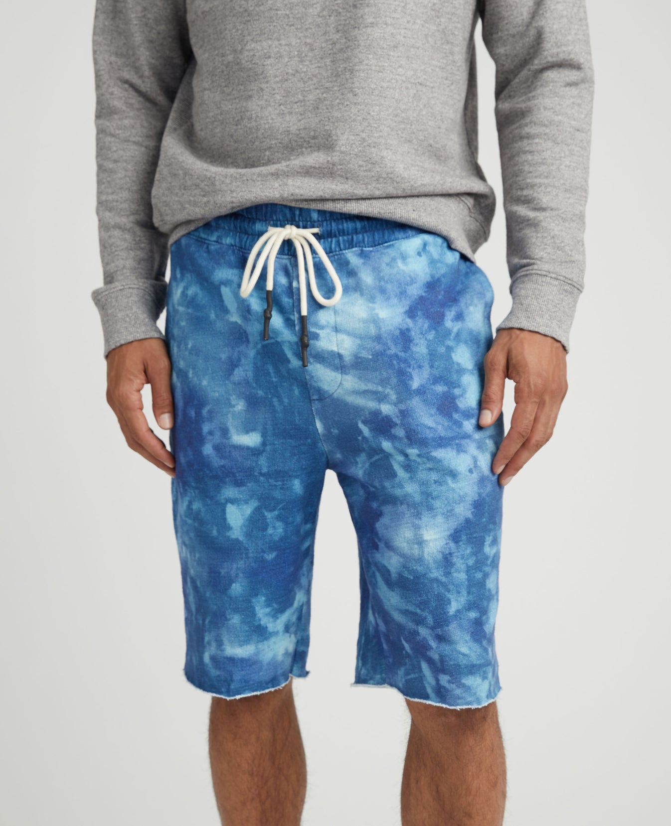 The Klay Terry Short features a vibrant ocean blue tie-dye treatment that revisits the eclectic 80s. The Klay Short offers vintage modifications in unexpected details like a new 10” inseam, rope drawcord with dipped ends, and raw hems. This men’s sweatshort is designed in an exclusive AG-made terry featuring a lightweight feel, ultra soft touch, and a color-rich finish.