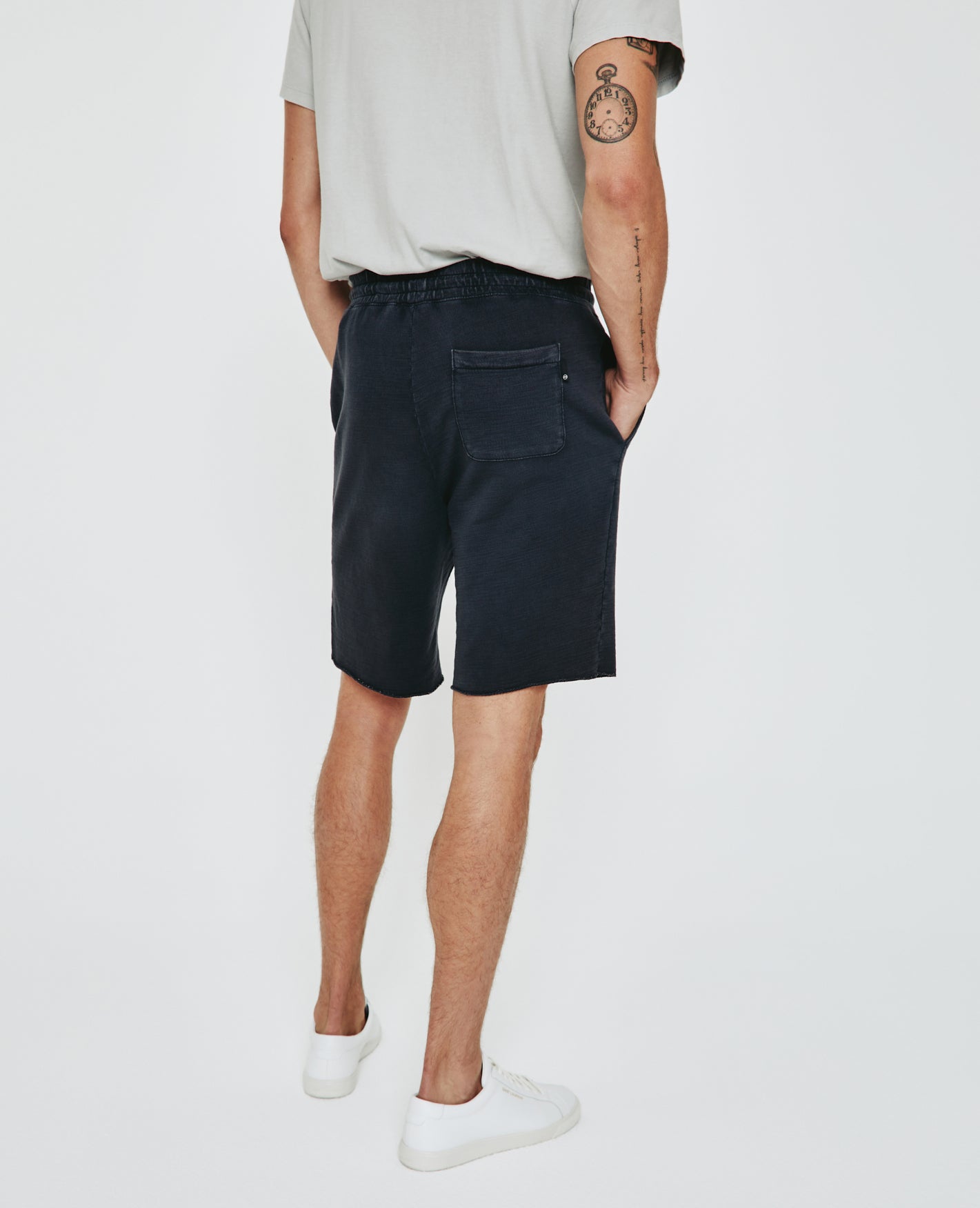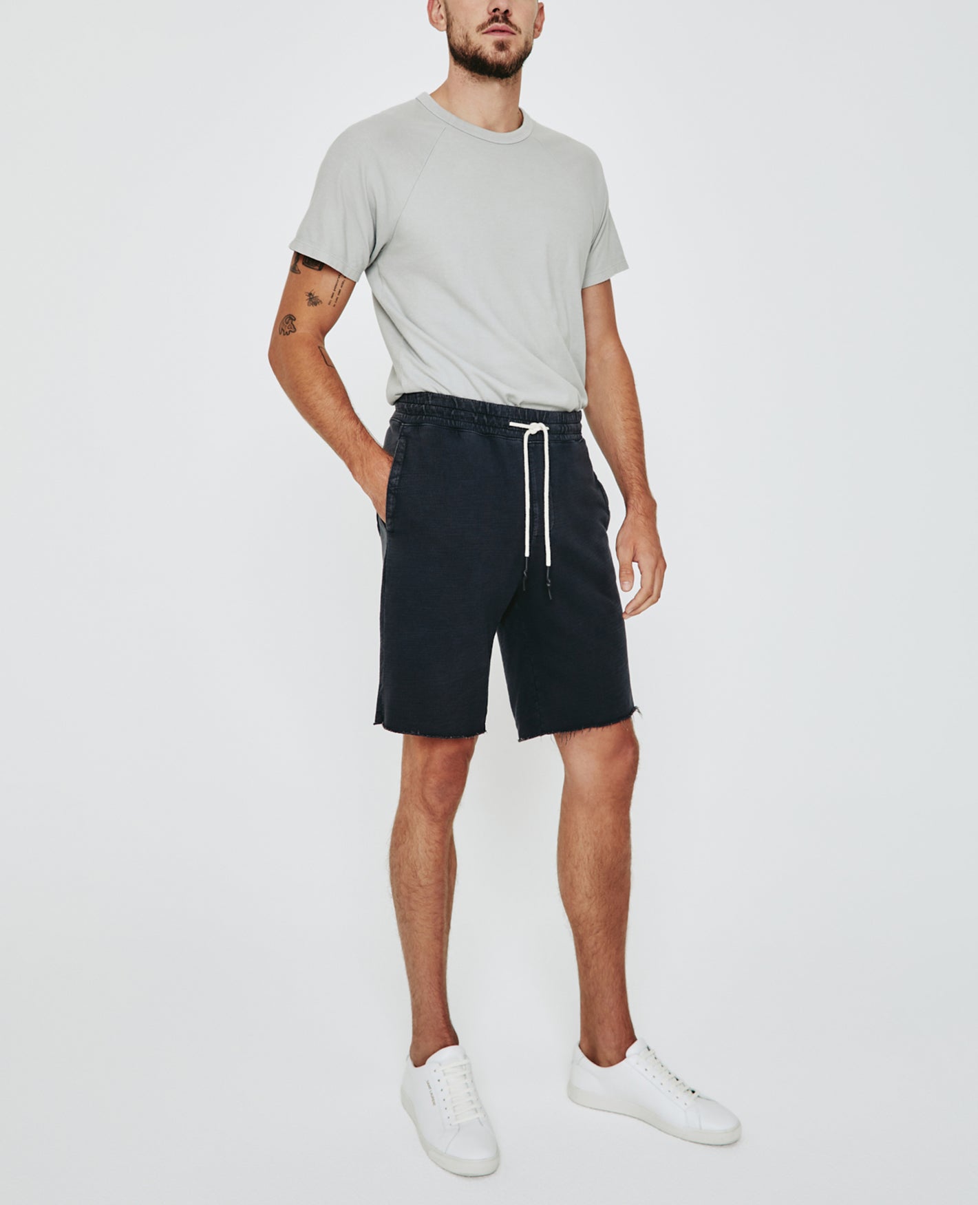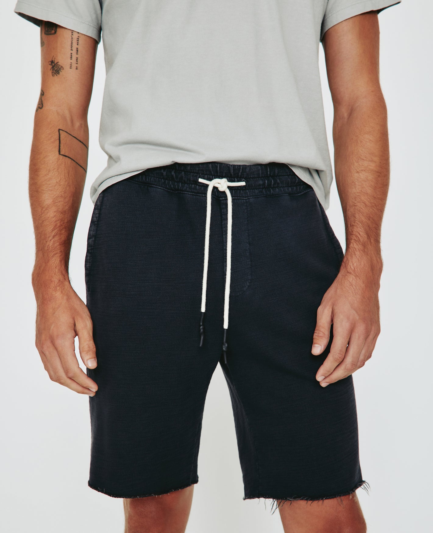 The Klay Terry Short is a sweatshort for men featuring a rich black dye finished with an innovative sulfur treatment for subtle highs and lows for lived-in appeal.The Klay Short offers vintage modifications in unexpected details like a new 10” inseam, rope drawcord with dipped ends, and rolled raw hems. This men’s sweat short is designed in an exclusive AG-made terry featuring a lightweight feel, ultra soft touch, and a color-rich finish. Matching top available inThe Sulfur X Black Elba Crew.
