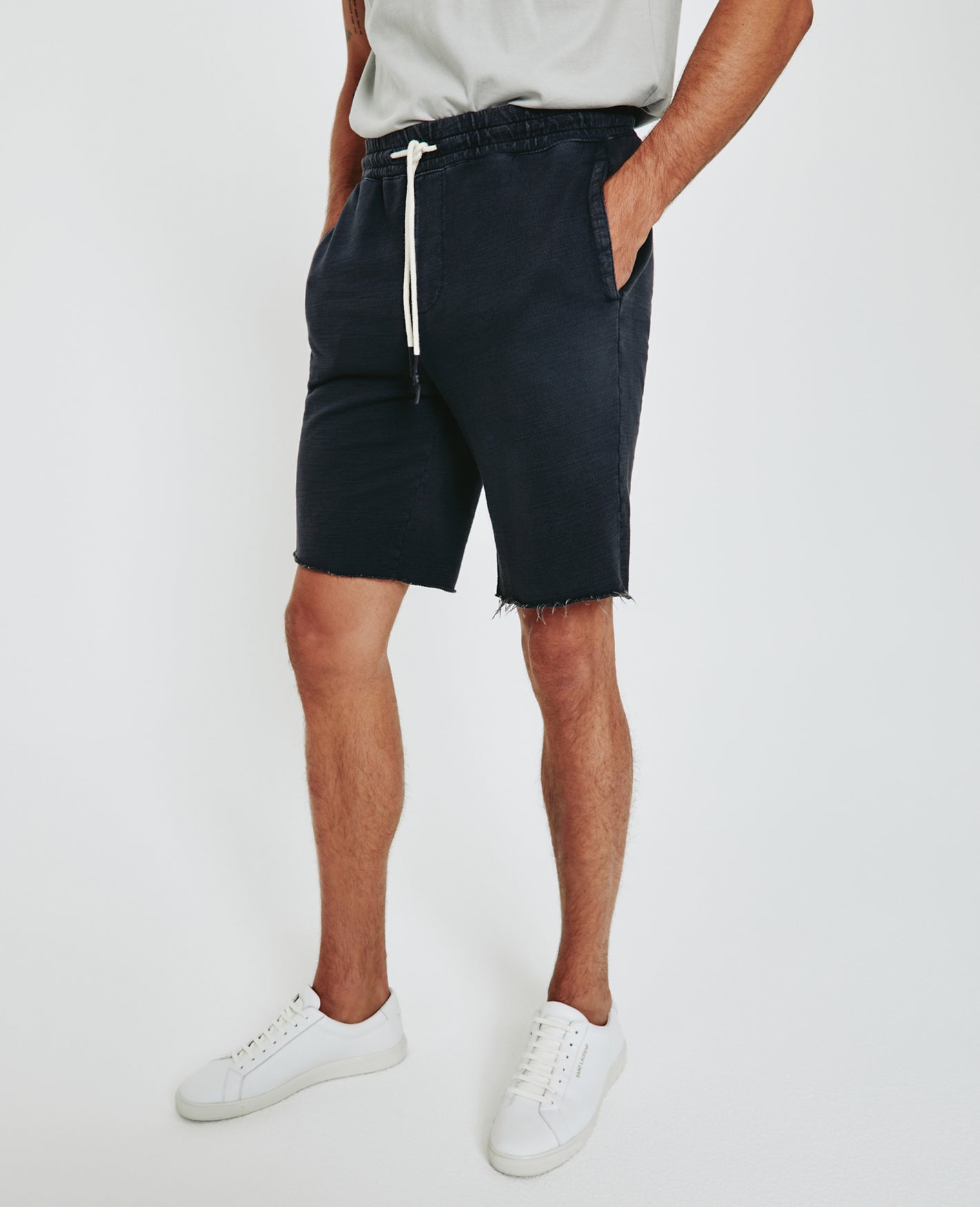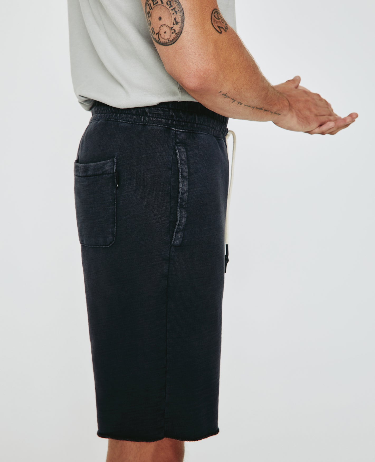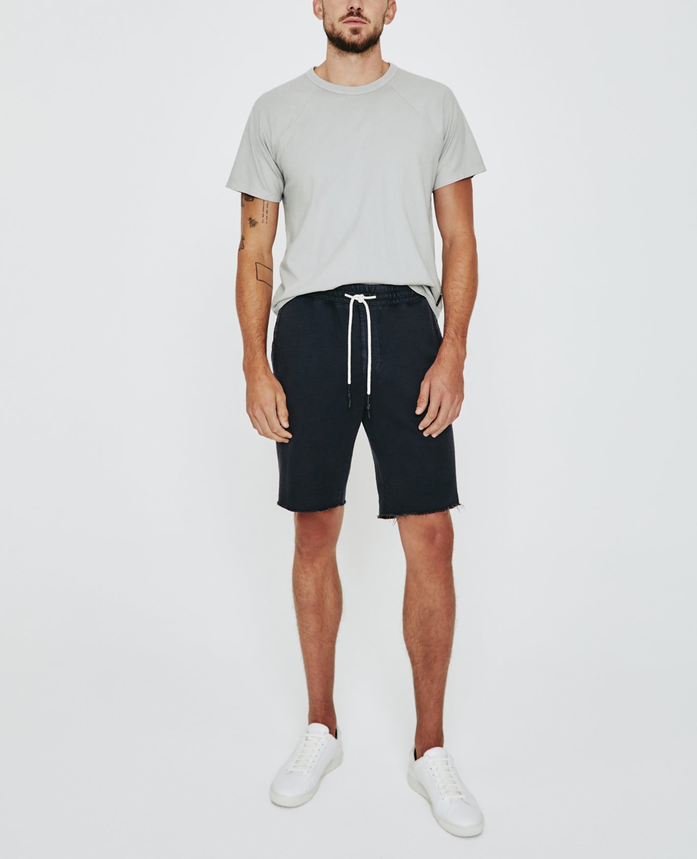 The Klay Terry Short is a sweatshort for men featuring a rich black dye finished with an innovative sulfur treatment for subtle highs and lows for lived-in appeal.The Klay Short offers vintage modifications in unexpected details like a new 10” inseam, rope drawcord with dipped ends, and rolled raw hems. This men’s sweat short is designed in an exclusive AG-made terry featuring a lightweight feel, ultra soft touch, and a color-rich finish. Matching top available inThe Sulfur X Black Elba Crew.