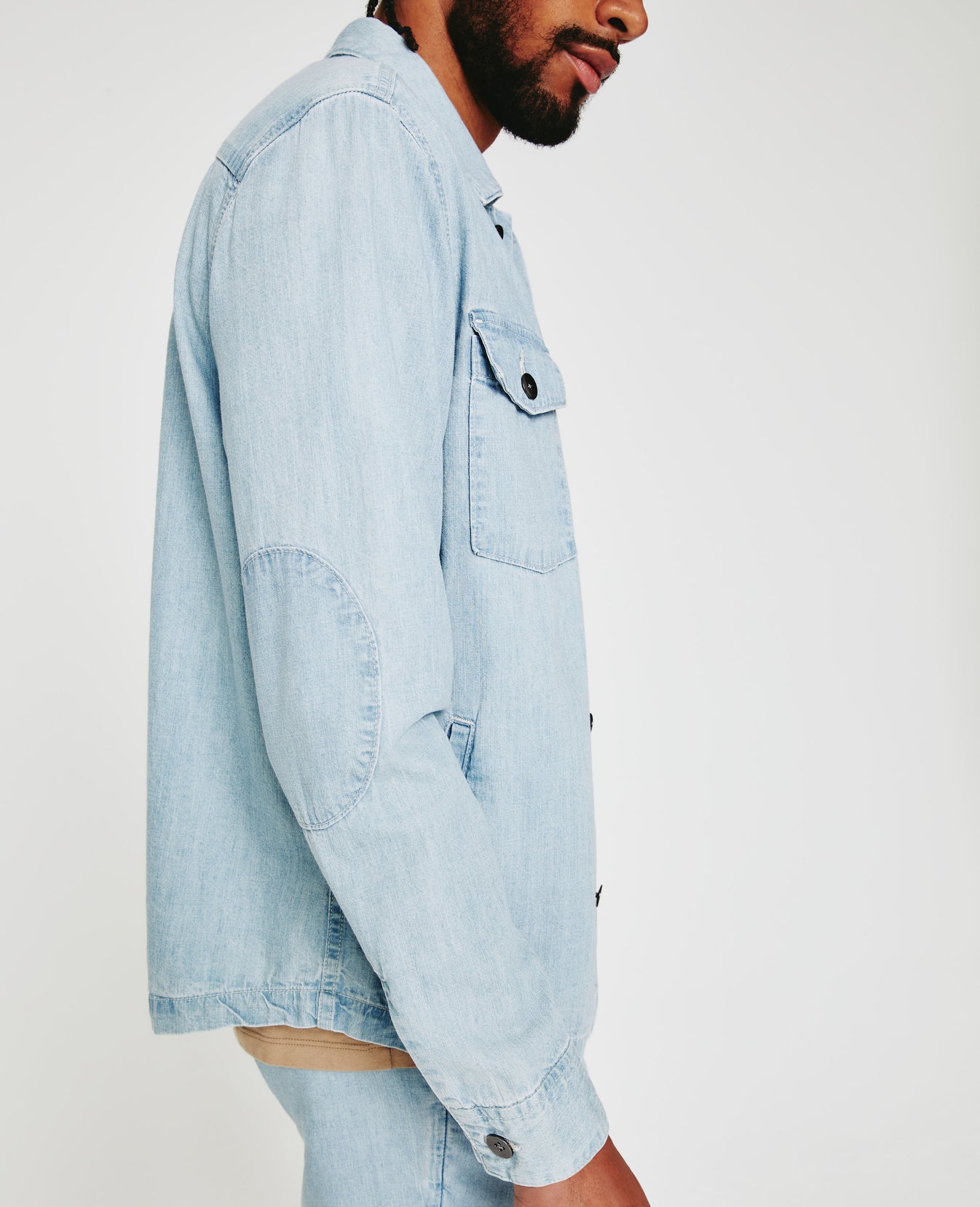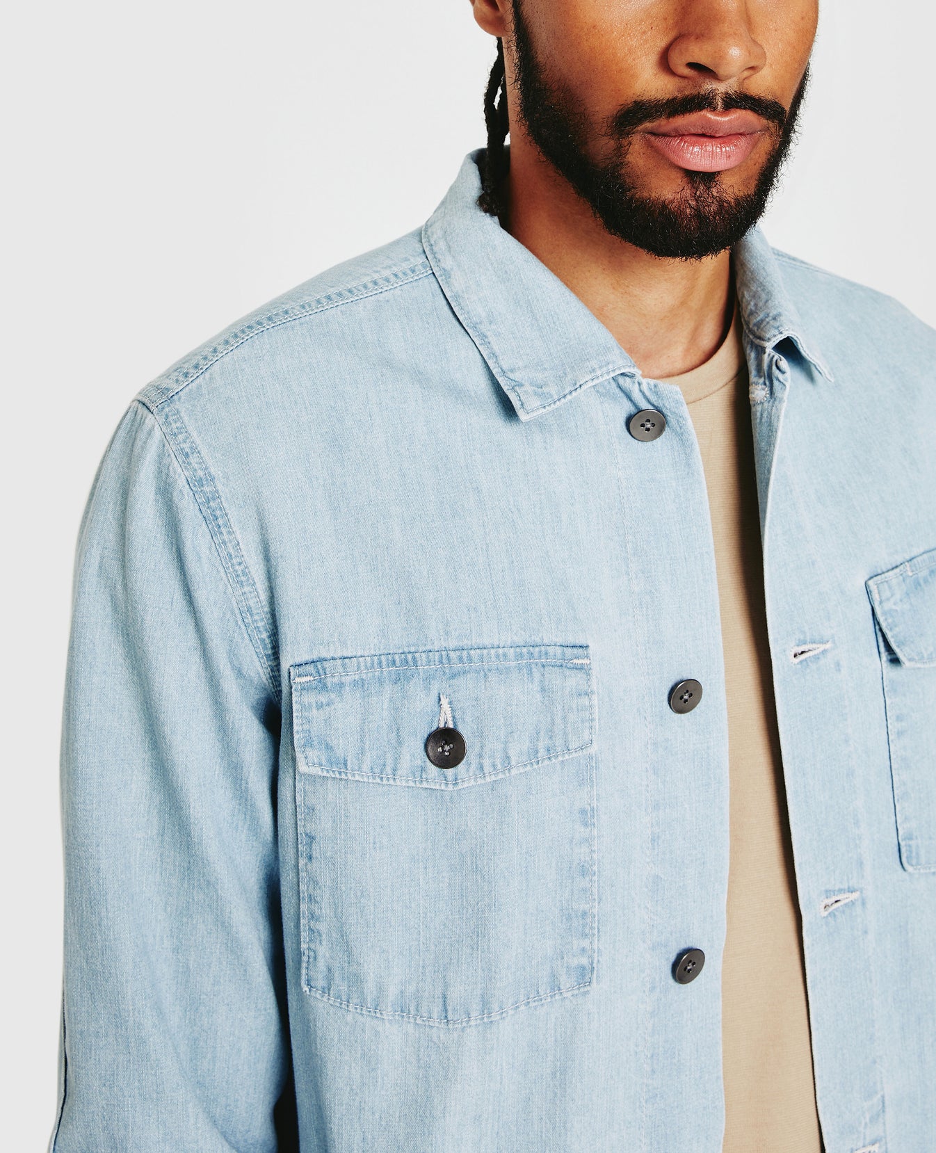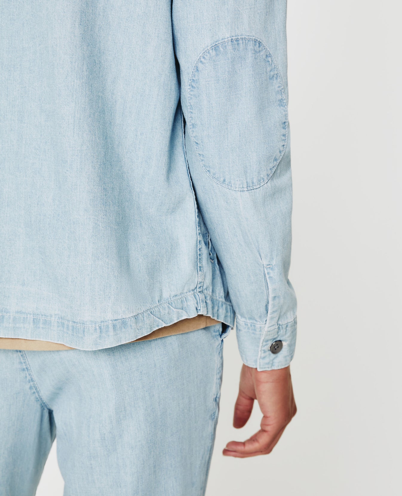 Our Lance Fatigue is a utility-inspired button-up shirt in a medium indigo wash with drop shoulder construction and double chest pockets. Lance Fatigue is designed in Teak Denim, our classic 2x1 Chambray fabrication.