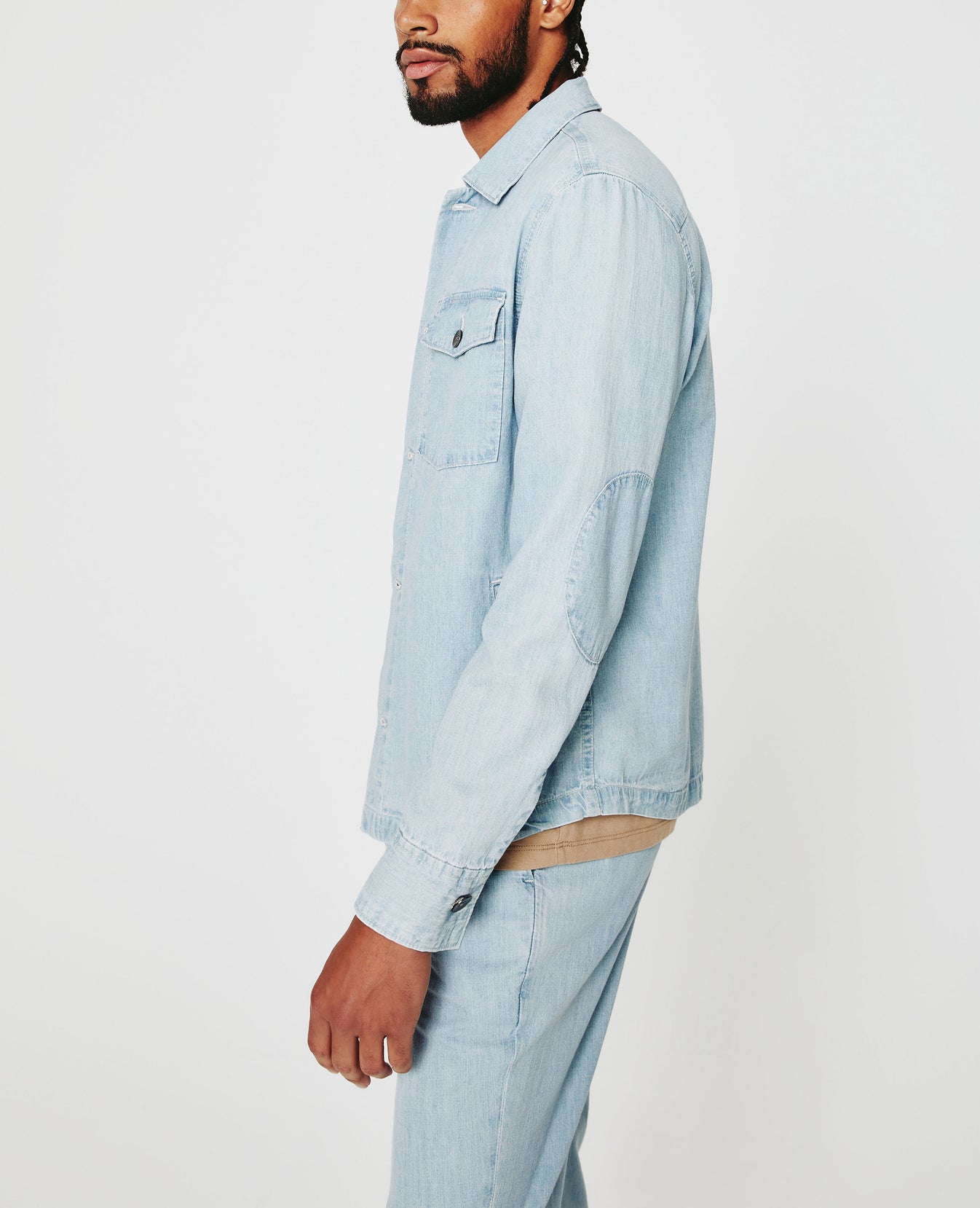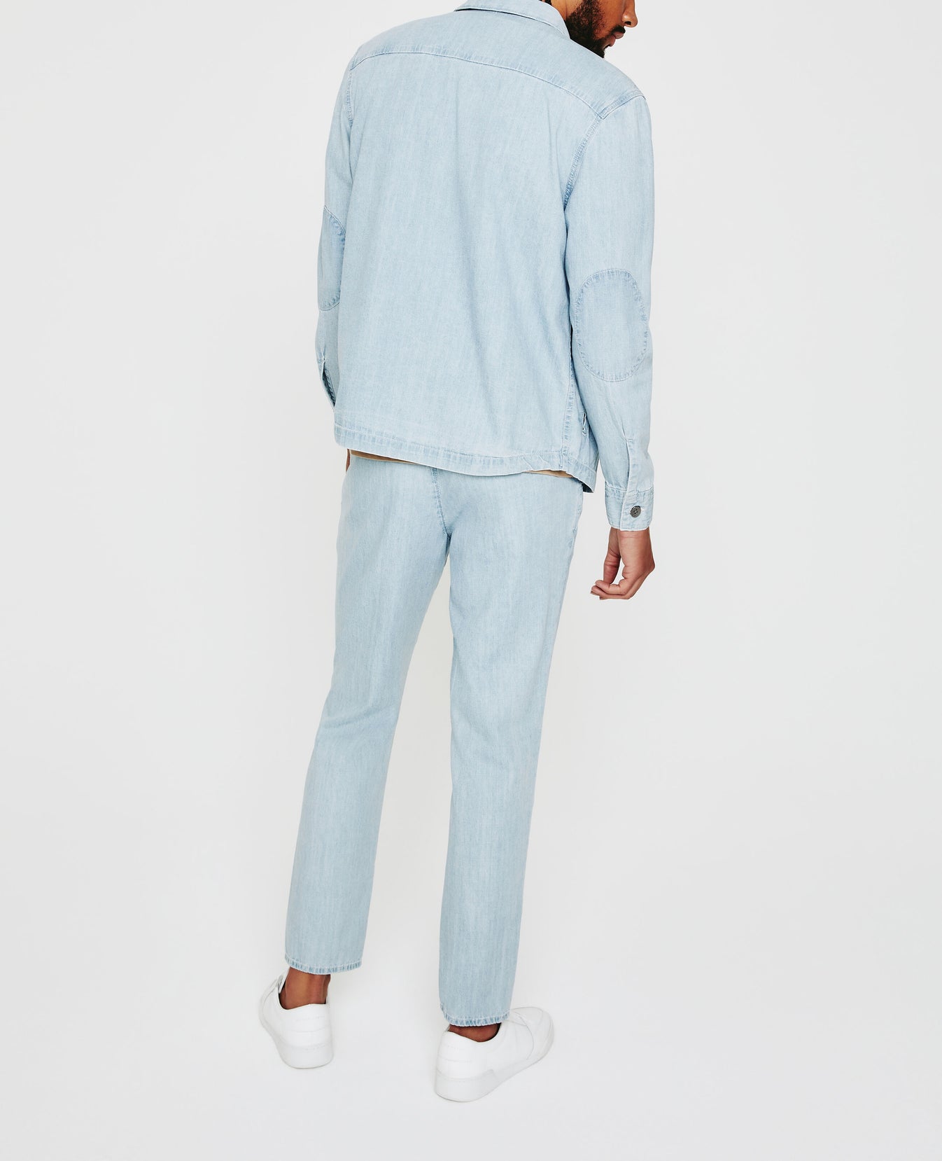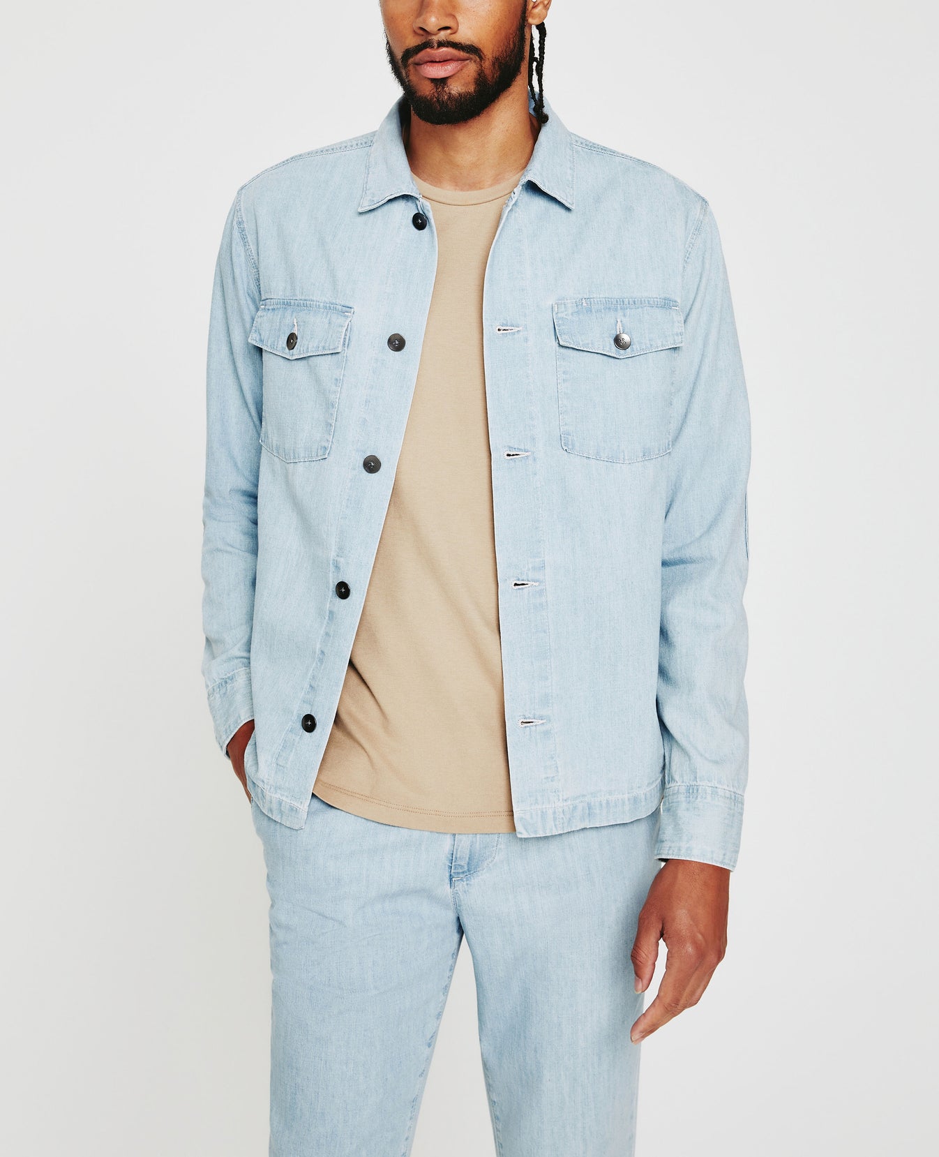Our Lance Fatigue is a utility-inspired button-up shirt in a medium indigo wash with drop shoulder construction and double chest pockets. Lance Fatigue is designed in Teak Denim, our classic 2x1 Chambray fabrication.