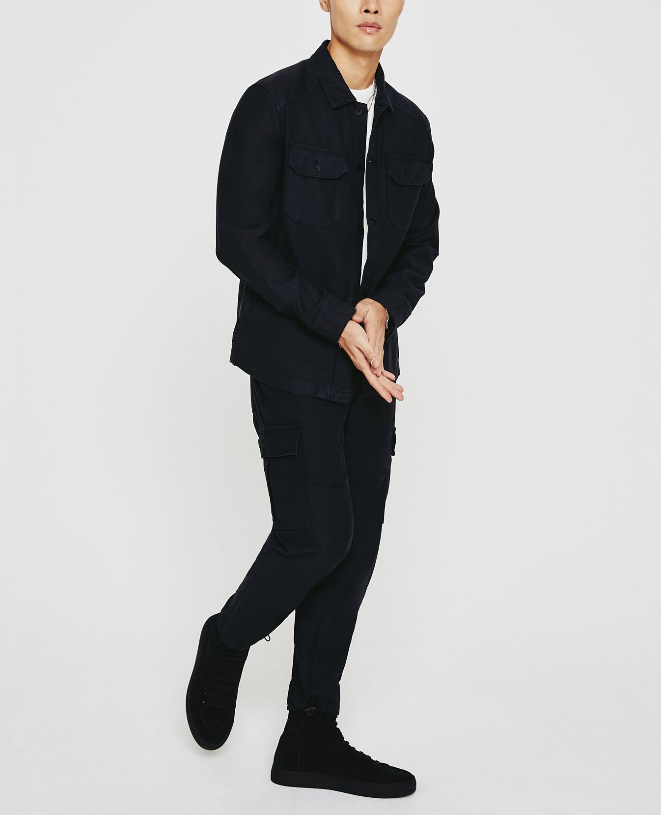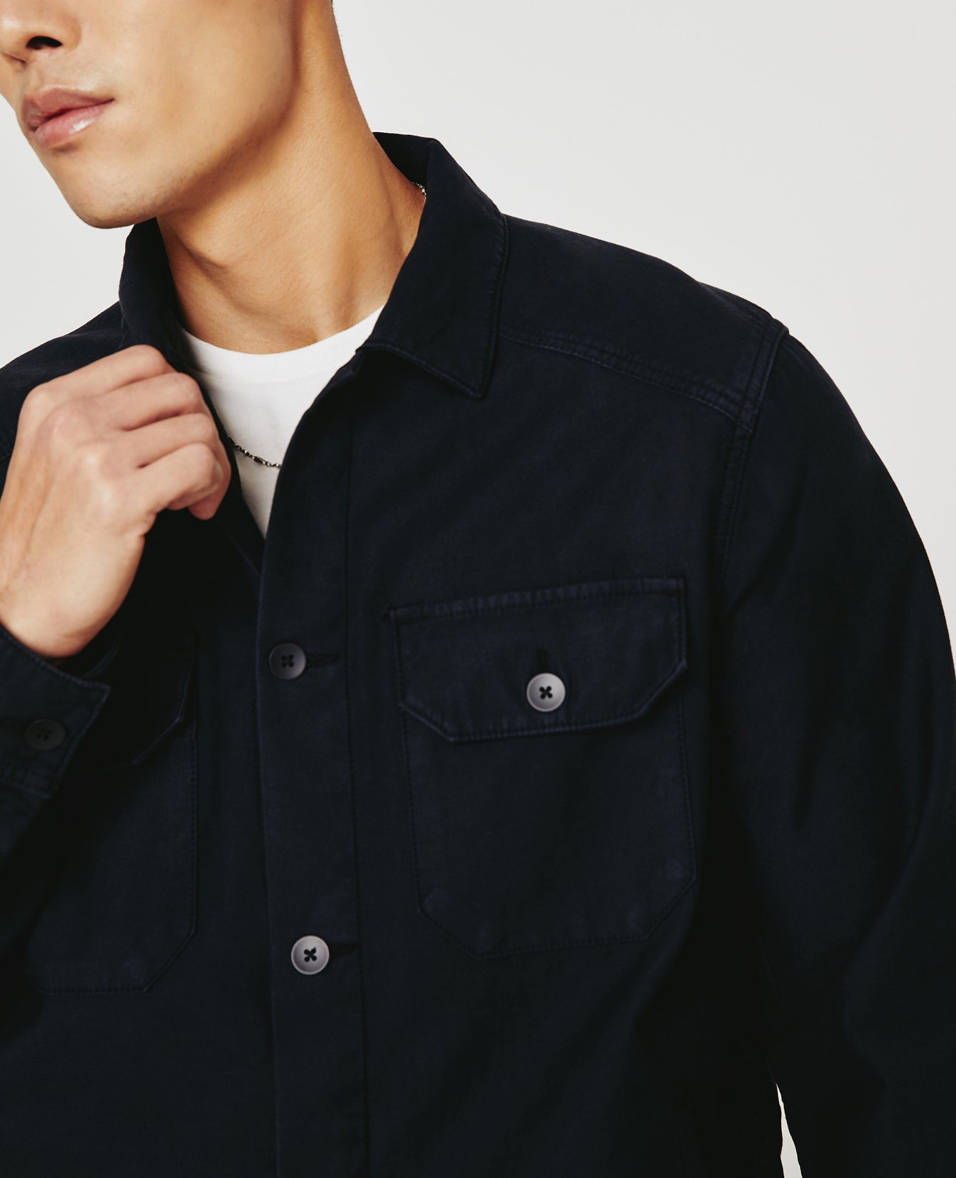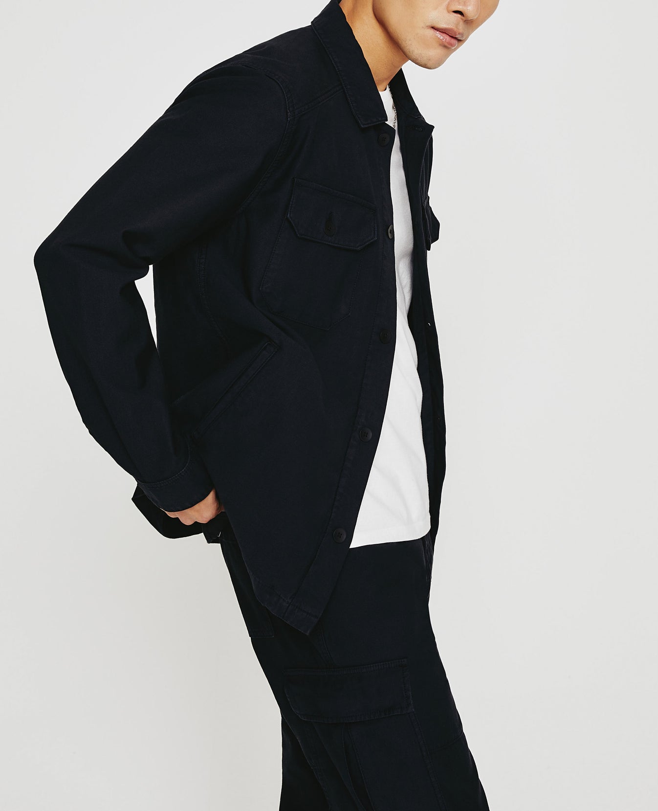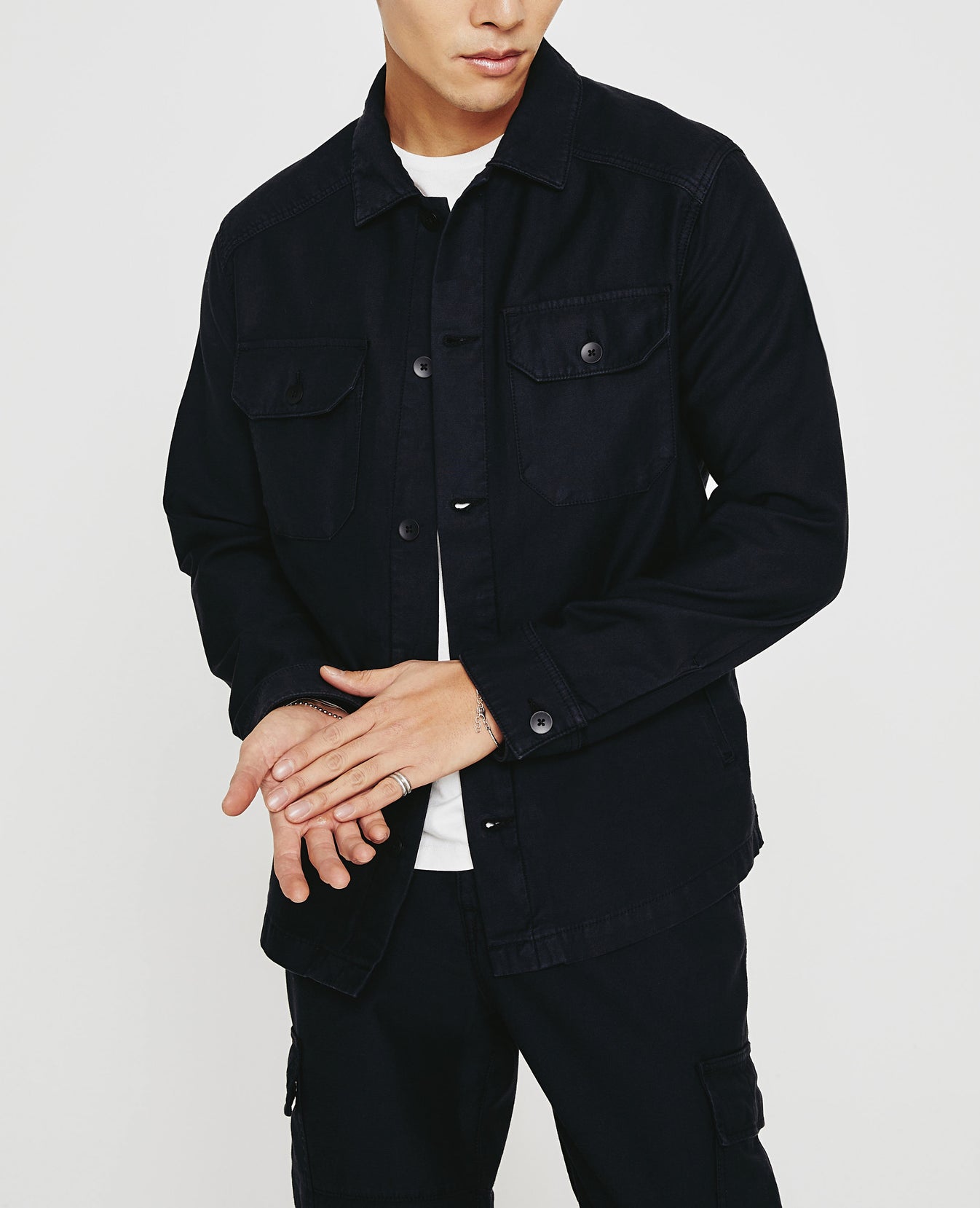 Our Lance Fatigue is a utility-inspired button-up shirt with long sleeves, drop shoulder construction, and flap pockets at the chest. This men's buttonup shirt comes in 100% cotton reverse sateen that's been sulfur-dyed black for a gently faded appearance.