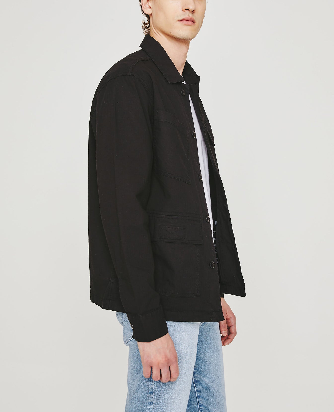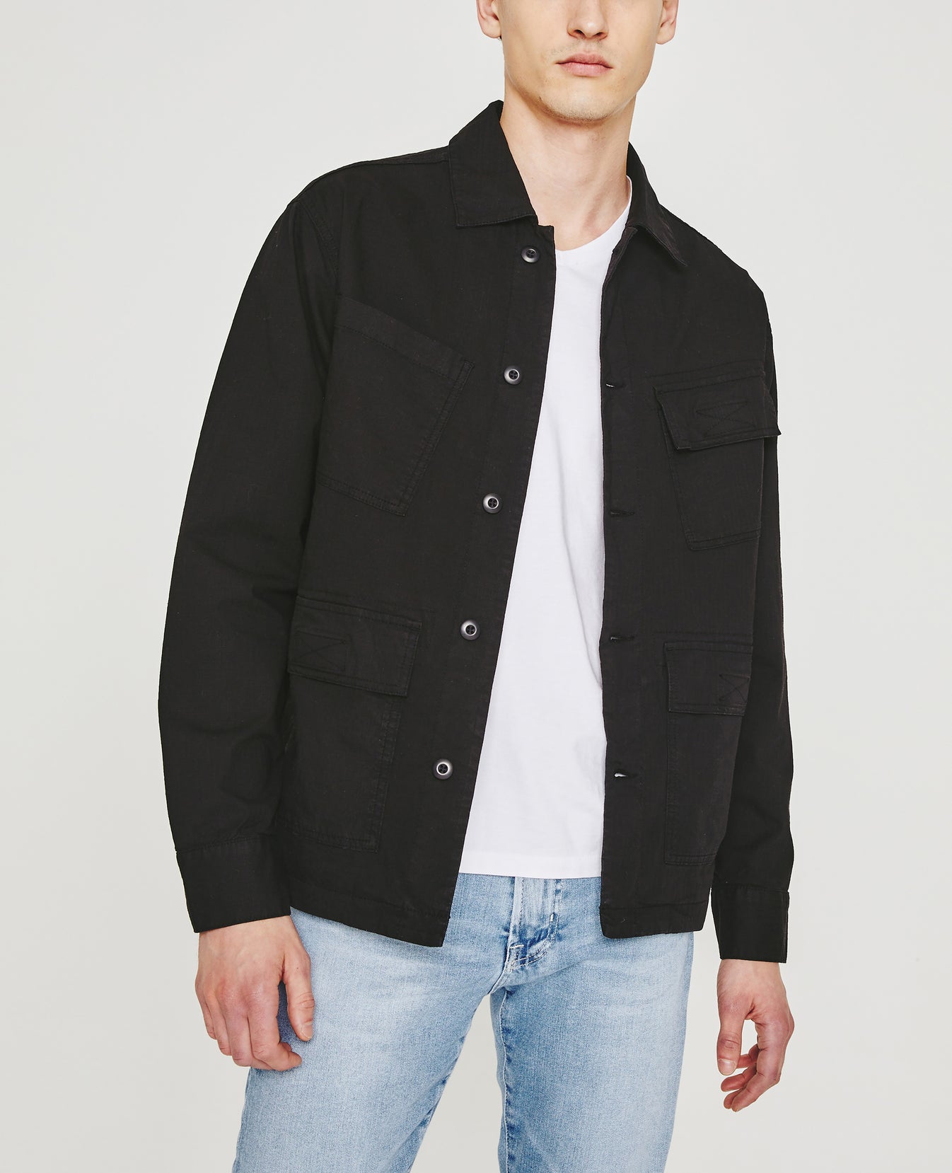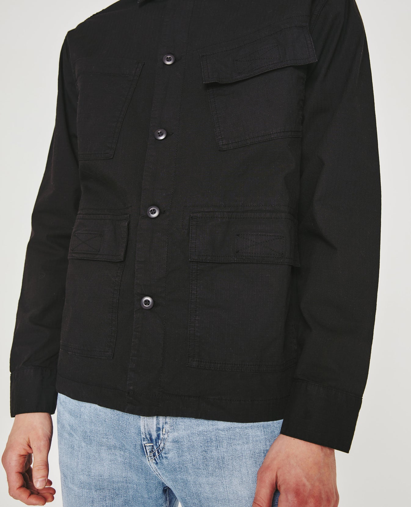 Our Lance Fatigue offers an updated take on the utility-inspired button-up shirt jacket. Angled chest pockets let you access your essentials more easily and break up the linear quality of the Tactical Twill ripstop fabrication. Featuring subtle stretch and a classic black shade, it's a versatile layer to throw on over a tee and underneath a heavier coat.