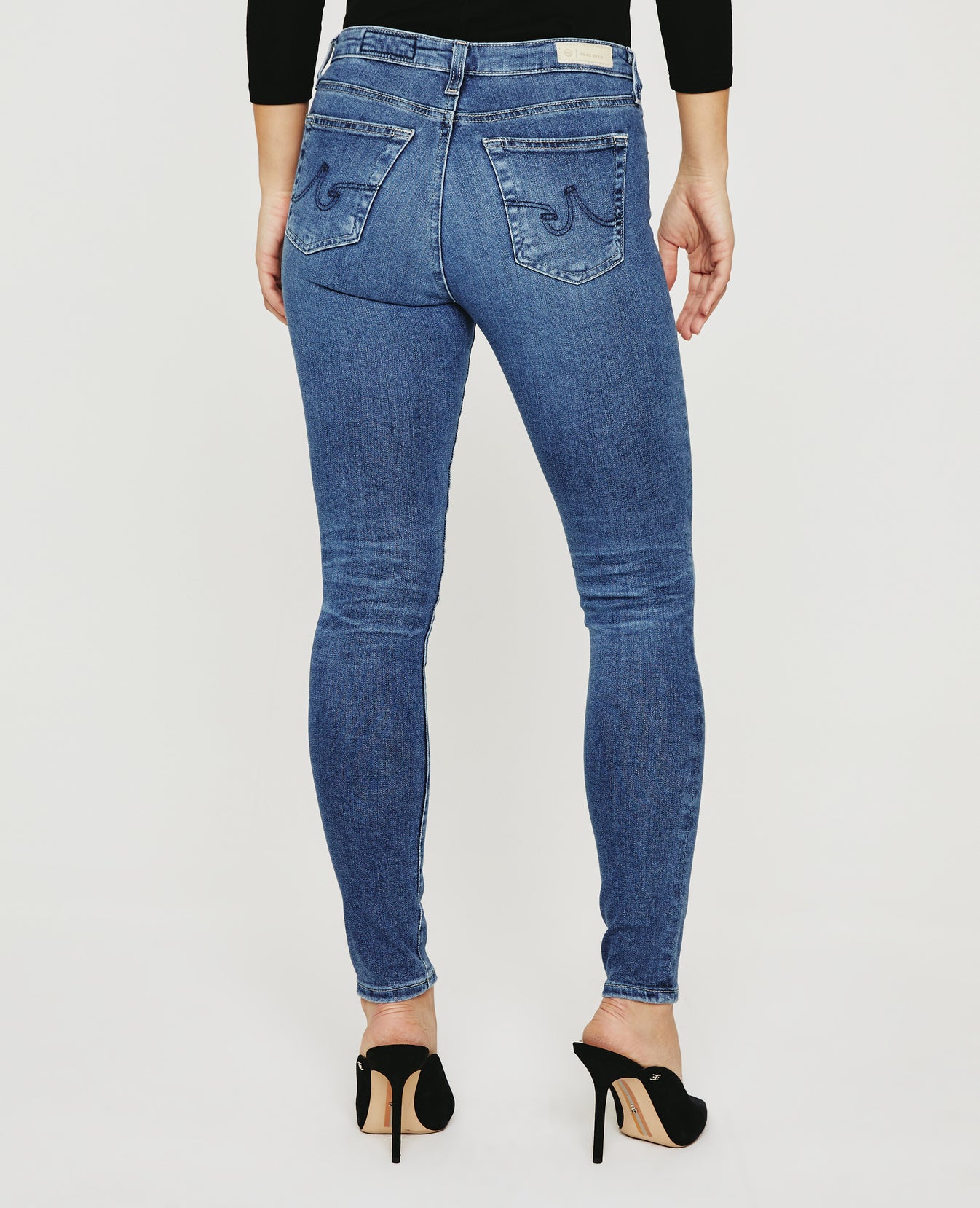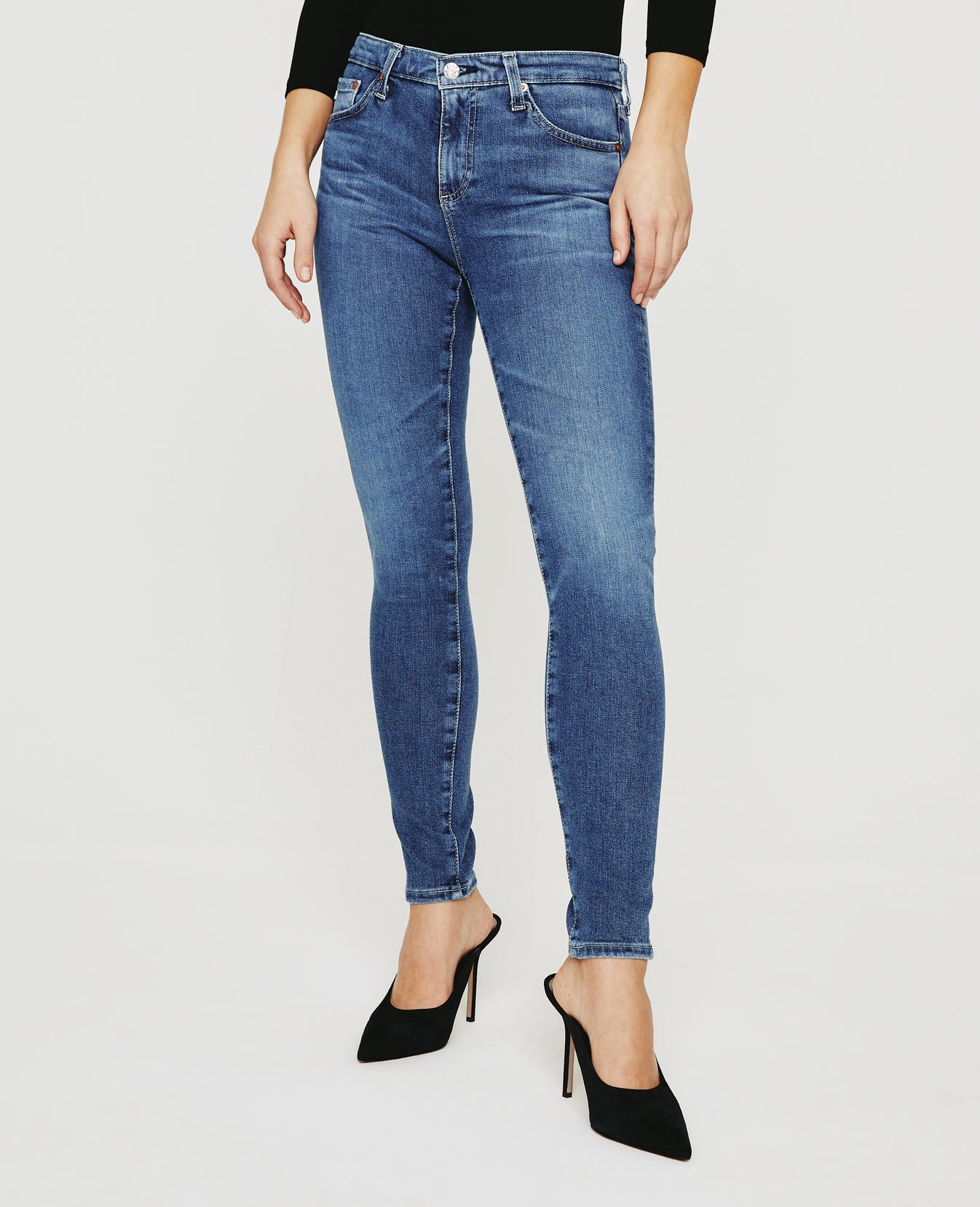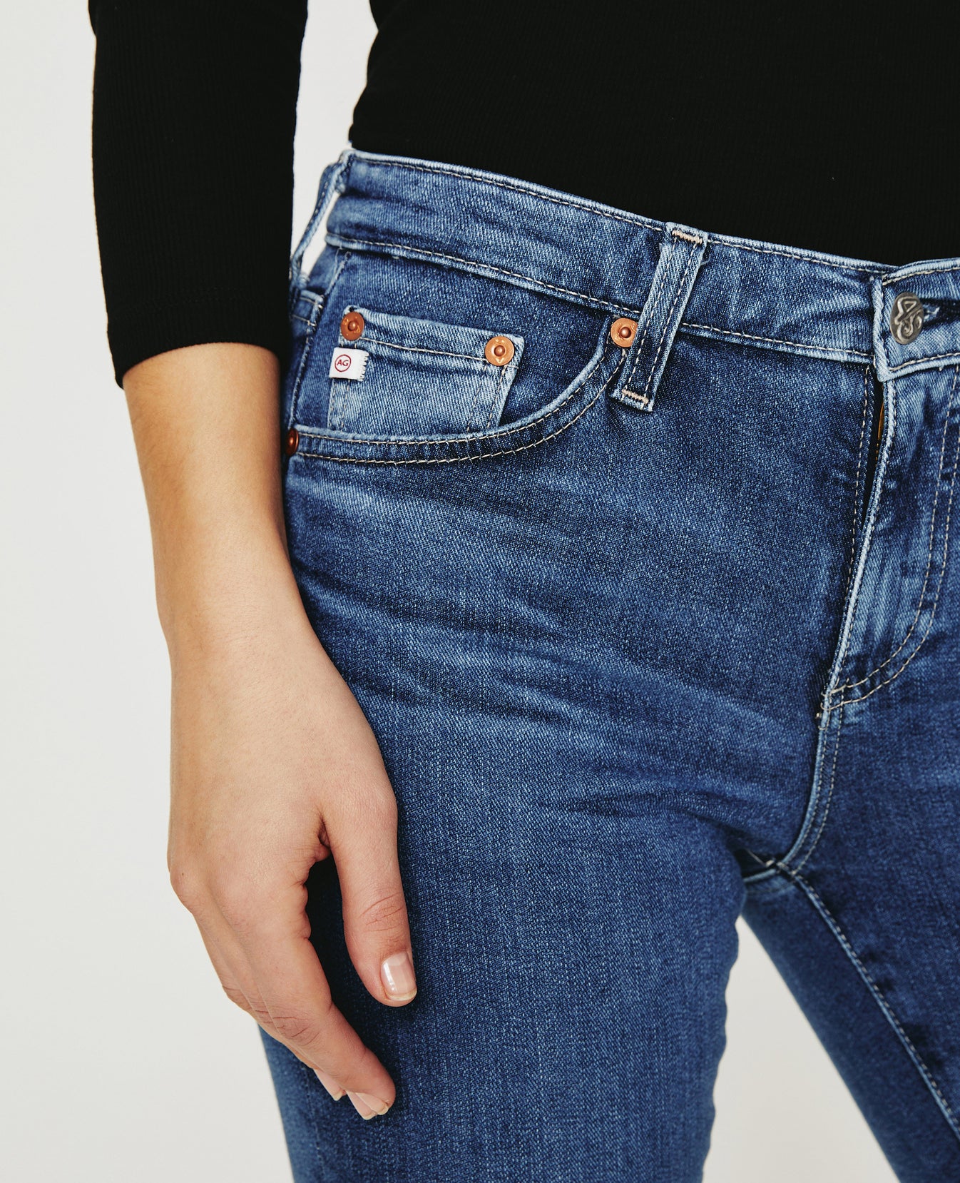 The Legging Ankle is a super skinny mid-rise jean that contours the body from hip to hem, landing at ankle length. Offered in a medium wash with fading and whiskering, this super skinny jean for women features 9.9 oz. Hyper Soft Stretch Indigo Denim, our exclusive left-hand twill fabric that allows the yarns to gently relax and untwist for a supple, velvety-soft feel that gets even softer with wear. Made from our exclusive AG Cloud Soft Denim™, its dual-elastic stretch offers extra comfort and premium recovery.