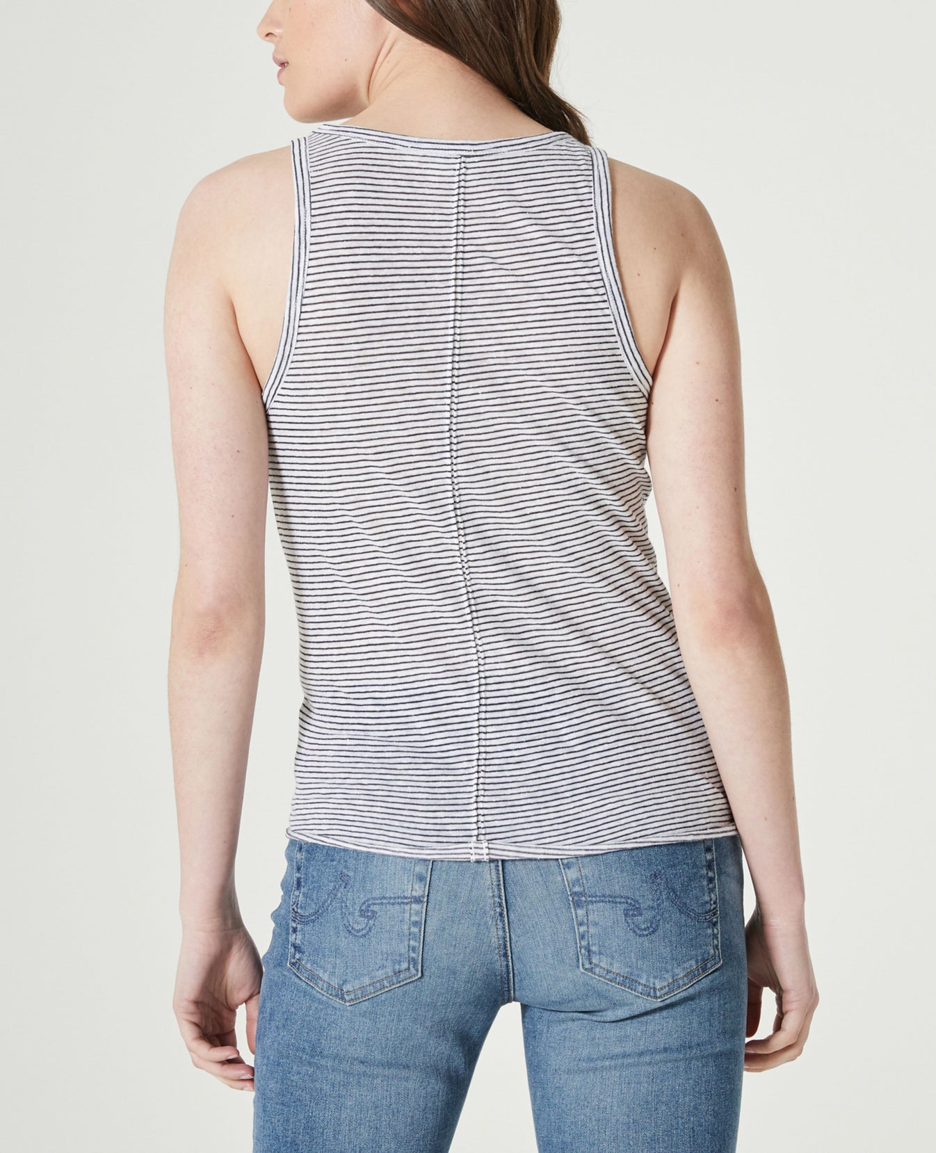 A simple, easygoing tank is upgraded in soft jersey crafted from 100% pima cotton. Detailed with a curved hem and double-tuck seaming down the back.