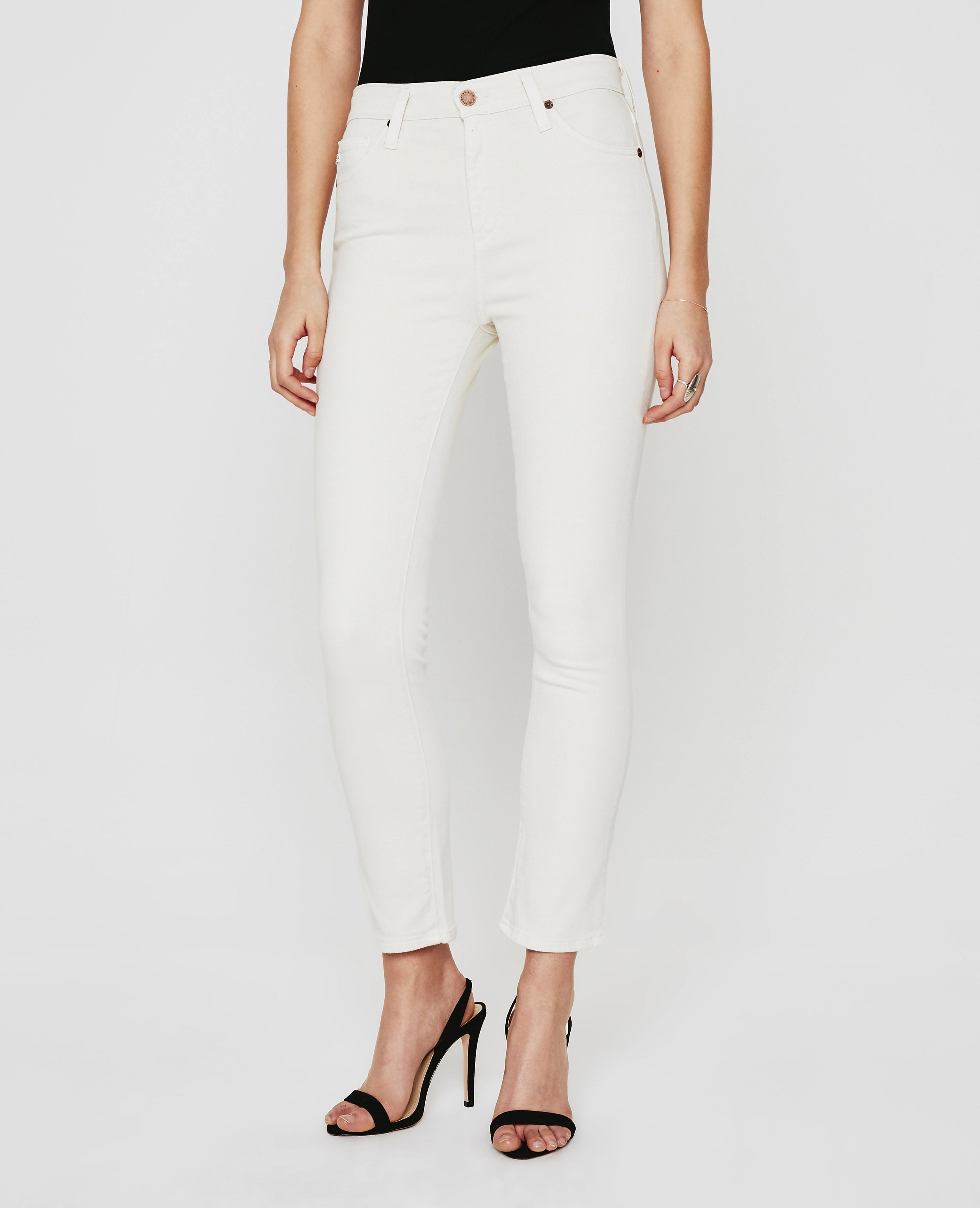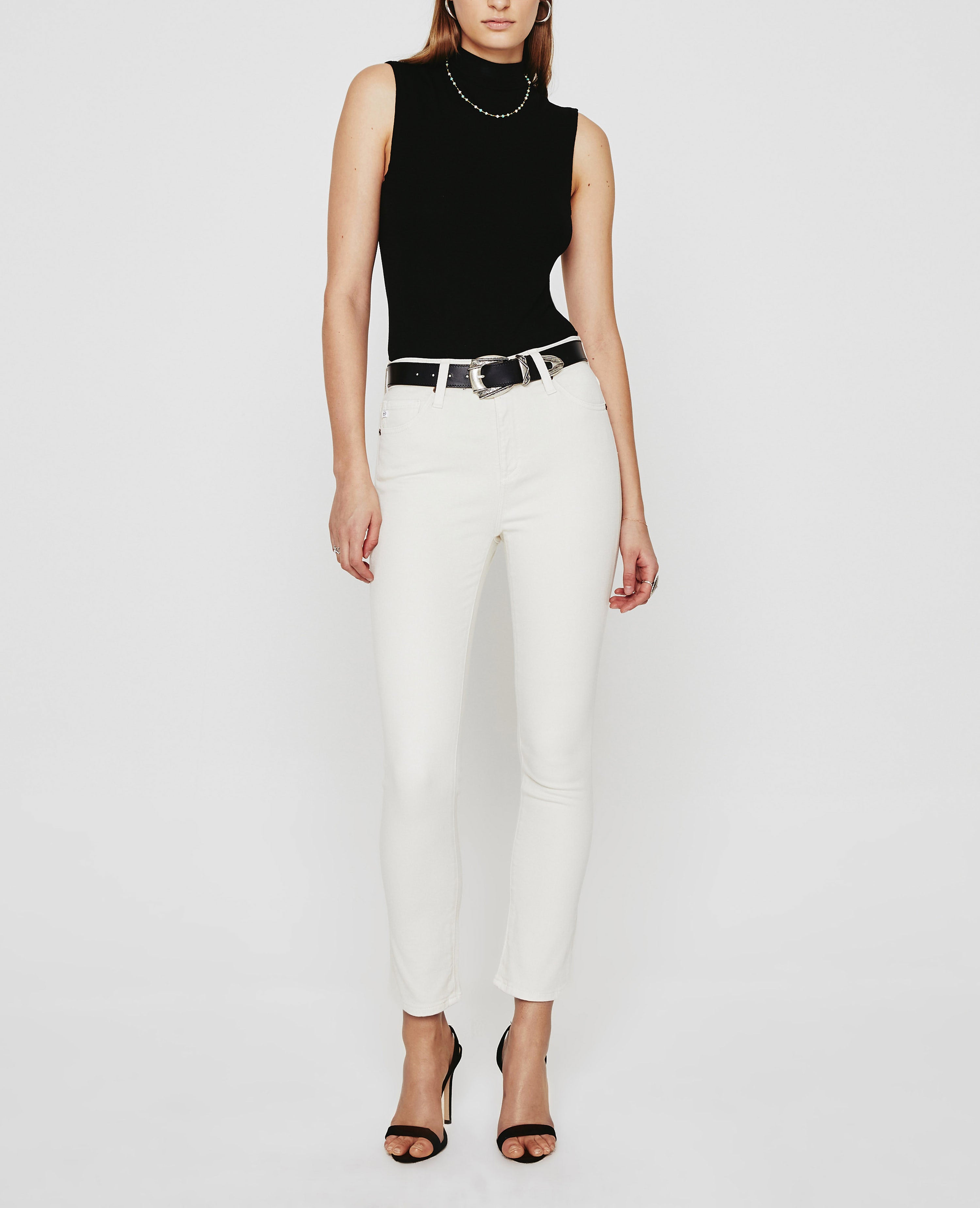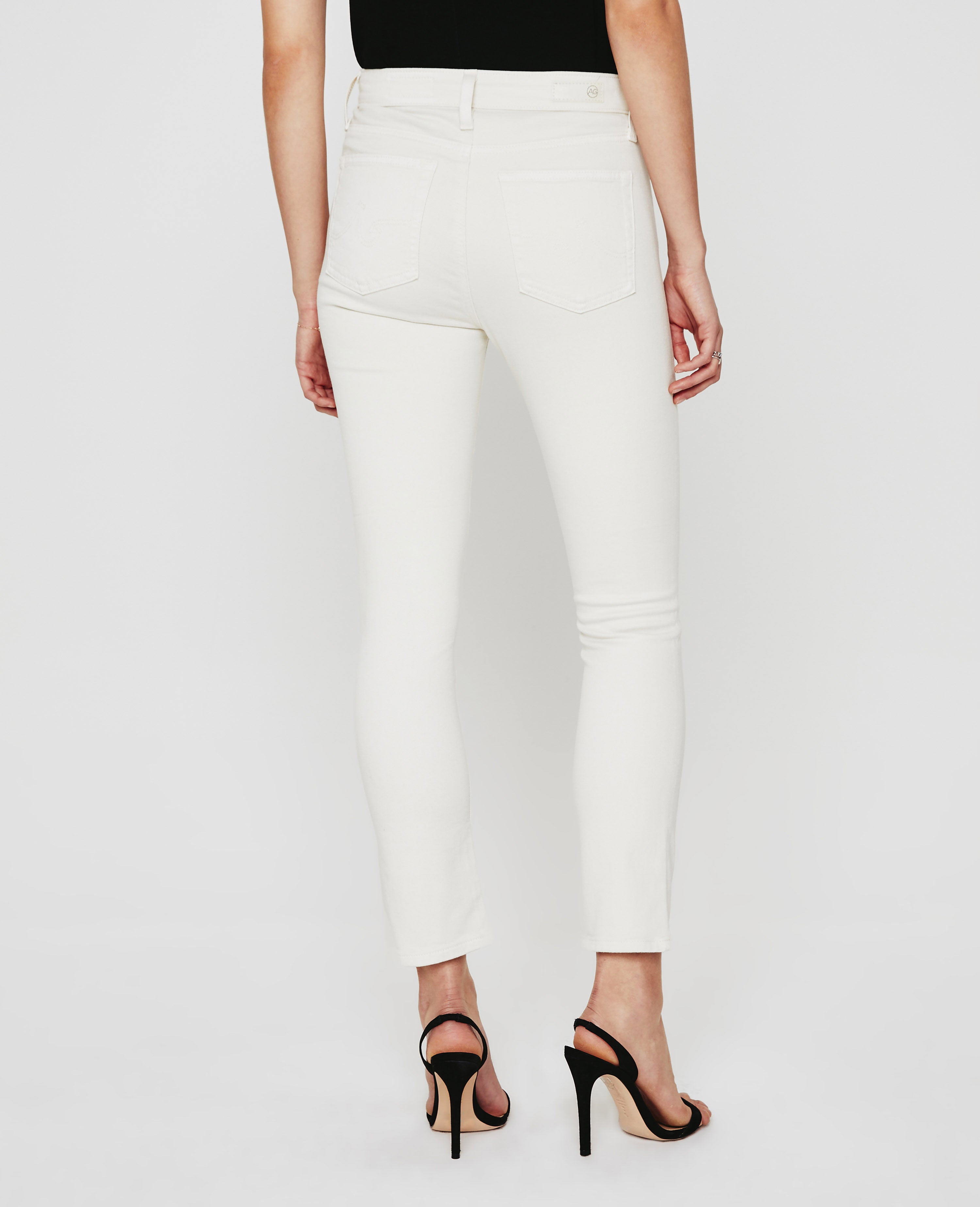 The Mari Crop is a mid-rise straight leg jean for women, updated in a cropped length and a creamy off-white hue. The style has a flattering mid-rise waist and fits easy around the hips with a straight leg and slim leg opening. Made from our exclusive AG Cloud Soft Denim™, this women’s mid-rise jean is designed in 8.7 oz. Hyper Soft Bull Denim, AG's special left-hand twill fabric that allows the yarns to gently relax and untwist for a luxe, supple feel. It's designed to get even softer the more you wear it. Dual-elastic stretch offers extra comfort and a resilient shape.