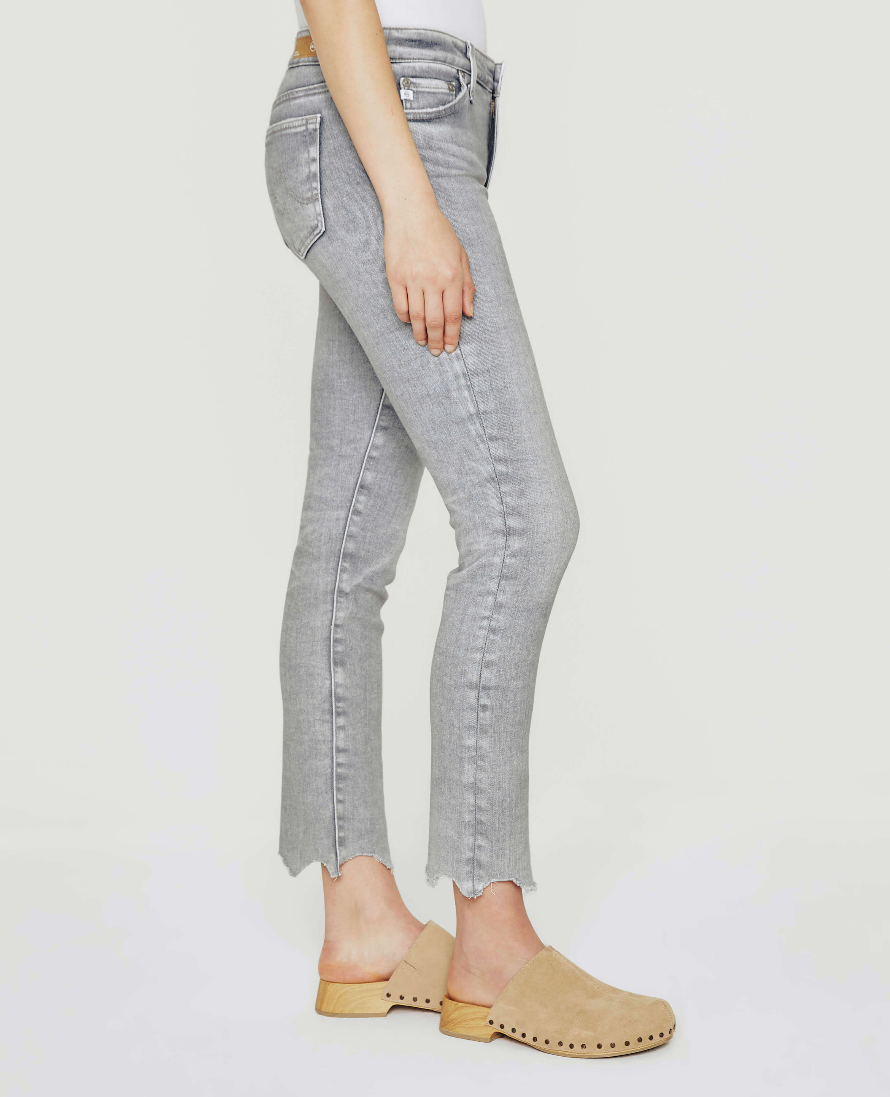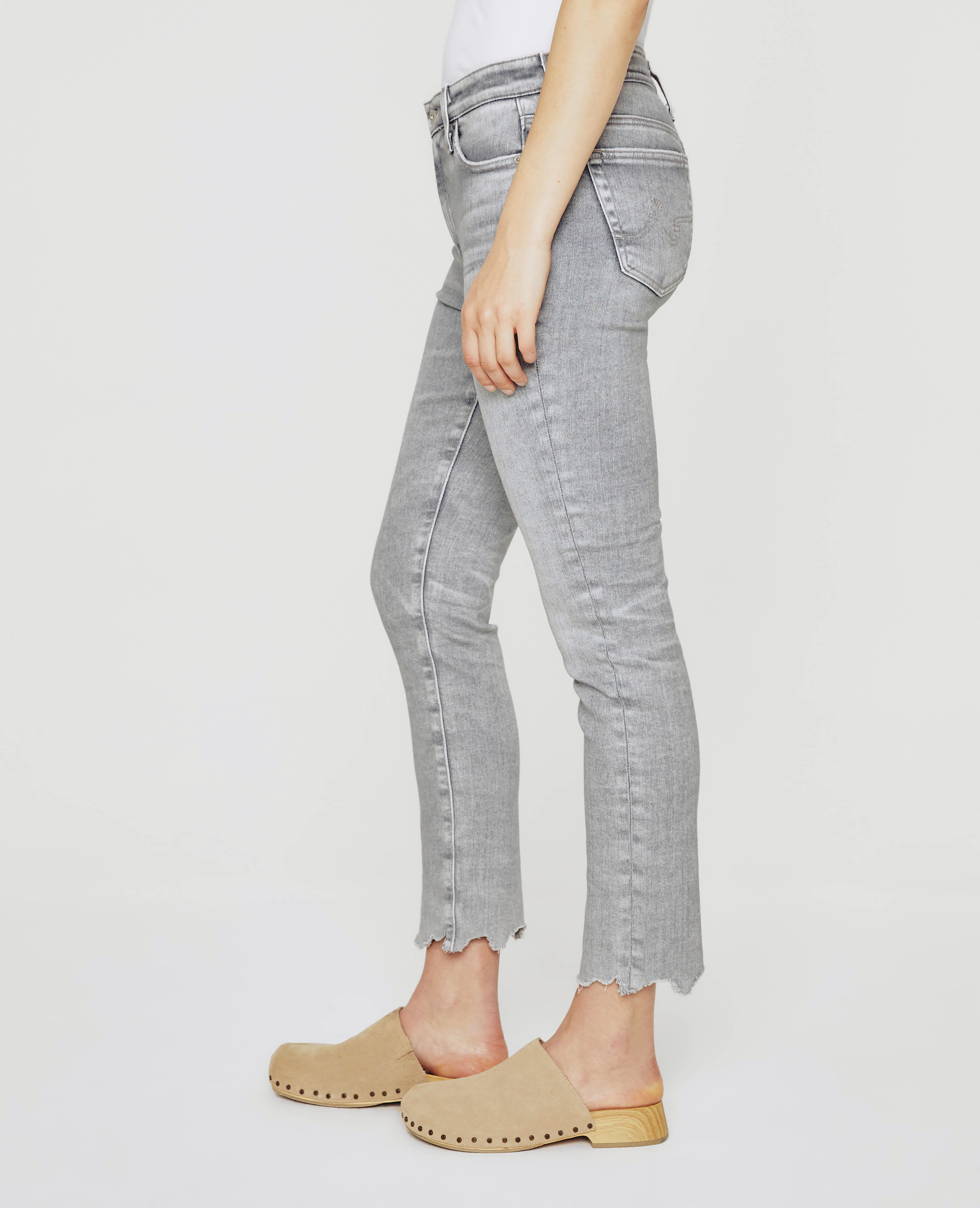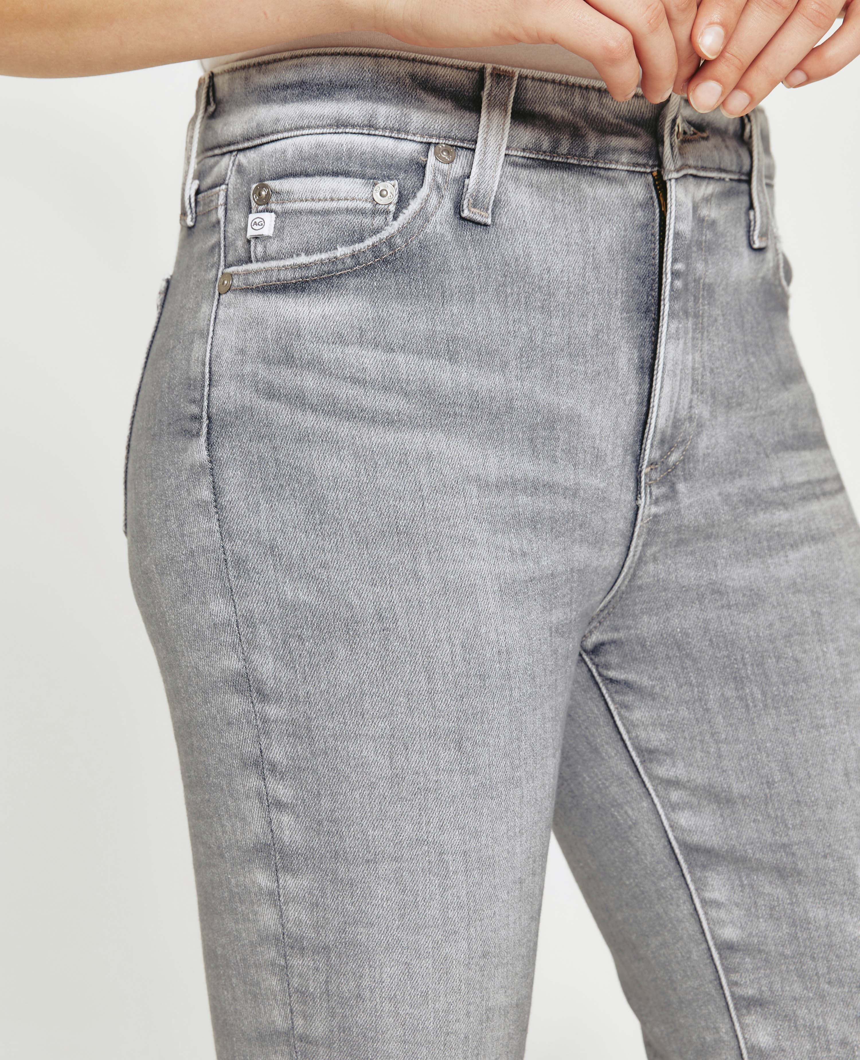 The Mari Crop is a mid-rise straight leg jean with an eco-friendly light grey wash and chewed hems. Crafted from 11.75 oz. Carbone Stretch Denim, the waist-hugging style fits easy around the hips and features a straight silhouette with a slim, slightly cropped leg opening. Our AG Vapor Wash™ process significantly reduces the use of water, chemicals, and energy to lessen environmental impact. Finished with a vegan and 100% biodegradable cellulose patch at the back waistband.