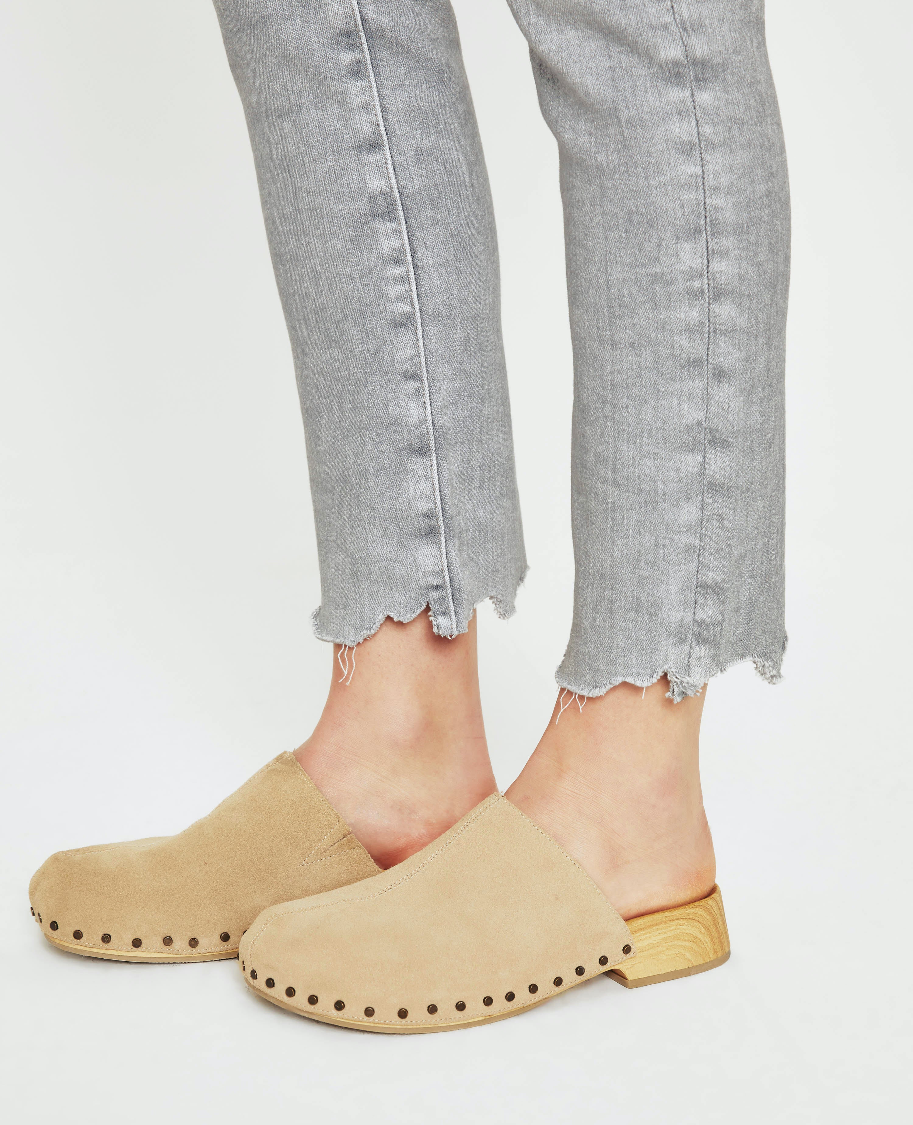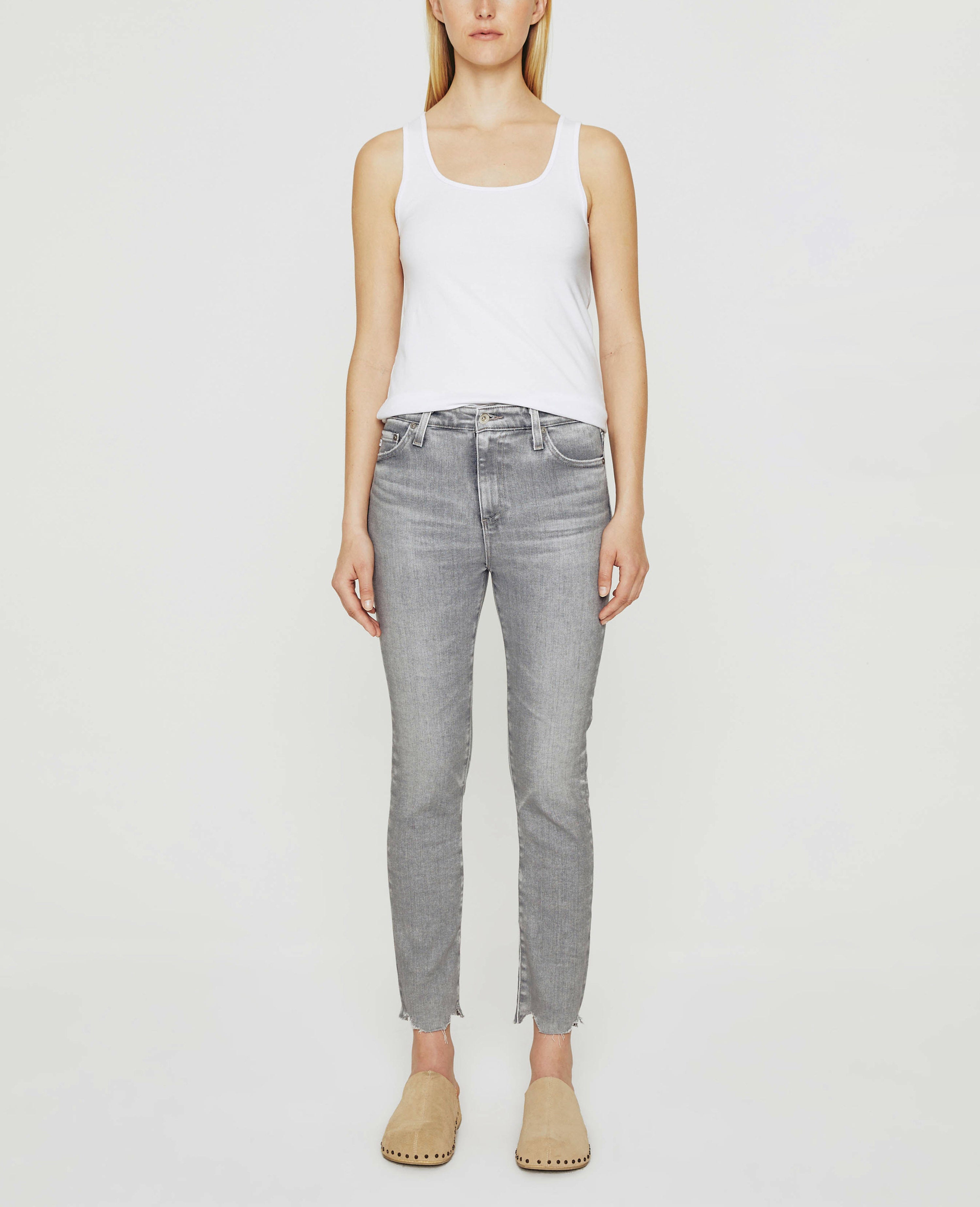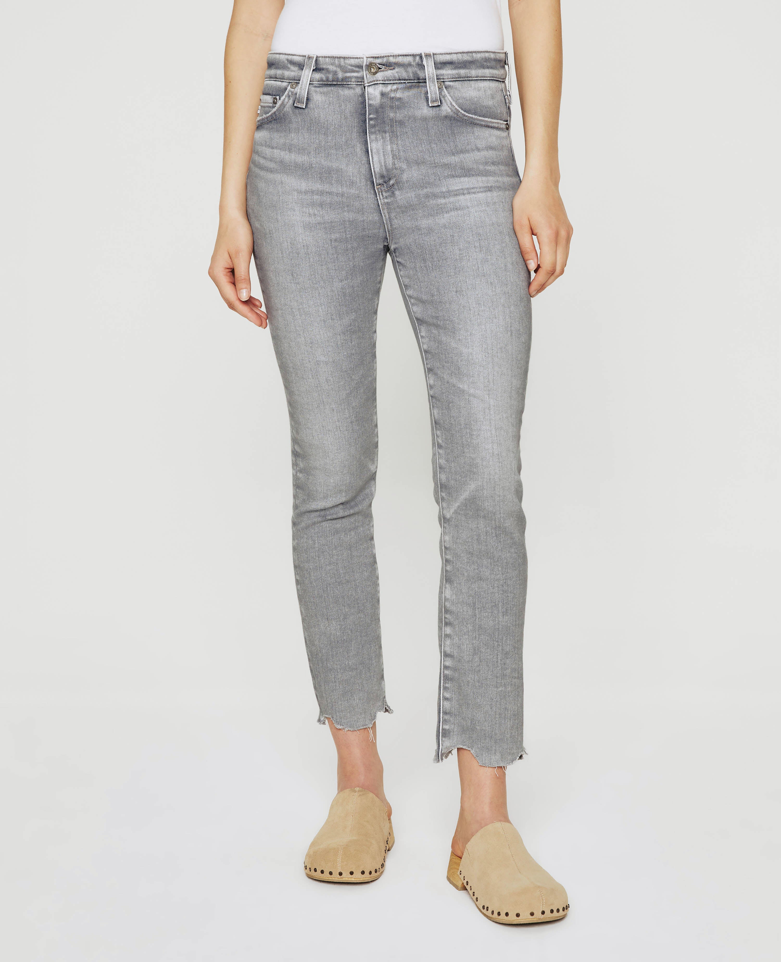 The Mari Crop is a mid-rise straight leg jean with an eco-friendly light grey wash and chewed hems. Crafted from 11.75 oz. Carbone Stretch Denim, the waist-hugging style fits easy around the hips and features a straight silhouette with a slim, slightly cropped leg opening. Our AG Vapor Wash™ process significantly reduces the use of water, chemicals, and energy to lessen environmental impact. Finished with a vegan and 100% biodegradable cellulose patch at the back waistband.