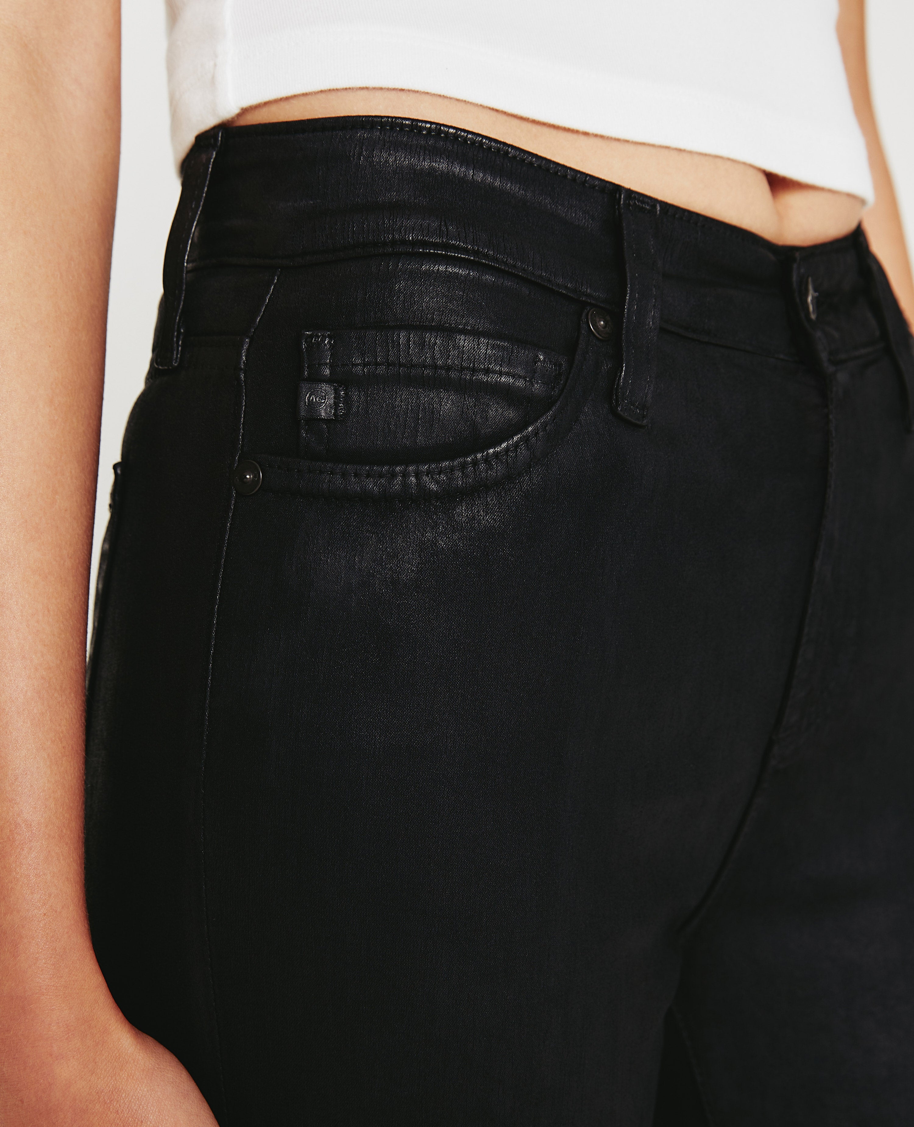 The Mari mid-rise straight leg jean for women features a leatherette-coated black hue. Mari offers a flattering mid-rise waist and fits easy around the hips, finished with a straight leg and subtle slim leg opening. This women’s straight jean is designed in 7.8 oz. Luscious Super Stretch Sateen.