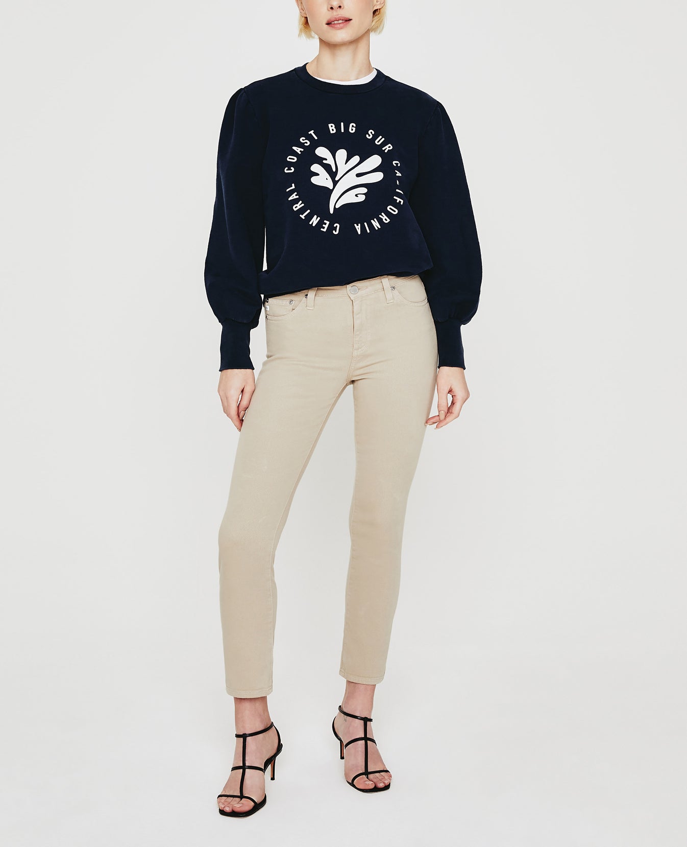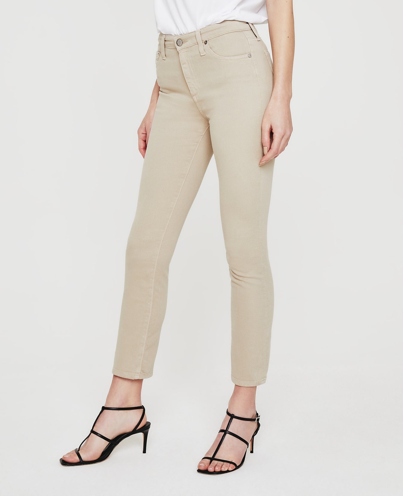 The Mari is a mid-rise straight leg jean for women, updated in a soft beige shade. Cut with a flattering mid-rise waist, Mari has an easy fit around the hips, straight legs, and subtle slim leg openings. Made from our exclusive AG Cloud Soft Denim™, this women’s straight jean is crafted from 8.7 oz. Hyper Soft White Bull Denim, a left-hand twill fabric that allows the yarns to gently relax and untwist for a supple, velvety-soft feel. It's designed to get even softer as you wear it. Dual-elastic stretch offers added comfort and enhanced recovery.
