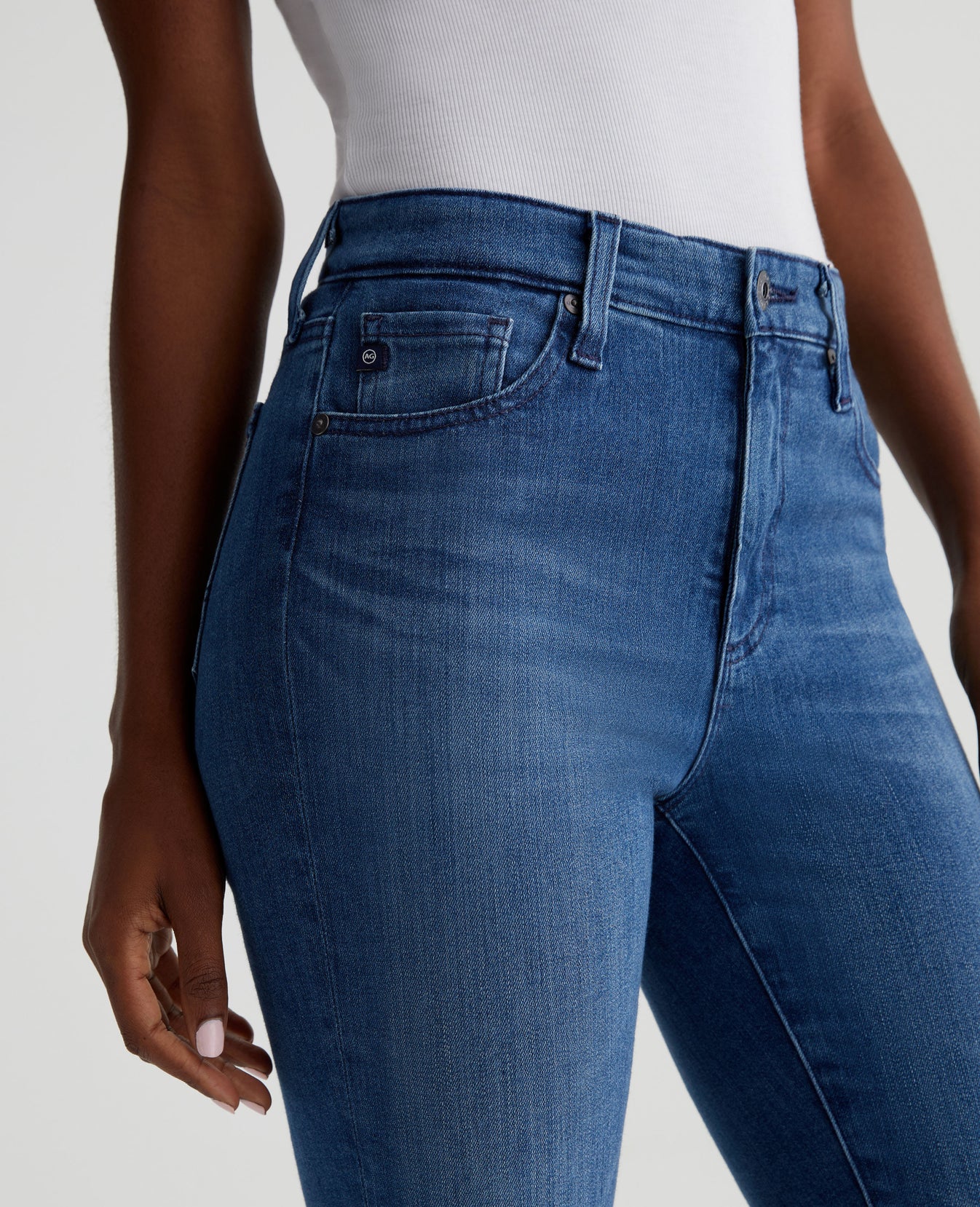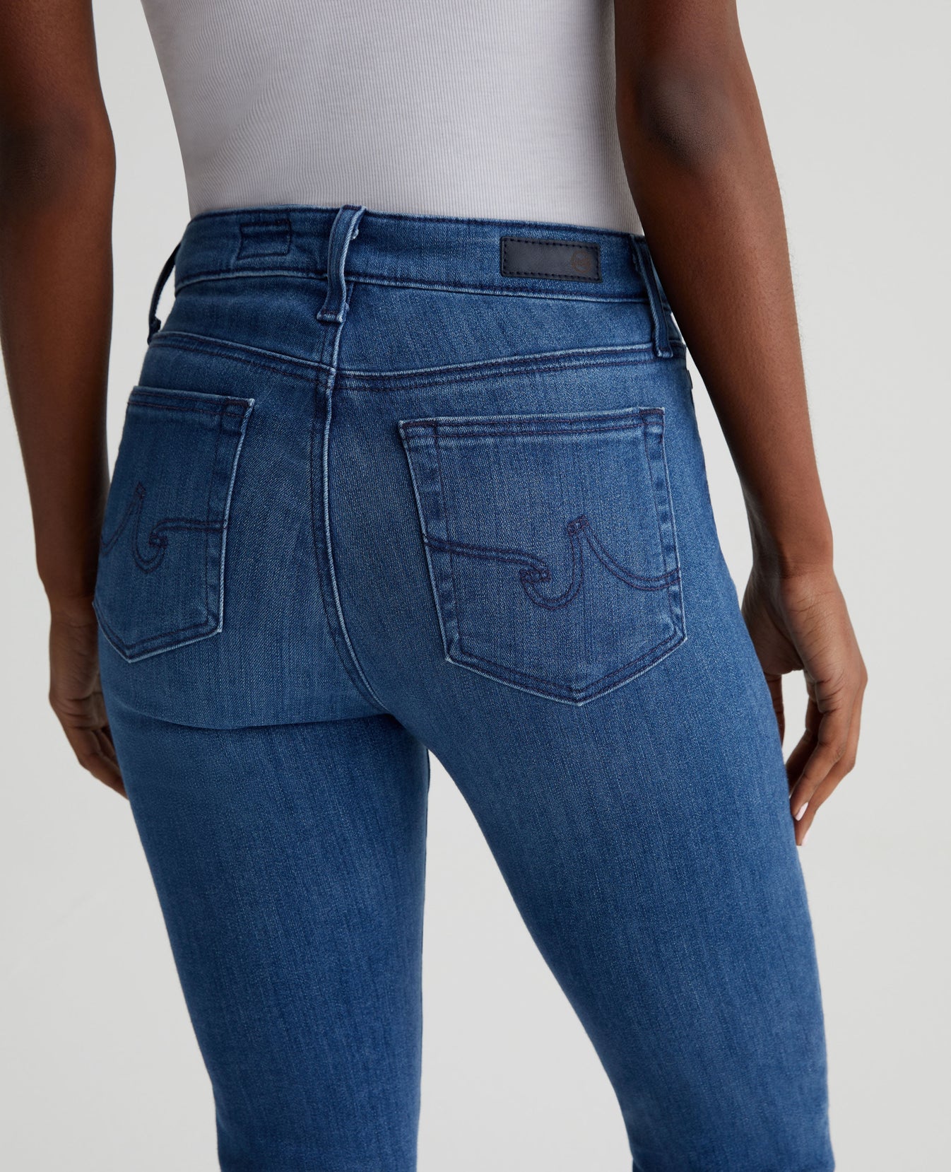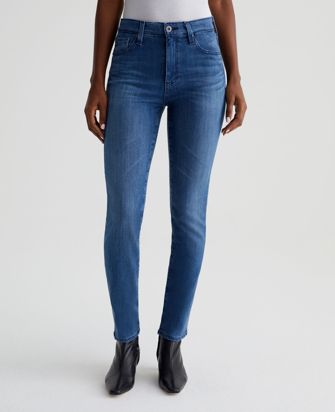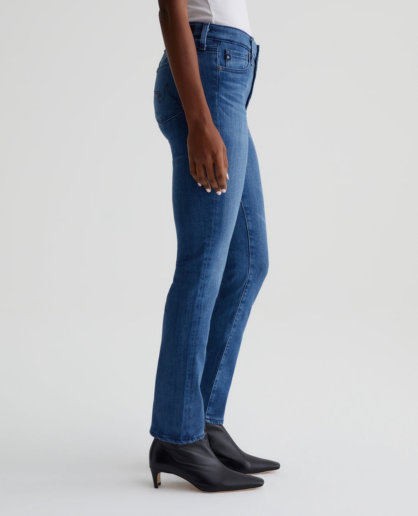 The Mari mid-rise straight leg jean for women features a medium light denim wash and is cut in a fitted silhouette around the hips with a straight leg and slim leg opening.