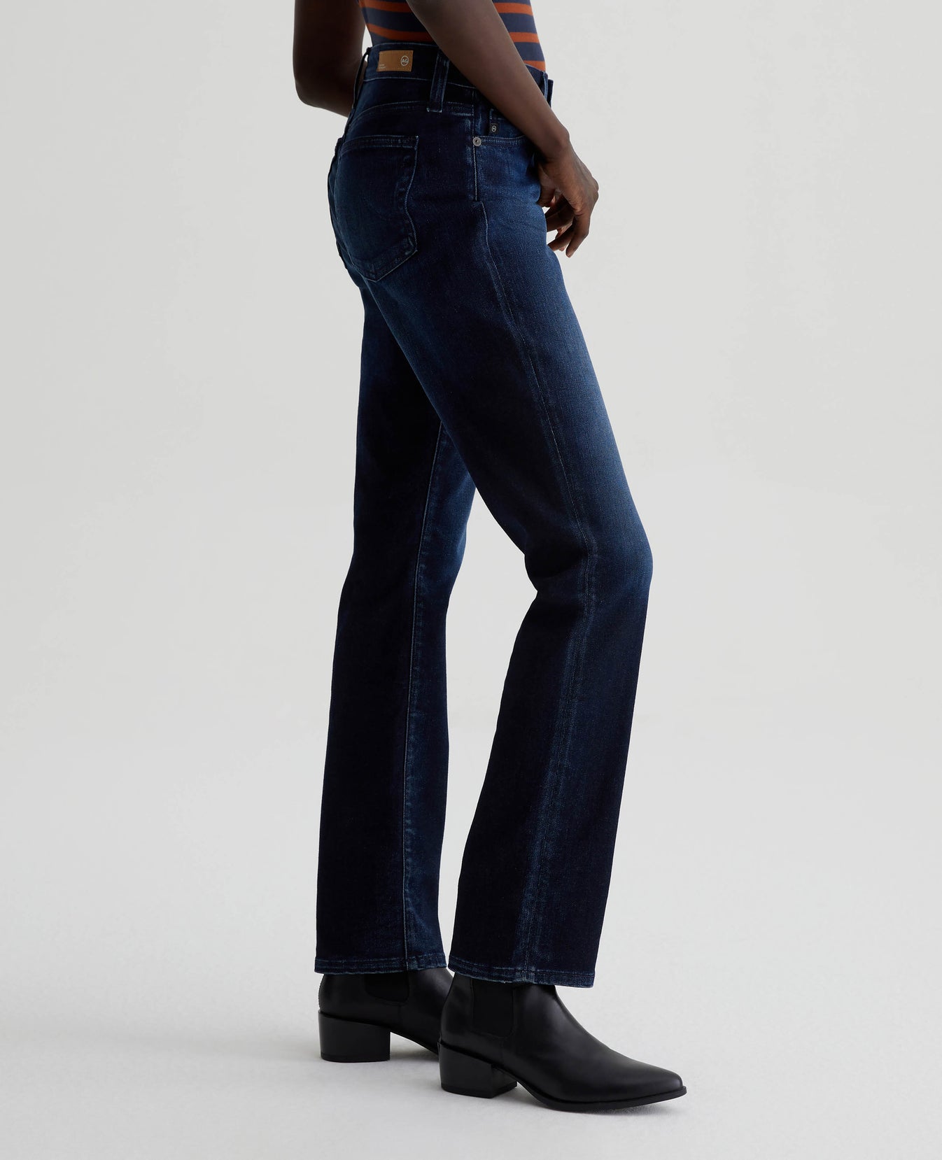 Mari is a pair of mid-rise straight leg jeans featuring a dark blue wash with subtle fading. Mari offers a flattering mid-rise waist and fits easy around the hips, finished with a straight leg and subtle slim leg opening. Made using our eco-friendly AG Vapor Wash™, these women’s straight-fit jeans are designed in 10 Oz. Empower Denim with high stretch. Our AG Vapor Wash™ process significantly reduces the use of water, chemicals, and energy to lessen environmental impact. Finished with a vegan and 100% biodegradable cellulose patch at the back waistband.