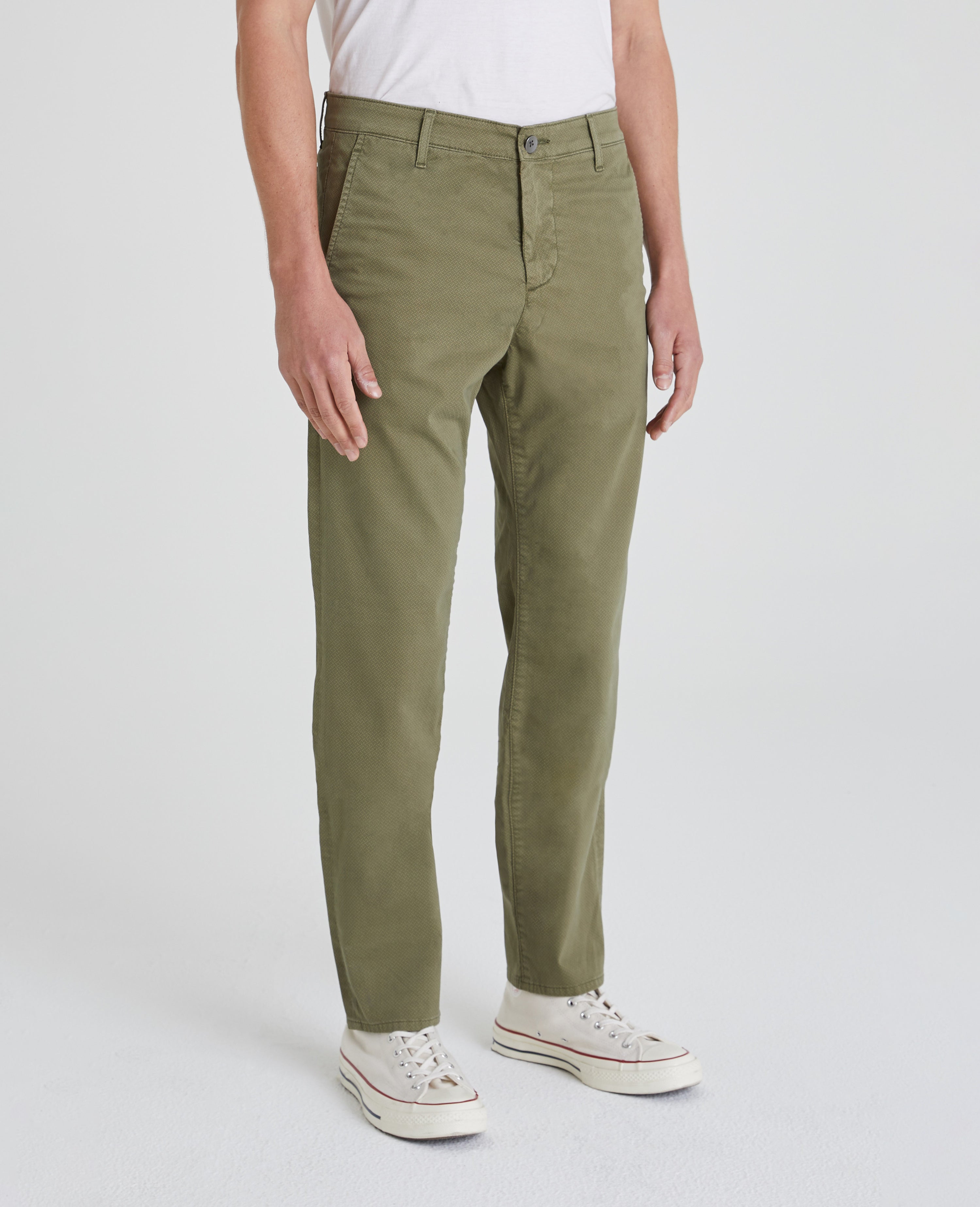 Marshall Modern Slim Trouser Pant for men features a green dye, slash front pockets, and welt back pockets. This pant is cut in a comfortable mid rise waist and a trouser-like construction that fits slim from hip to knee before slightly tapering at leg opening. This men’s chino is designed in a lightweight, Italian sueded sateen with added stretch for most luxurious comfort.