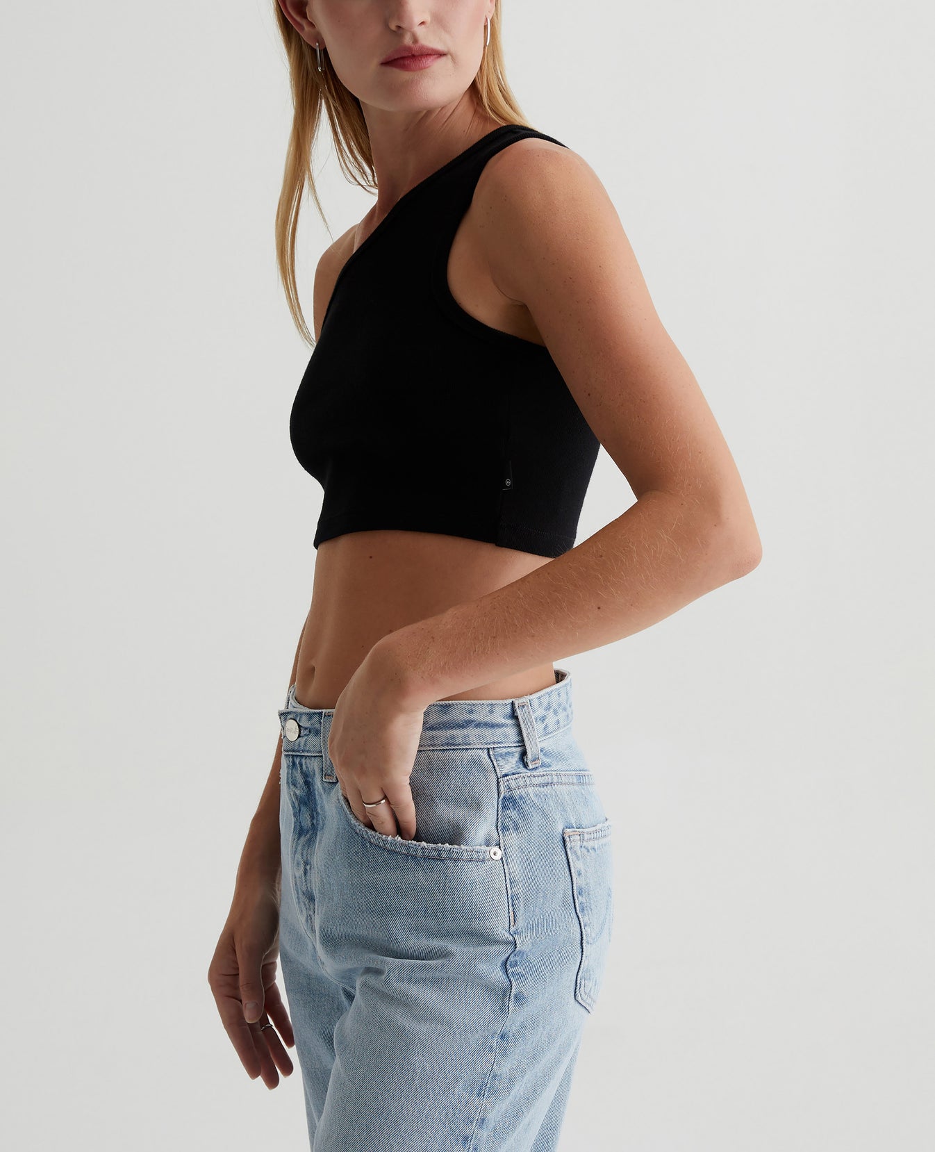 The EmRata x AG Miranda is a mono-shoulder, high-drama tank that lends a styling edge to any outfit. Made from our heavy cotton-blend rib knit, this style flatters while providing superb comfort. The asymmetrical top features a stylized crop, an ideal statement-piece when styled under a tailored blazer or with slouched baggy trousers. The EmRata x AG capsule pays homage to style icon, Emily Ratajkowski. Designed in collaboration, the collection speaks to her style and offers pieces that are crafted for easy wear with dynamic combinations.