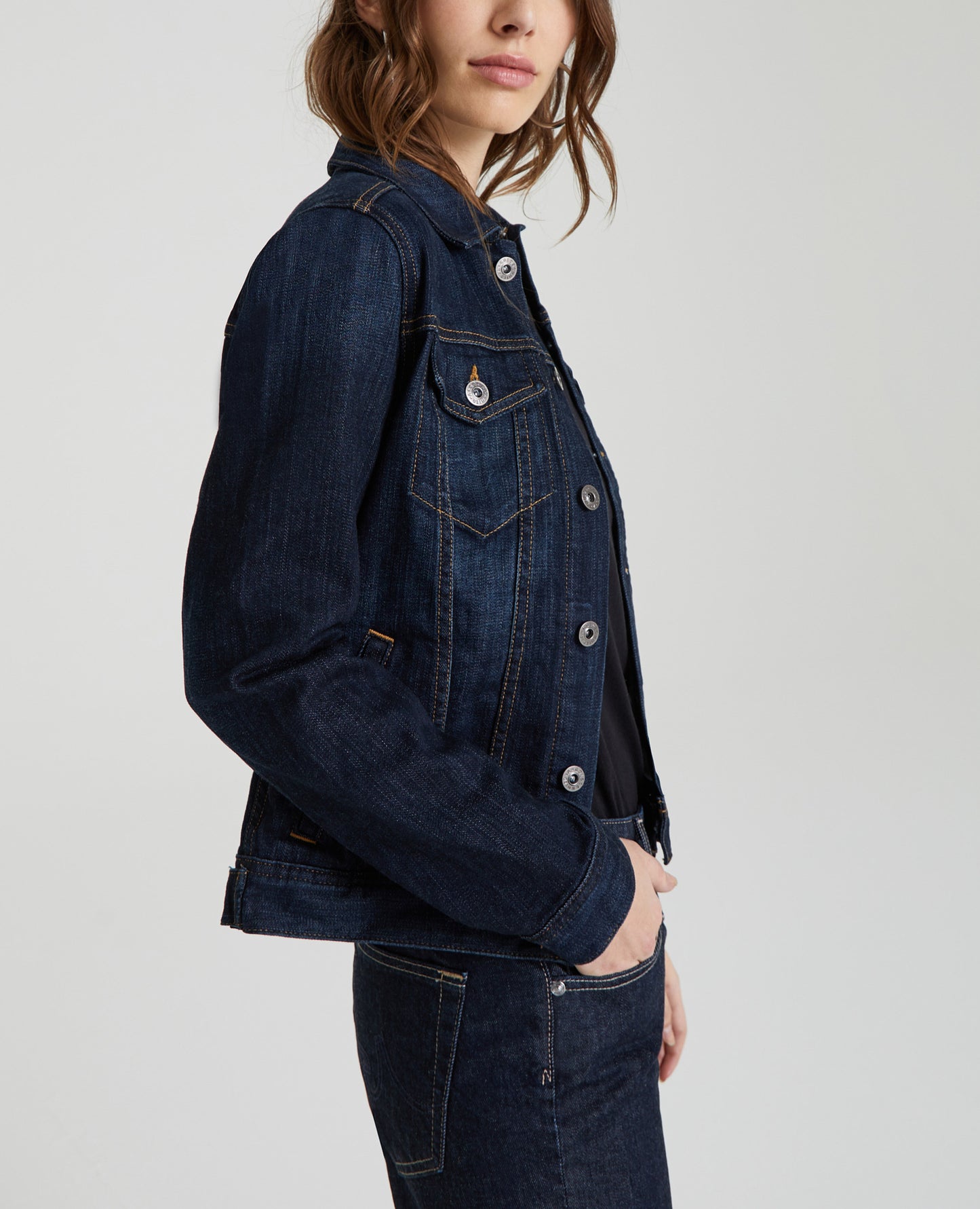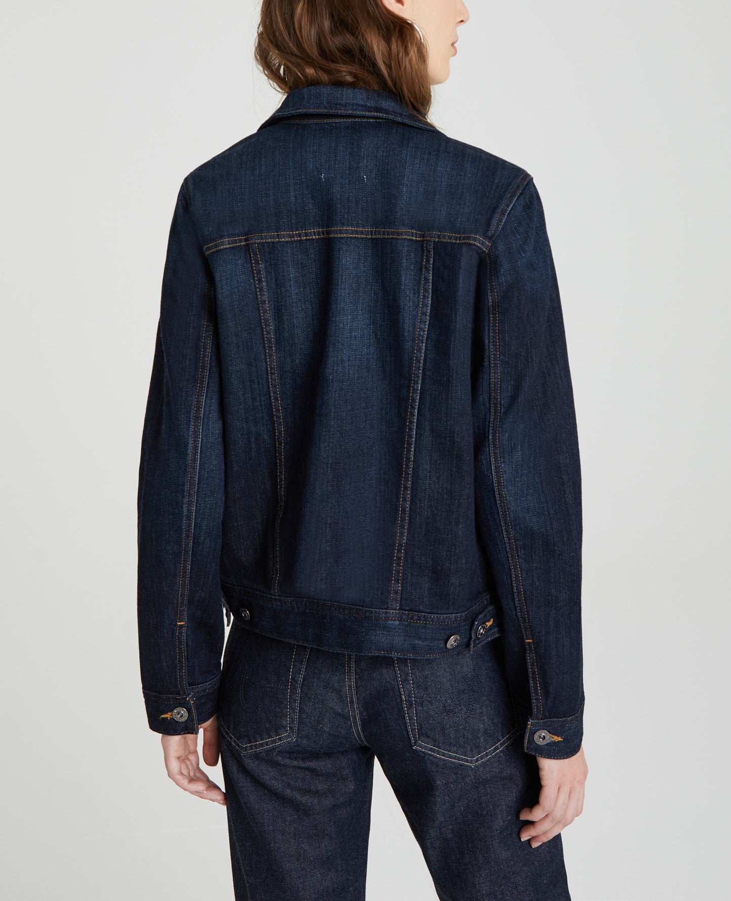 Mya Jacket is a classic jean jacket for women featuring a rich dark blue denim wash that’s been uniquely worn-in with vintage slub lines. Mya offers an easy silhouette for seasonal layering and essential side slit pockets. This women’s denim jacket is designed in an 11 oz Japanese denim expertly woven with cashmere for most luxurious denim imaginable.
