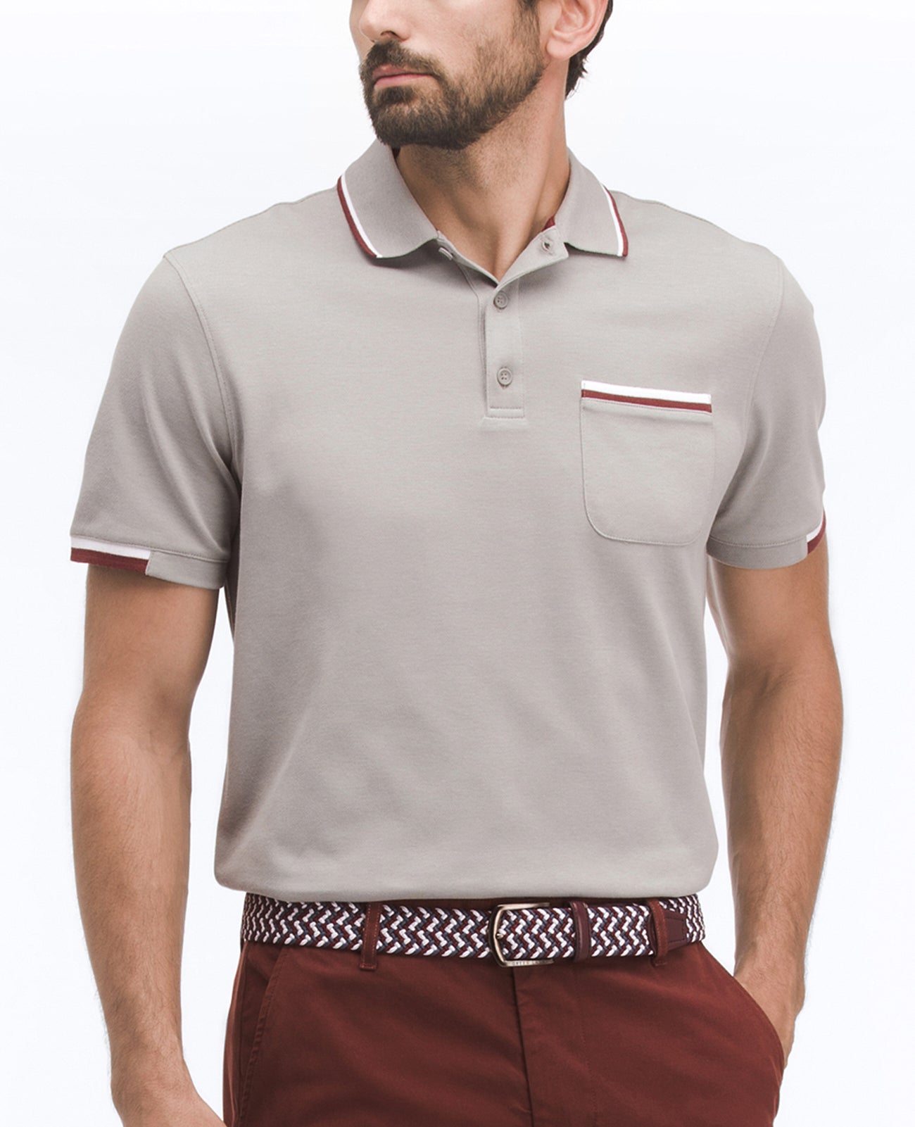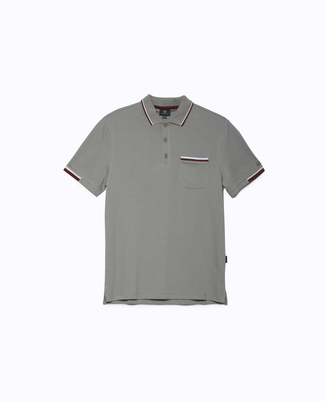 The Nils Polo Shirt is a men’s sport performance t-shirt featuring a light grey hue on a classic fit, 3-button placket, and two-tone stripe trimming at the pointed collar, single chest pocket, and short sleeves. This polo shirt for men is designed specialized poly-cotton blend that offers superior performance on and off the green.