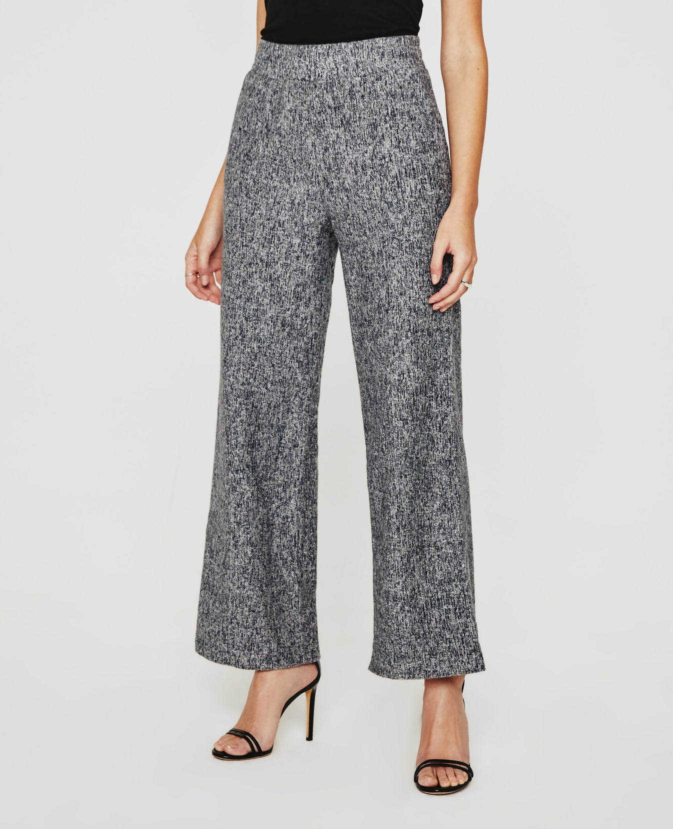 The North Sweatpant has a relaxed wide-leg silhouette that looks like a grey tweed thanks to an allover texture print. Crafted from 100% cotton Comfort Heather Terry with the reverse side out, this pair has an elasticized waist and features pintuck detailing down the front of the legs to emphasize a tailored effect. Slant front pockets and a single patch pocket at the back complete the look.