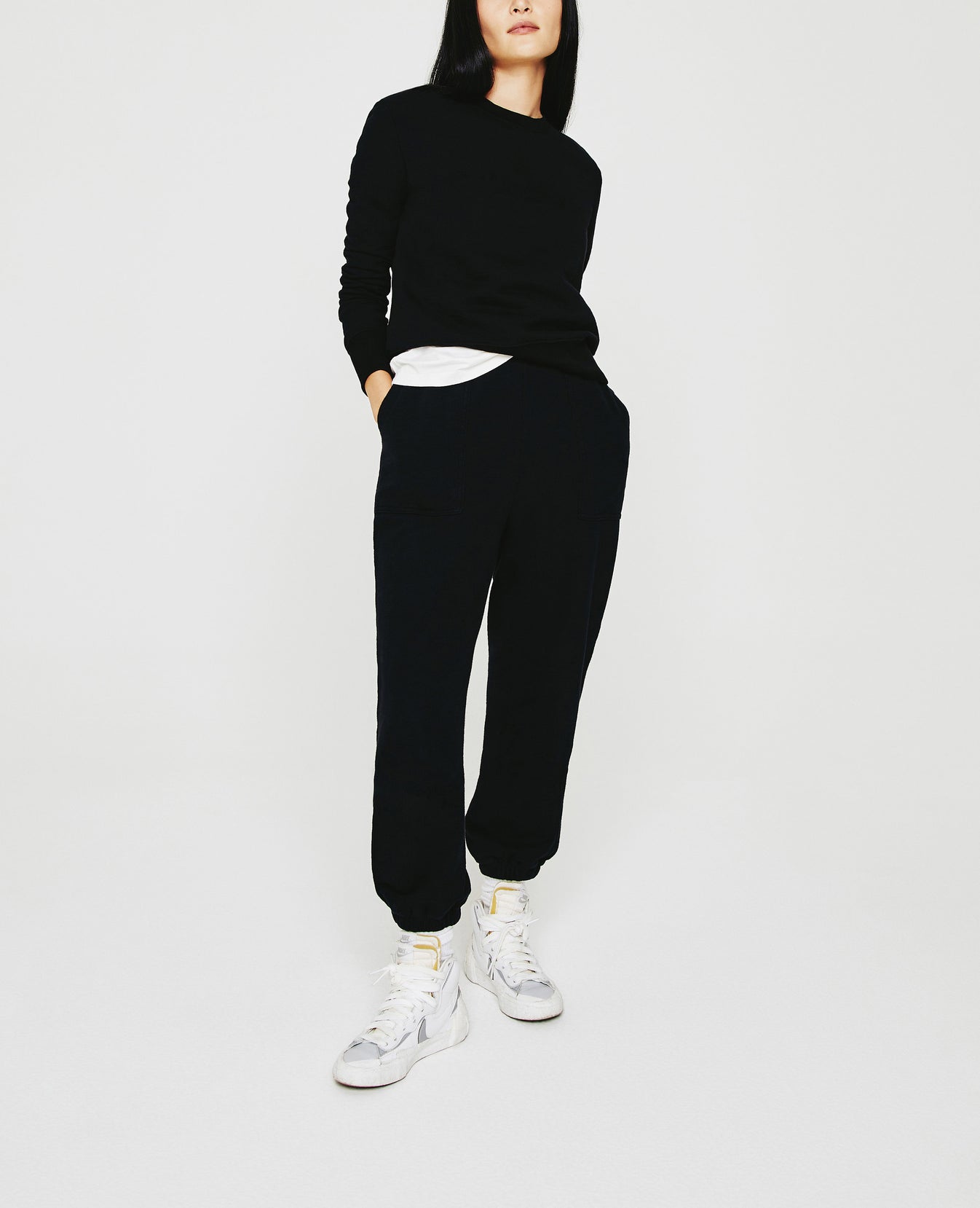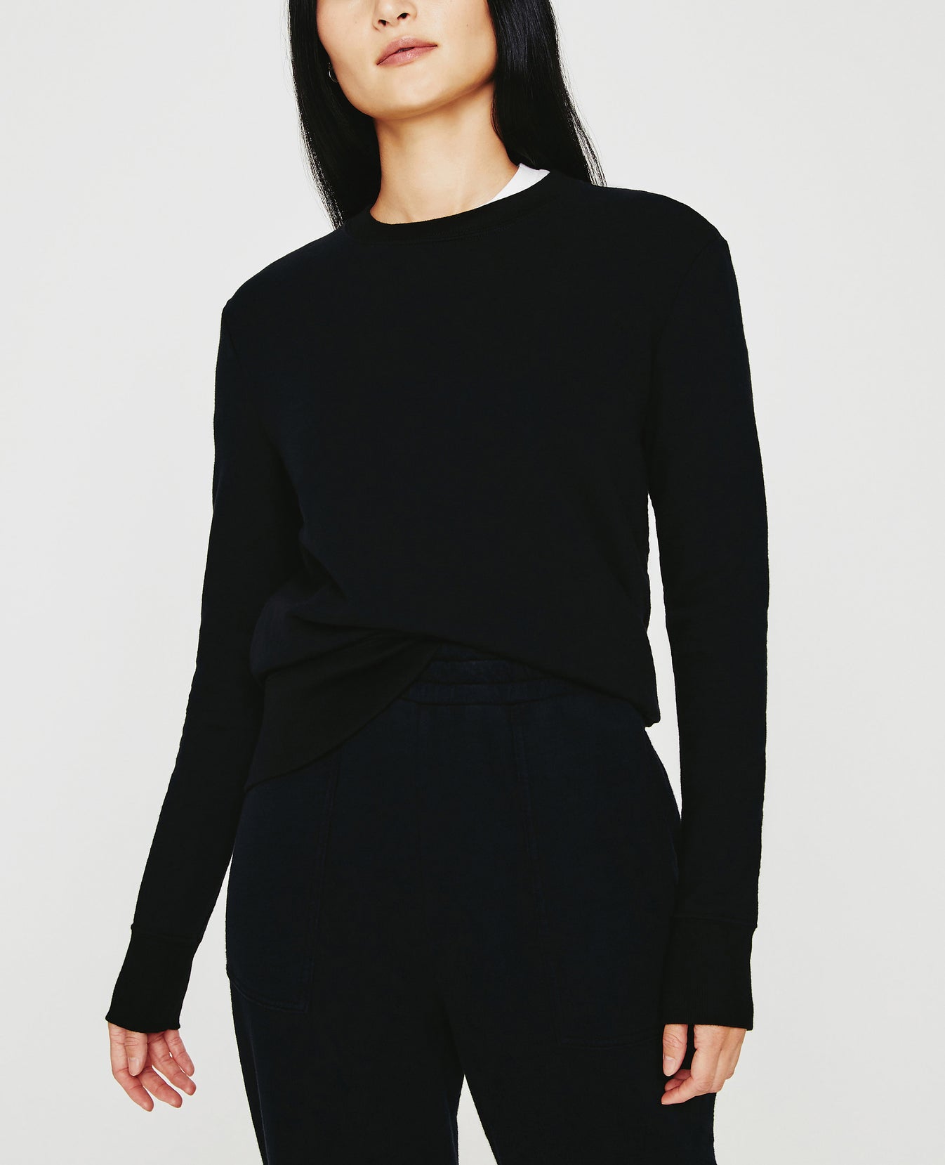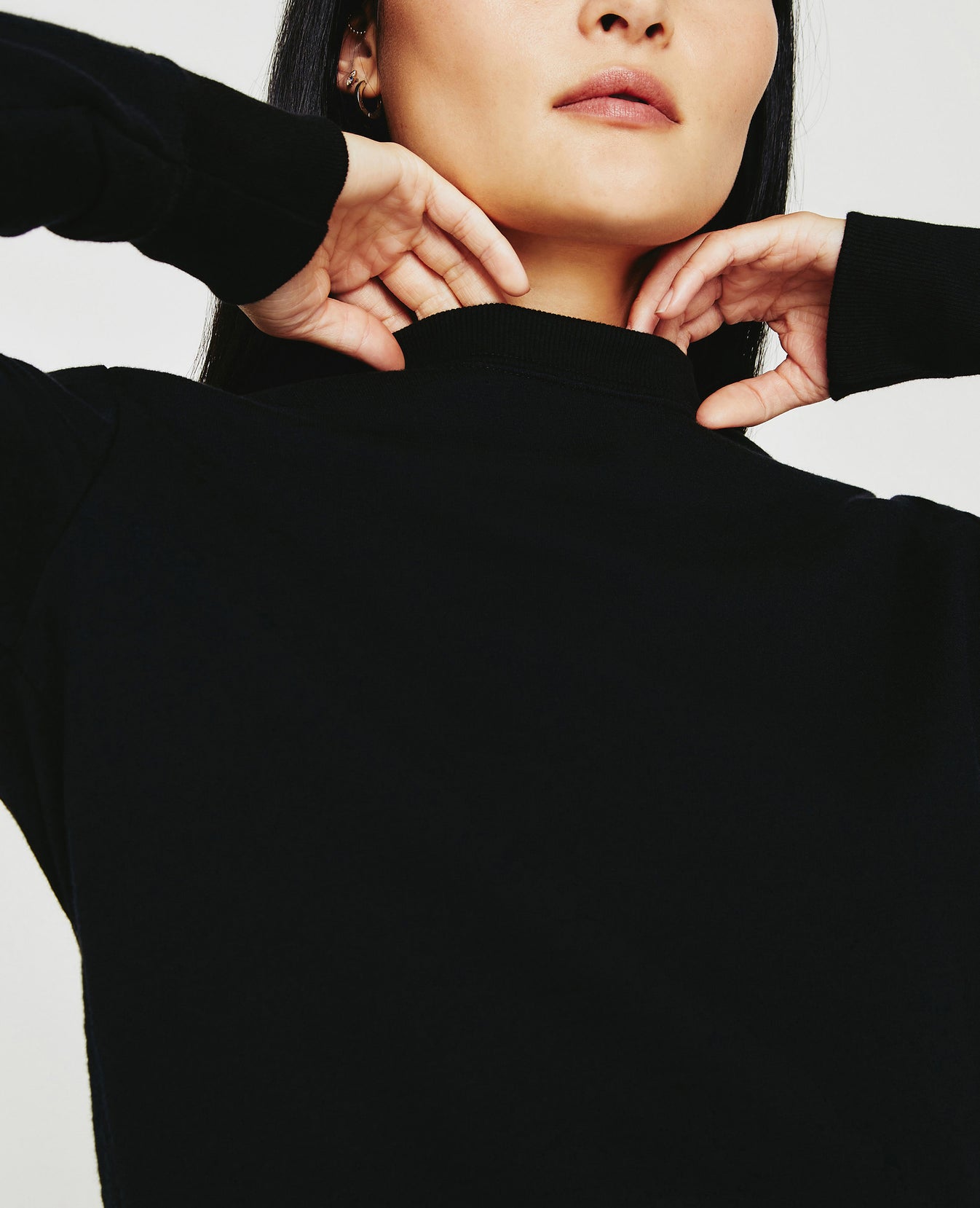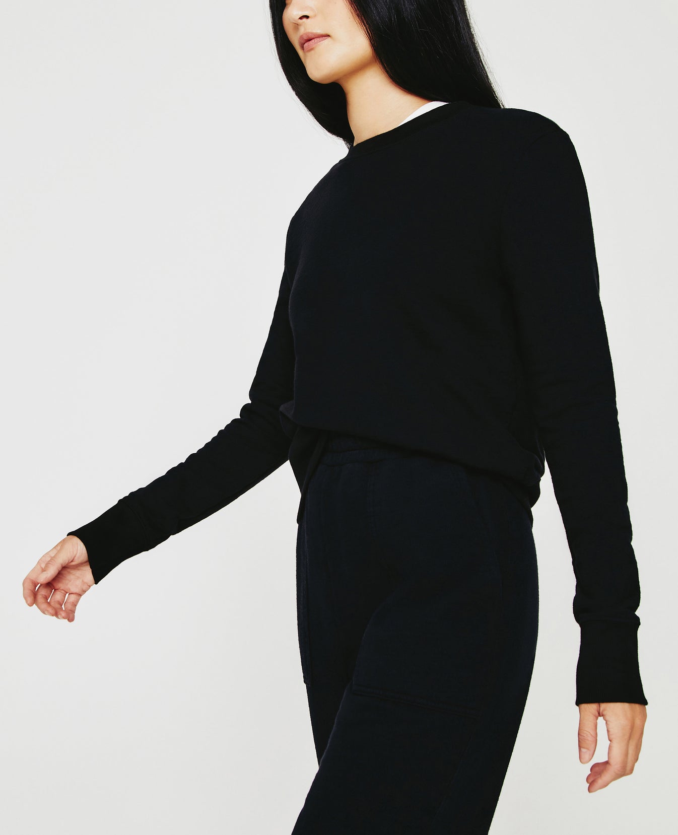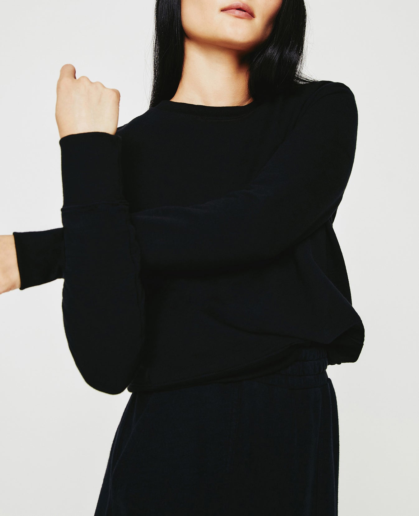 Our Nova Crew is both elevated and comfortable, employing a slouchy silhouette that can be worn relaxed or ready for a night with the girls. This women's sweatshirt offers a classic crewneck and true black hue. Designed in our Cotton Slub Loopback Terry. 100% Cotton.