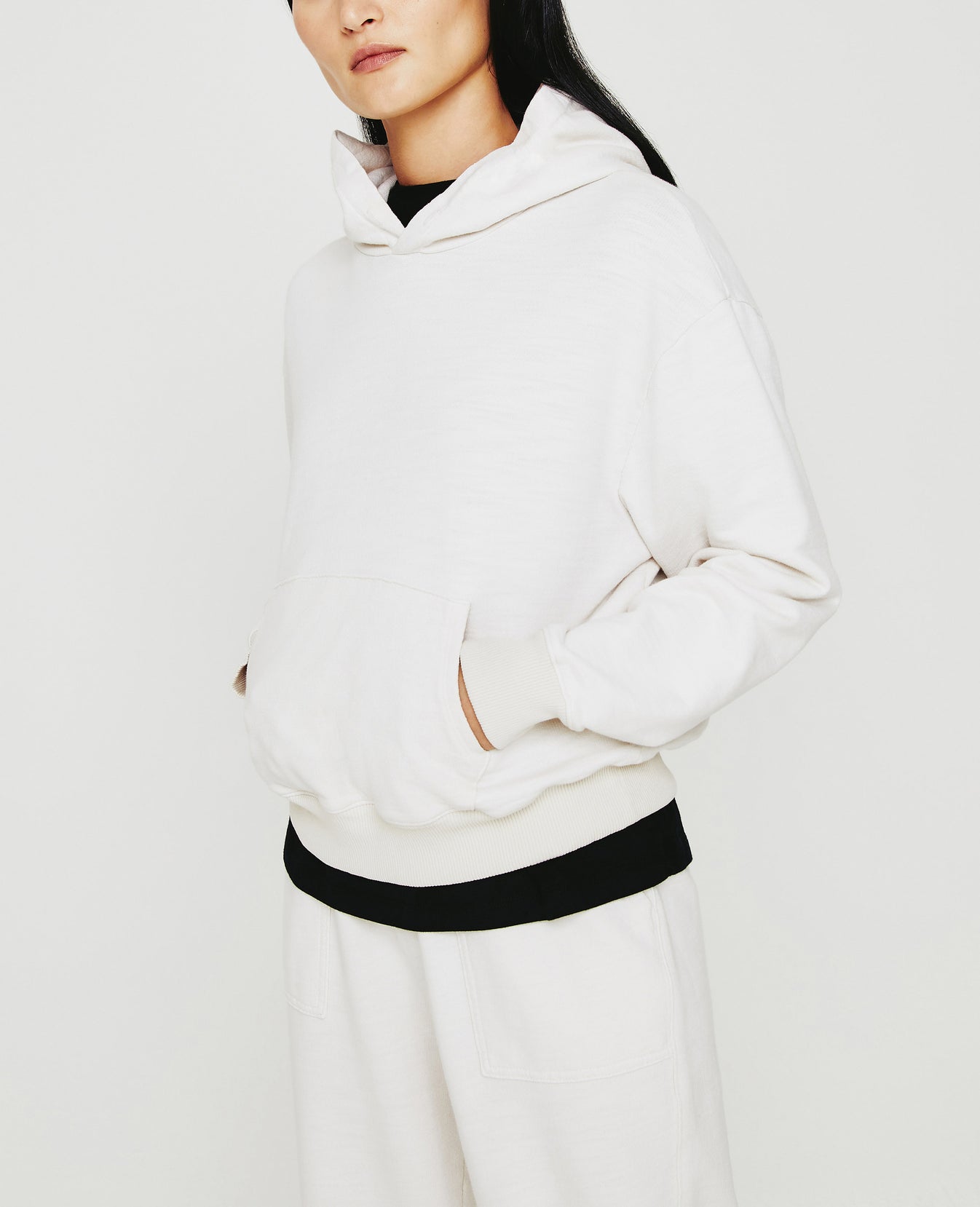 Nova Hoodie is a pullover sweater with an elevated hoodie, kangaroo pocket, and vintage-style ribbing. Our Cotton Slub Loop Back Terry is knitted by us, a lightweight slub with an ultra-soft hand and touch. Specially knitted with our S&Z twist technique to prevent torquing.