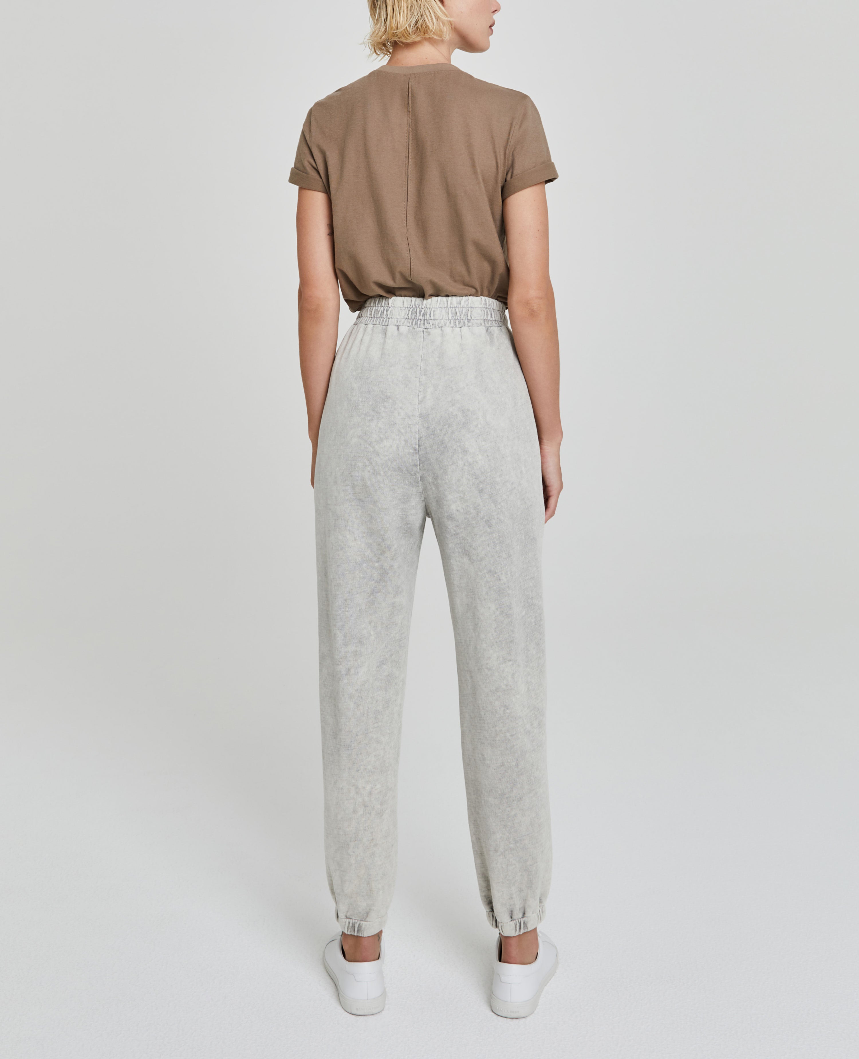The Nova Sweatpant is a jogger for women featuring a wispy light gray hue finished with a subtle acid wash treatment.The Nova offers a slim silhouette, deep patch pockets, elastic cuffs, and drawstring waist with dipped end tips. This women's sweatpant is designed in an exclusive AG-made terry featuring a lightweight feel, ultra soft touch, and a color-rich finish.