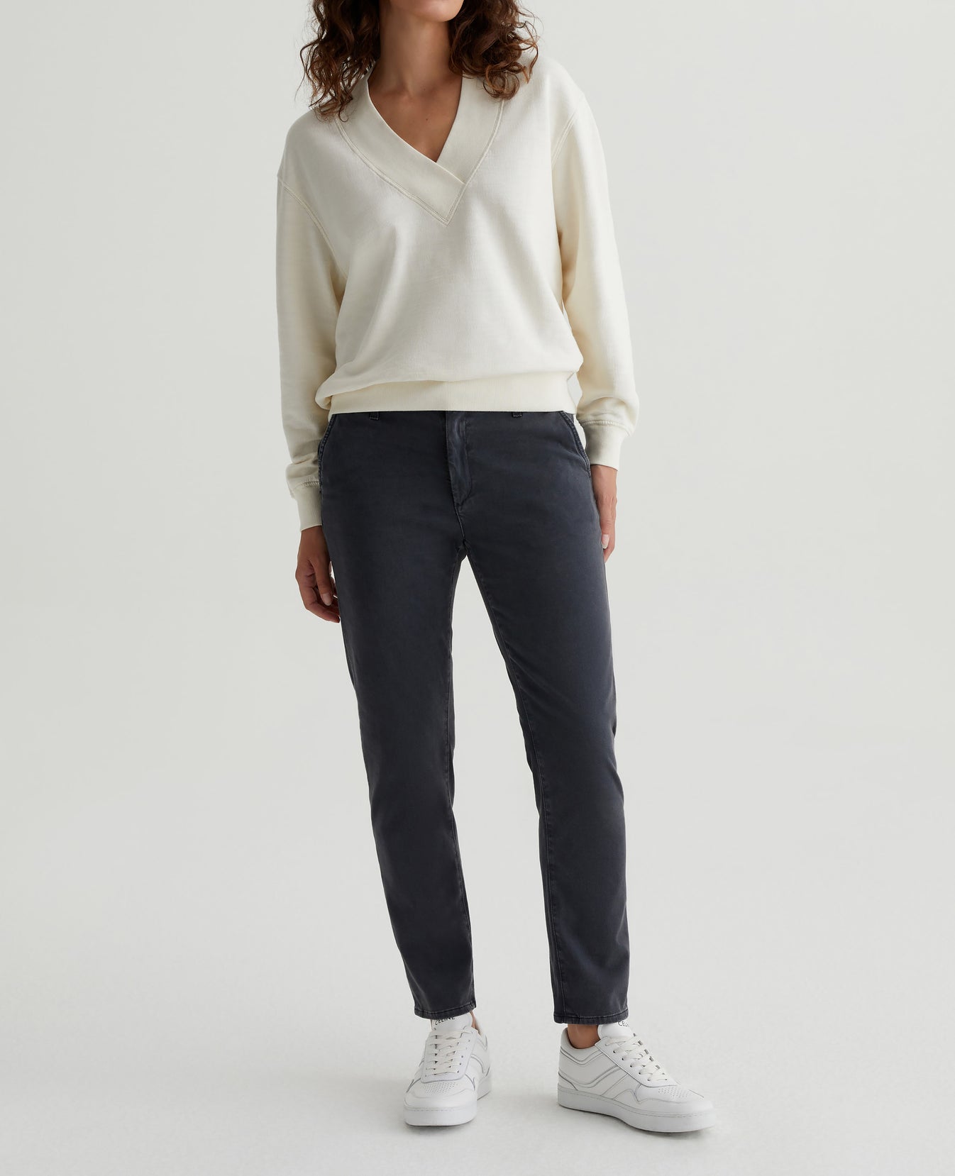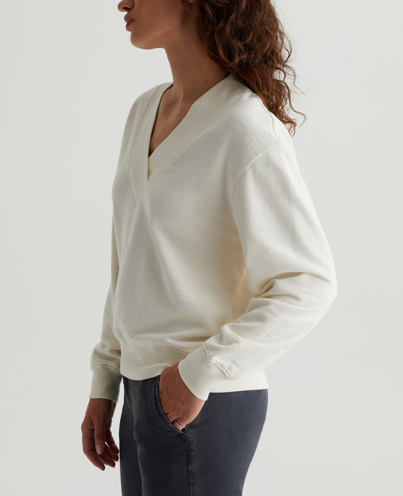 The Nova Vee is a relaxed, slightly boxy sweatshirt defined by an overlapped V-neckline and wide rib trim. This women's long-sleeve sweatshirt comes in off-white and features AG's exclusive Cotton Slub Loopback Terry, a lightweight slub fabric with an ultra-soft feel. It's knitted with our special S&Z twist technique that prevents torquing and keeps the shape on point.