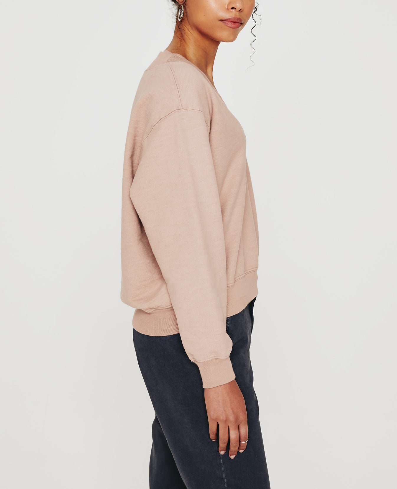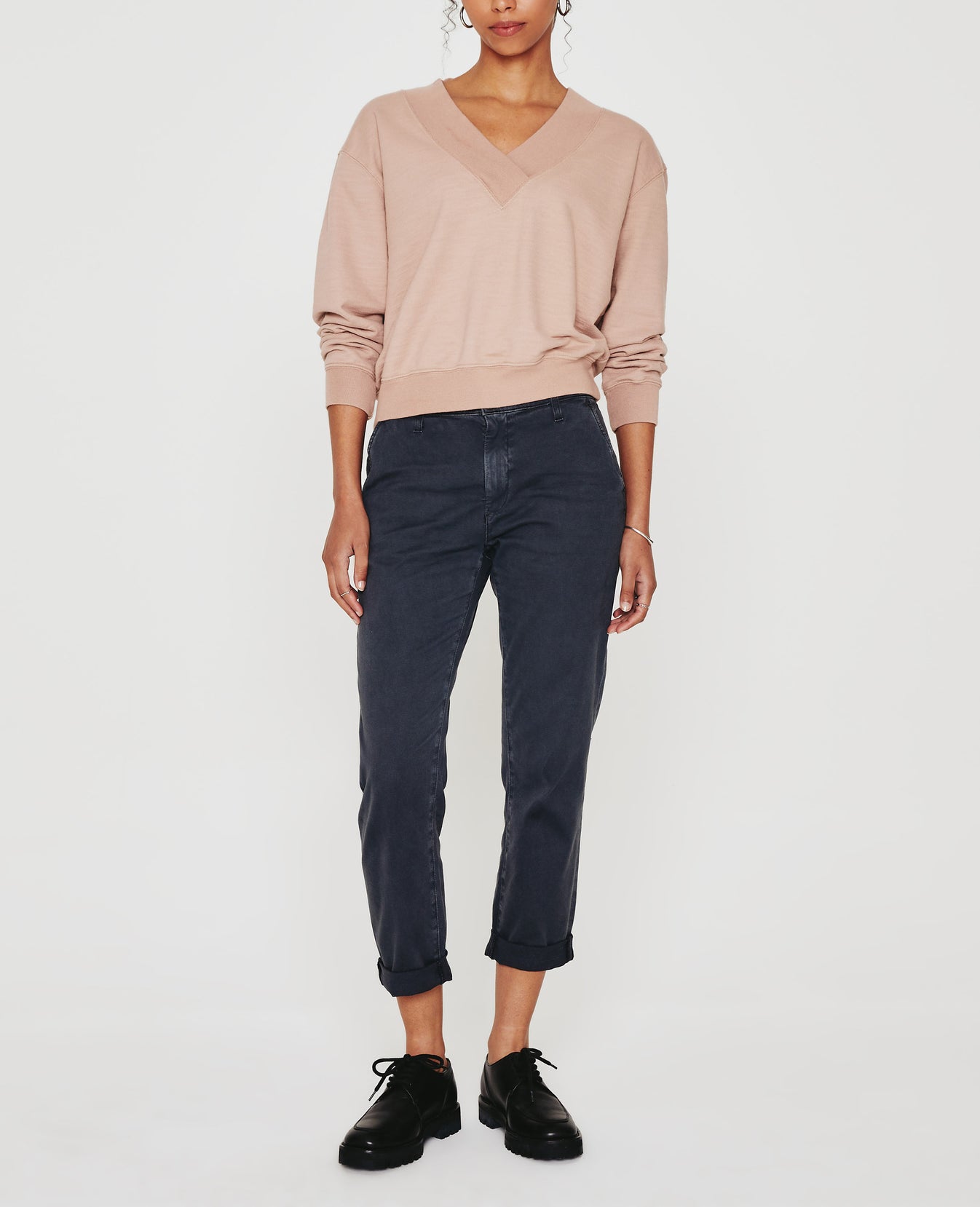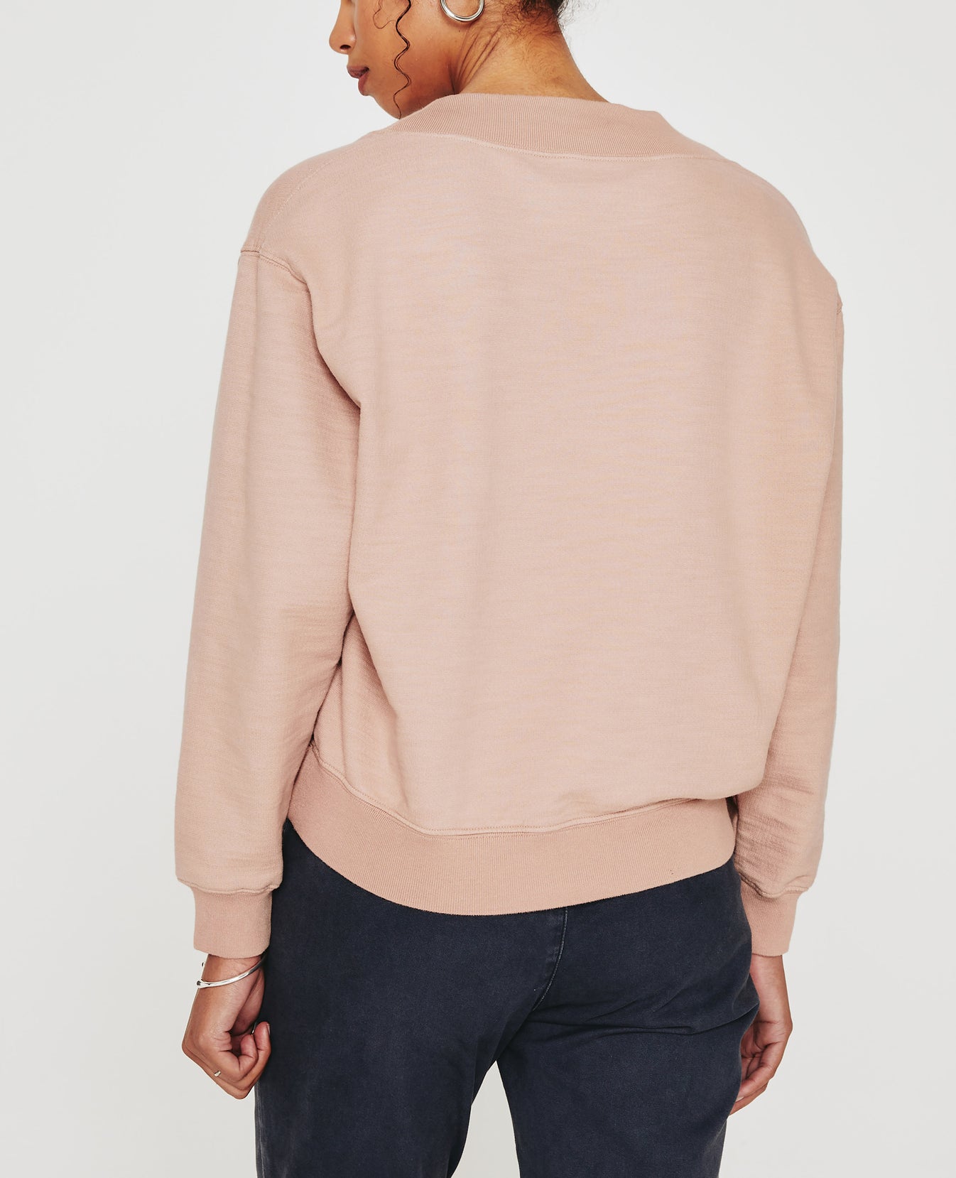 The Nova Vee is a relaxed, slightly boxy sweatshirt defined by an overlapped V-neckline and wide rib trim. This casual staple comes in a muted pink shade and features AG's exclusive Cotton Slub Loopback Terry, a lightweight slub fabric with an ultra-soft feel. It's knitted with our special S&Z twist technique that prevents torquing and keeps the shape on point.