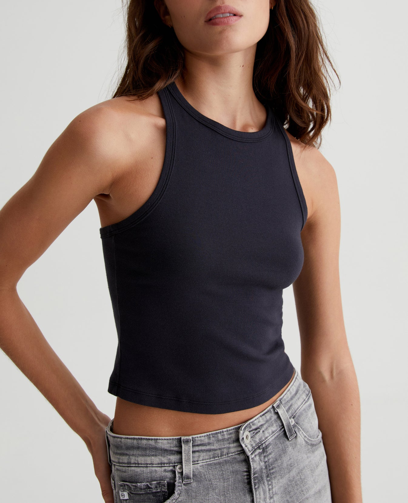 The Olive Tank for women features a formfitting silhouette with a racer back. This women’s tank top is designed in a cotton-blend baby rib knit with a soft, luxe feel. Self-binding details complete the look for a simple, minimalist finish. Done in classic black, it's an effortless addition to your essentials lineup.