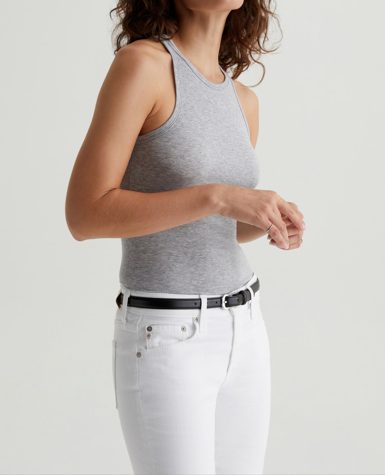The Orso Tank for women is a fitted racerback style in heather grey. This women’s tank top is designed in an eco-friendly micro lyocell rib fabric with a soft, luxe feel. Self-binding details finish the look.