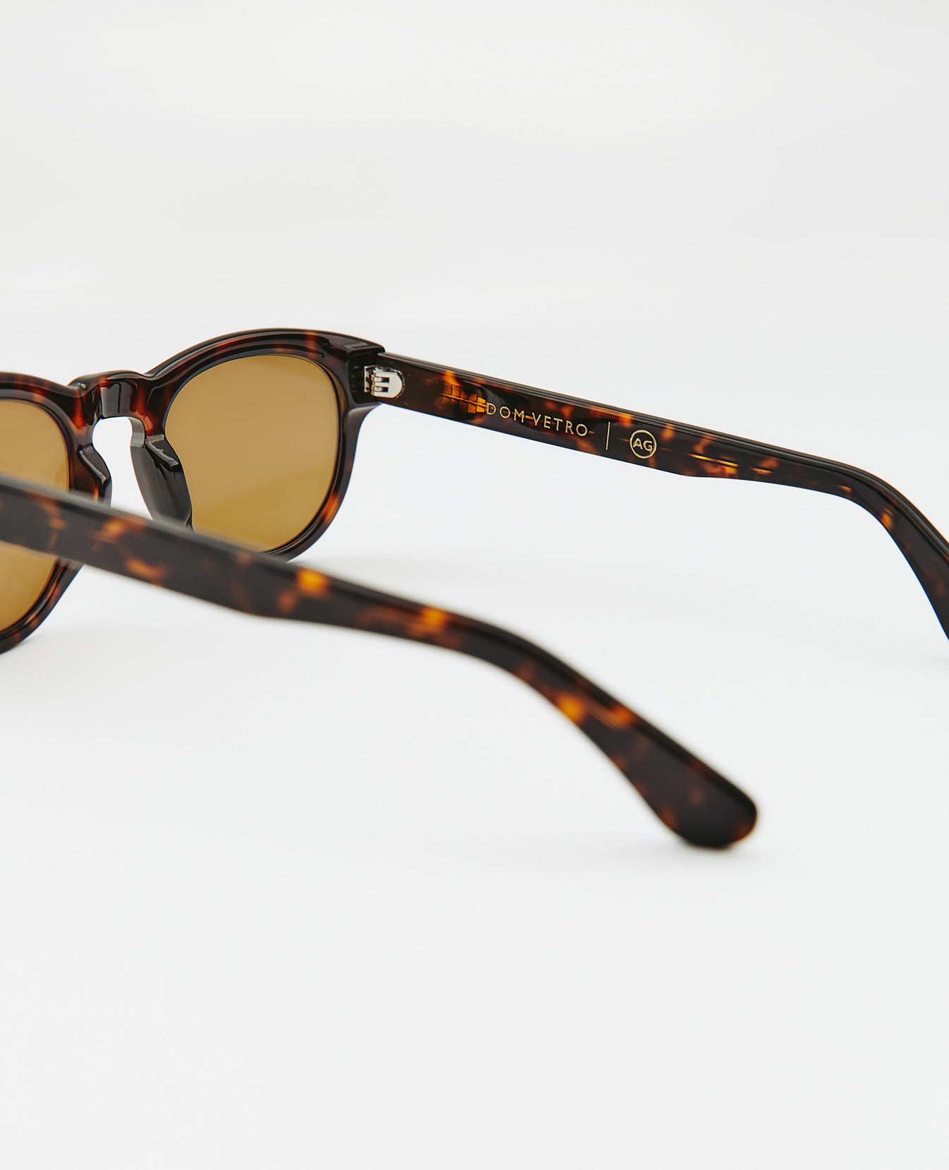 The Primo from the AG x Dom Vetro collection is a timeless, classic, unisex design that boasts five-barrel hinges, creating a meaningful difference in the quality of an already luxurious frame. Designed in dark tortoise, these thick, handmade frames are made from biodegradable, plant-based Italian acetate. The polar mineral glass lens is a recyclable lens that offers superior optical clarity and a much smaller carbon footprint than plastic. Each pair of sunglasses in this collection is a product of true craftsmanship, inspired by the centuries-old art of making impeccable Italian eyewear. Made in Los Angeles.