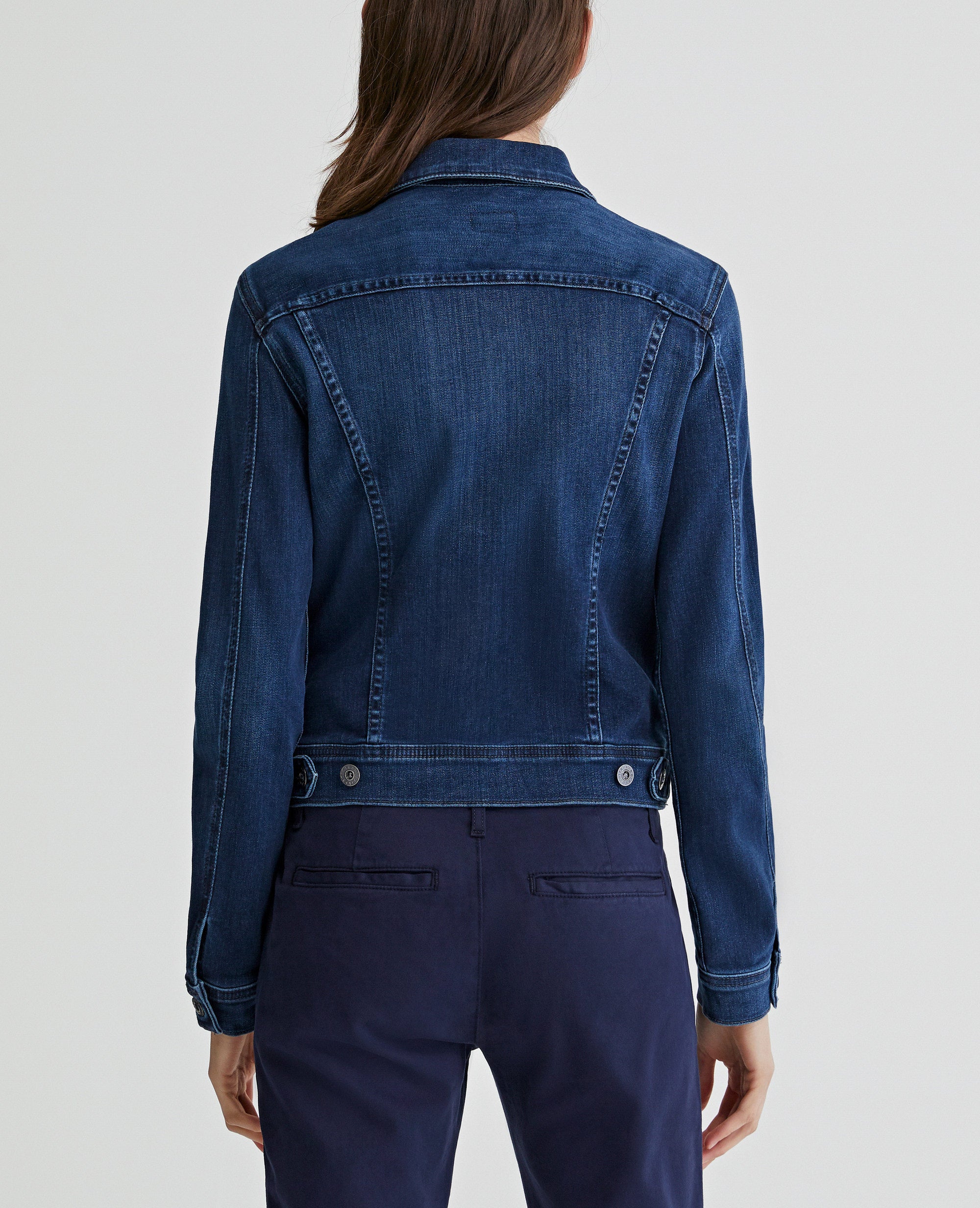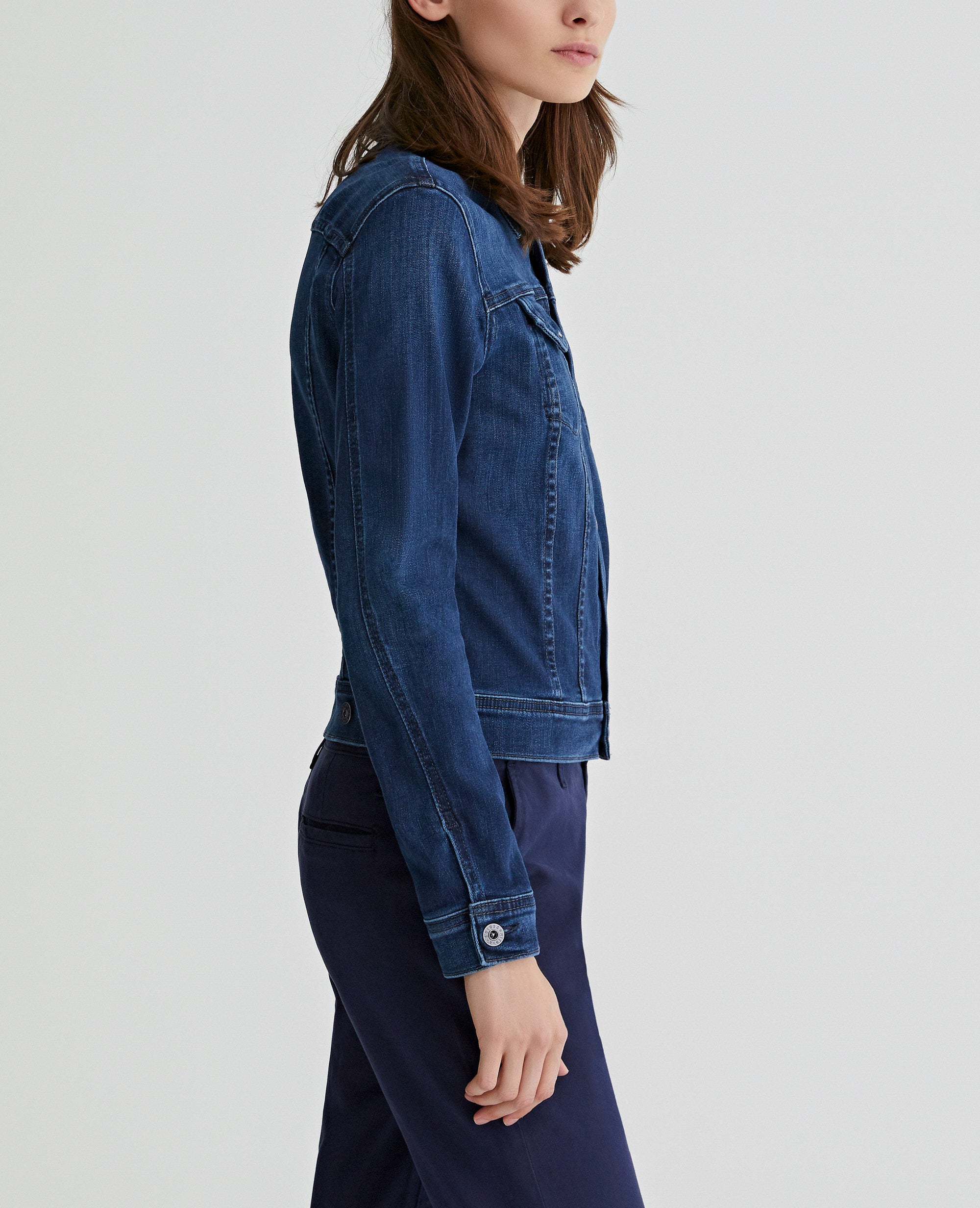 Robyn Jacket is a slim jean jacket for women featuring a clean blue denim wash, fitted silhouette throughout, and classic chest pockets with button closures. This women’s denim jacket is designed in a lightweight, super stretch indigo denim fabrication for a luxurious feel and comfortable wear.