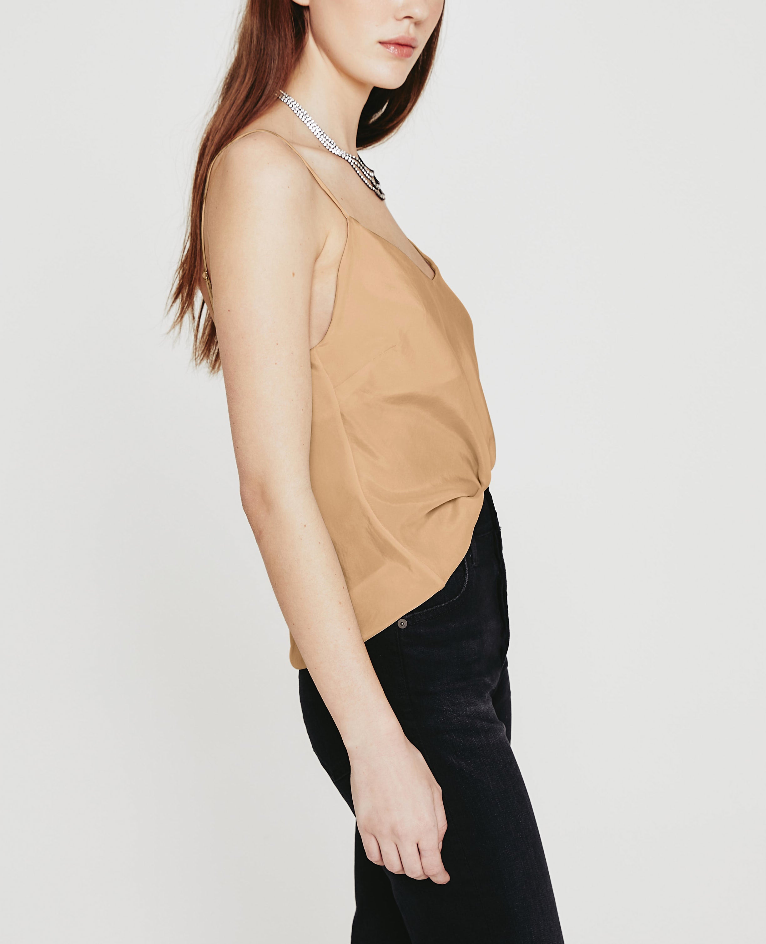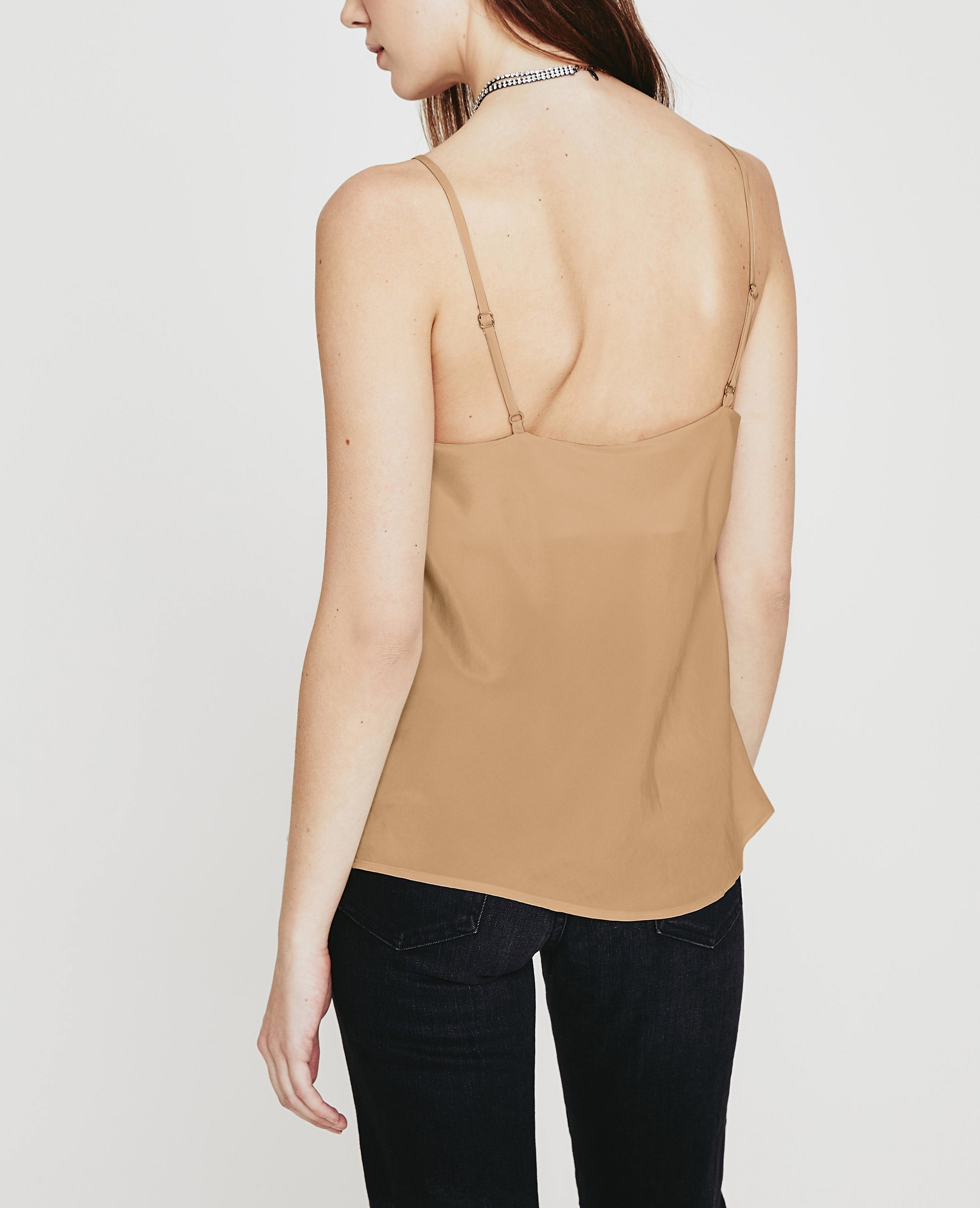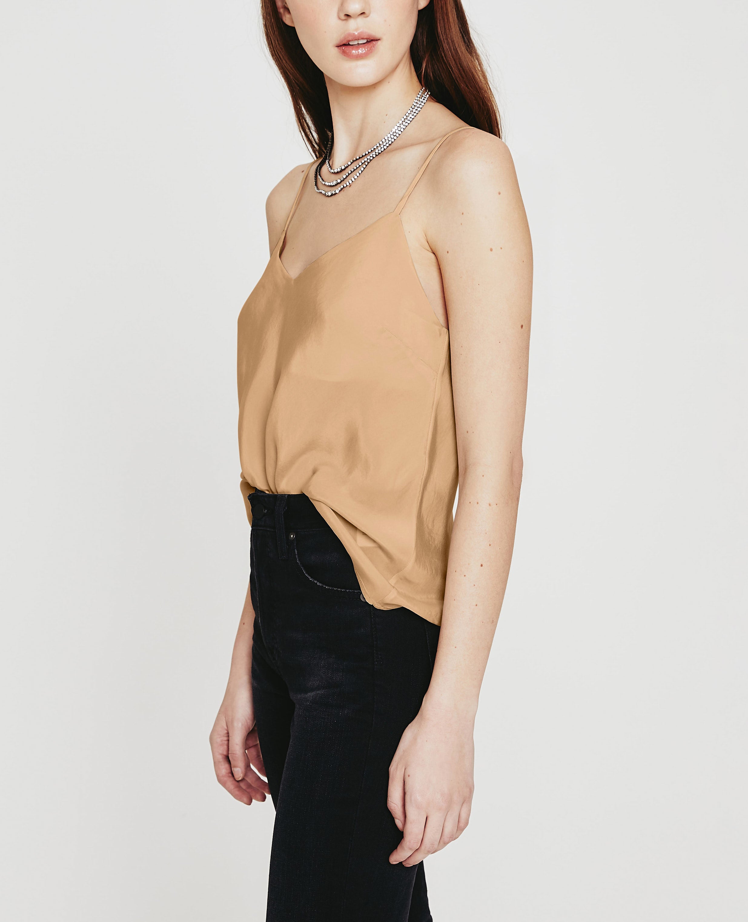 The Scarlet Cami for women is designed in 100% Cupro Silk, a plant-based cellulose silk with a brushed satin hand feel. The unique fabric creates added dimension with free-flowing draping and an elevated sheen. This taupe cami top is lightweight and luxurious, cut on the bias for a slinky fit and detailed with adjustable spaghetti straps.