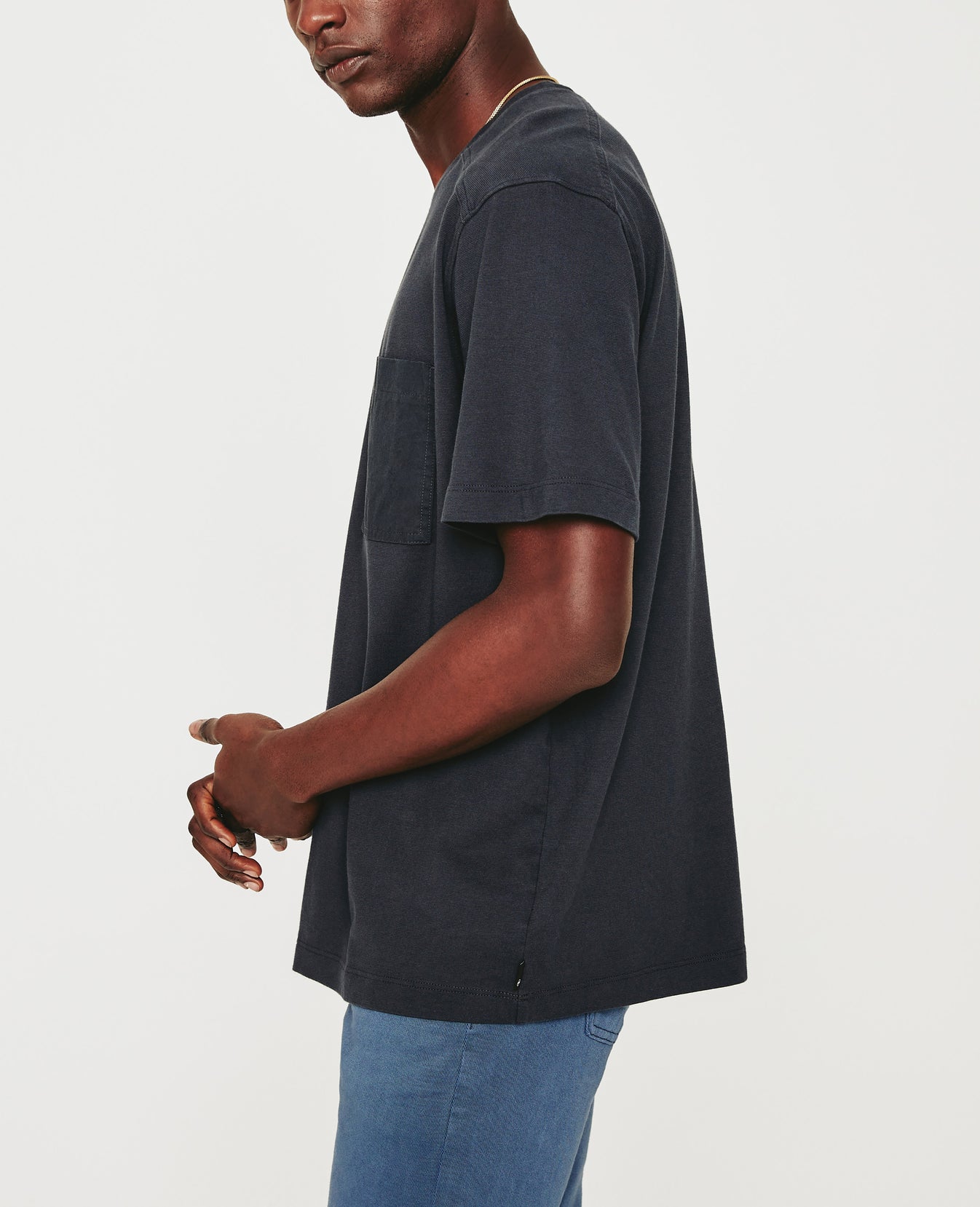 The Shane Crew is a utilitarian-inspired pocket tee with a relaxed fit. Crafted from our Light Cotton Jersey, this men's short-sleeve tee comes in a dark grey shade and features contrast woven fabric at the shoulders and front pocket.