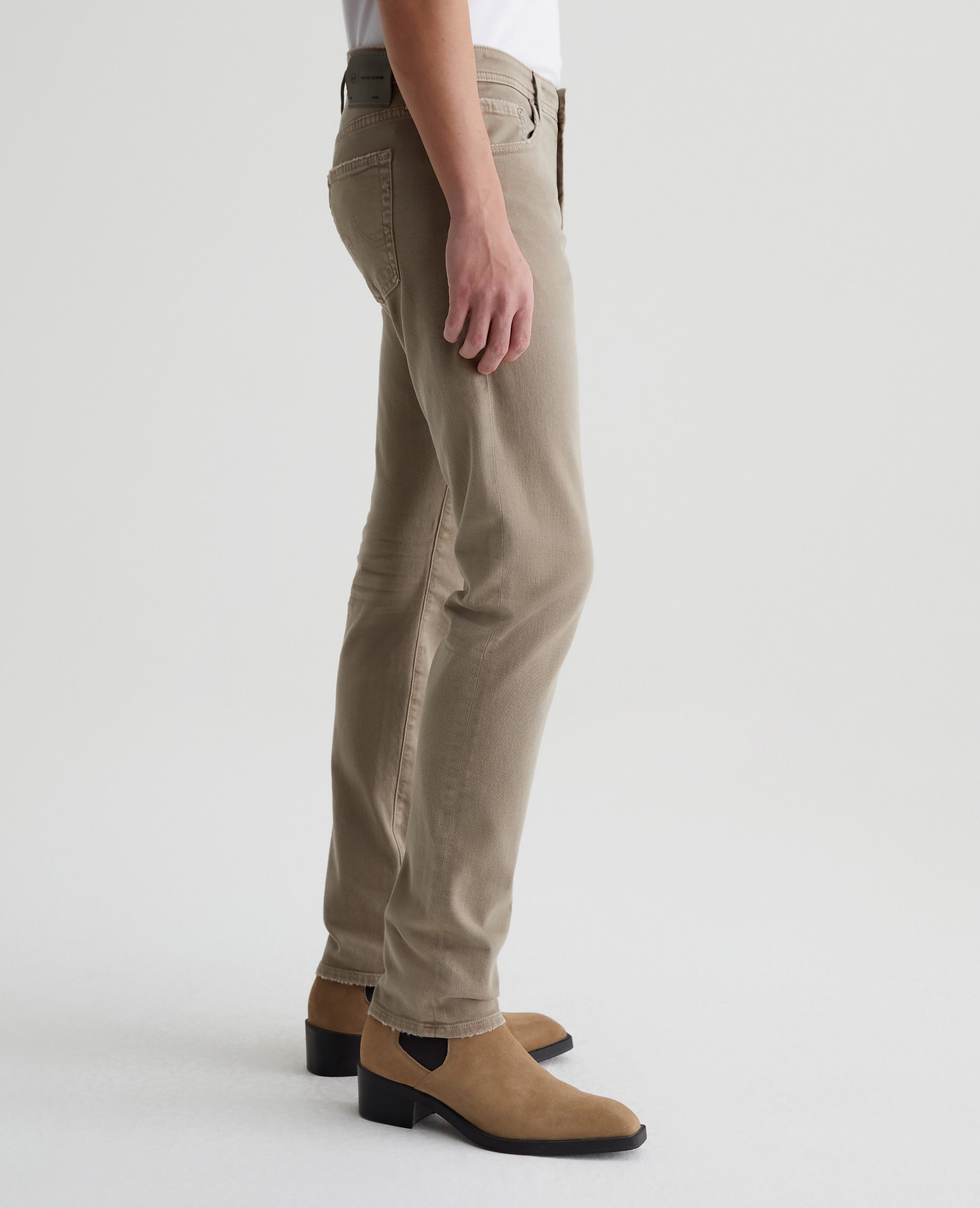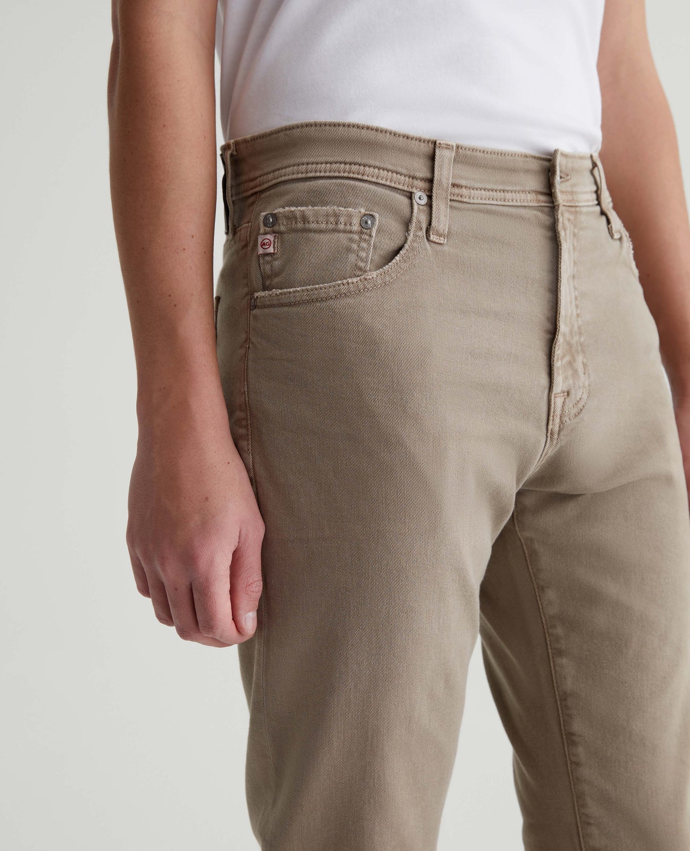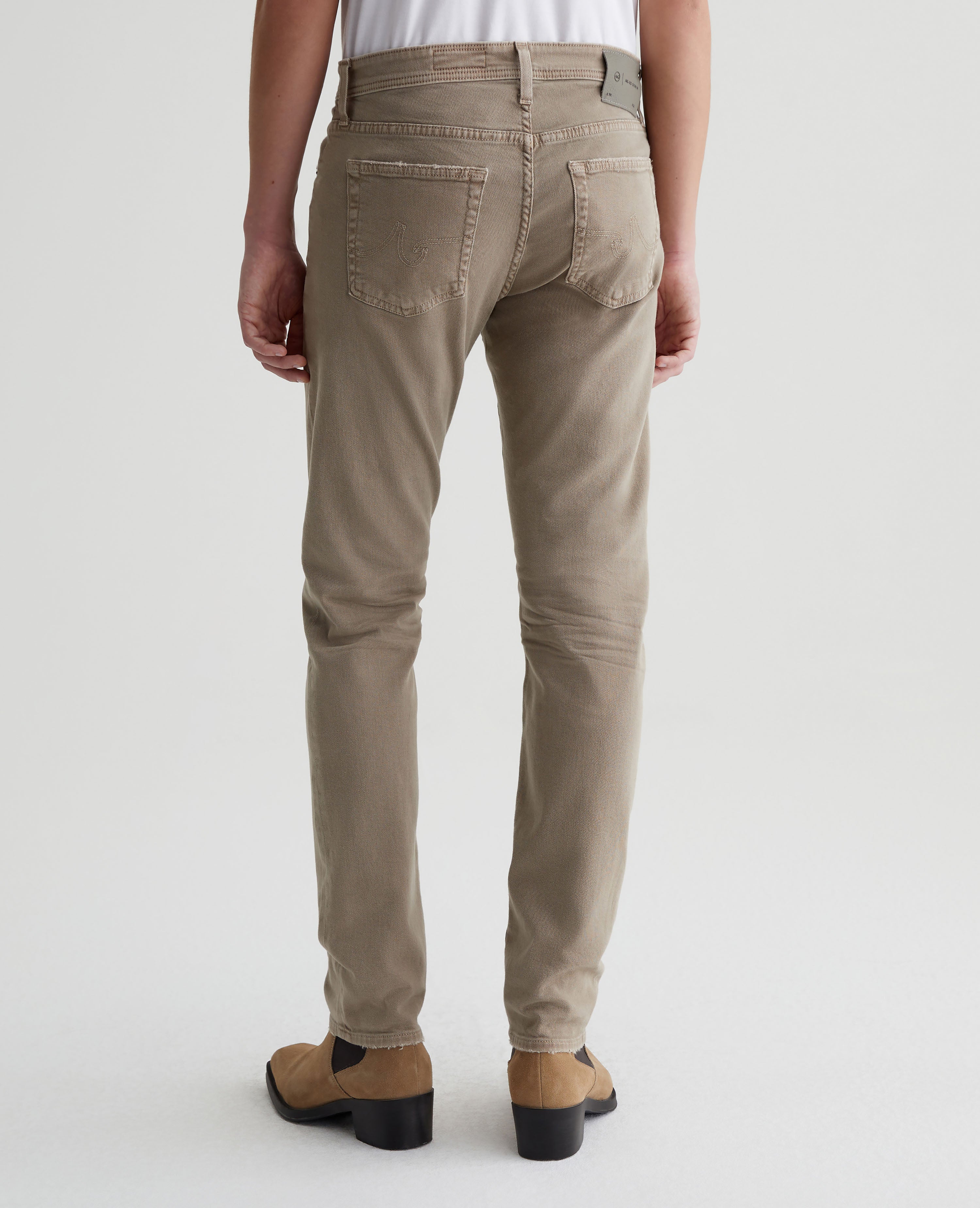 Tellis is a modern slim fit for men, updated in a sulfur-dyed beige wash that's been AG-ed™ with fading and worn pocket edges to emulate 7 years of wear. These five-pocket jeans have a fitted upper block and a tapered leg opening in 8.7 oz. Hyper Soft Bull Denim, our velvety left-hand twill fabric from the AG Cloud Soft Denim™ collection. The fabric's special construction allows the yarns to gently relax and untwist for a supple feel that gets softer with every wear. Dual-elastic performance fibers offer elevated stretch and recovery.