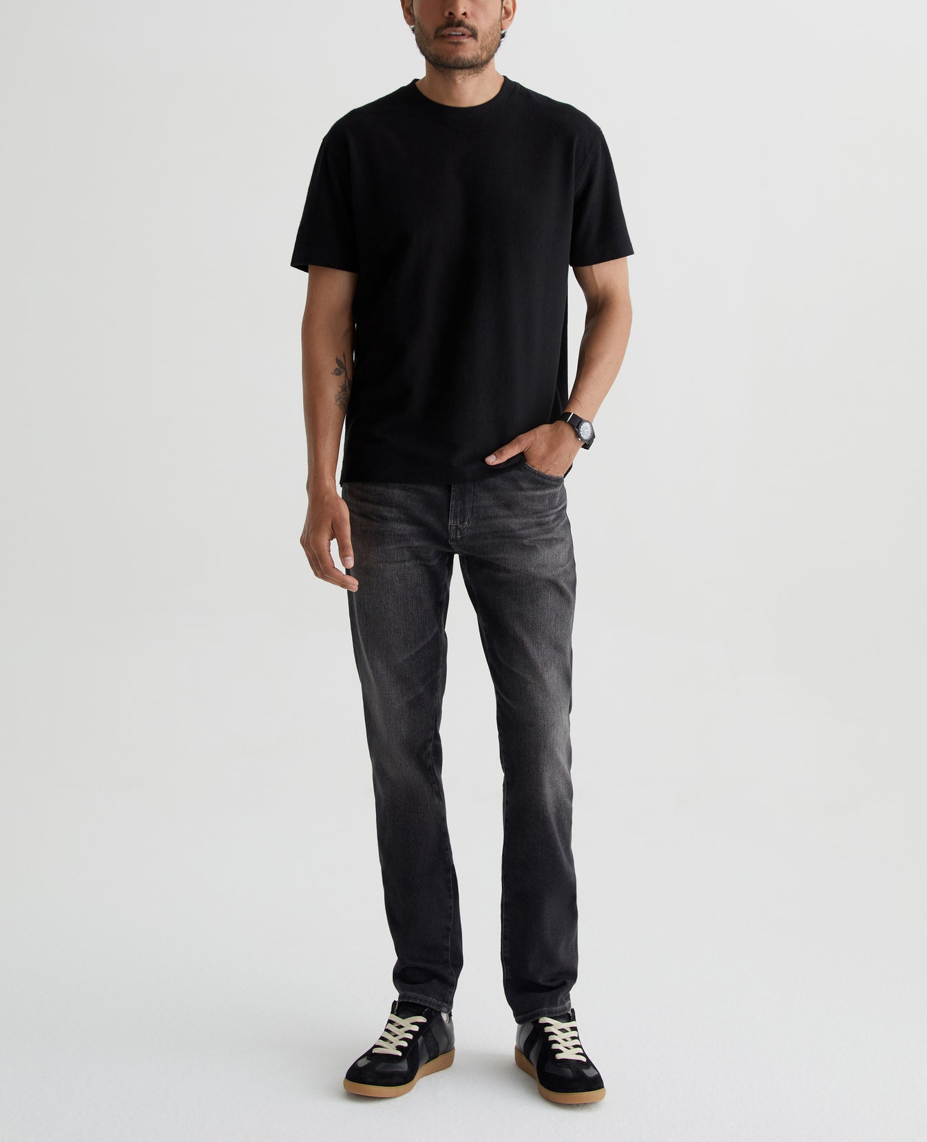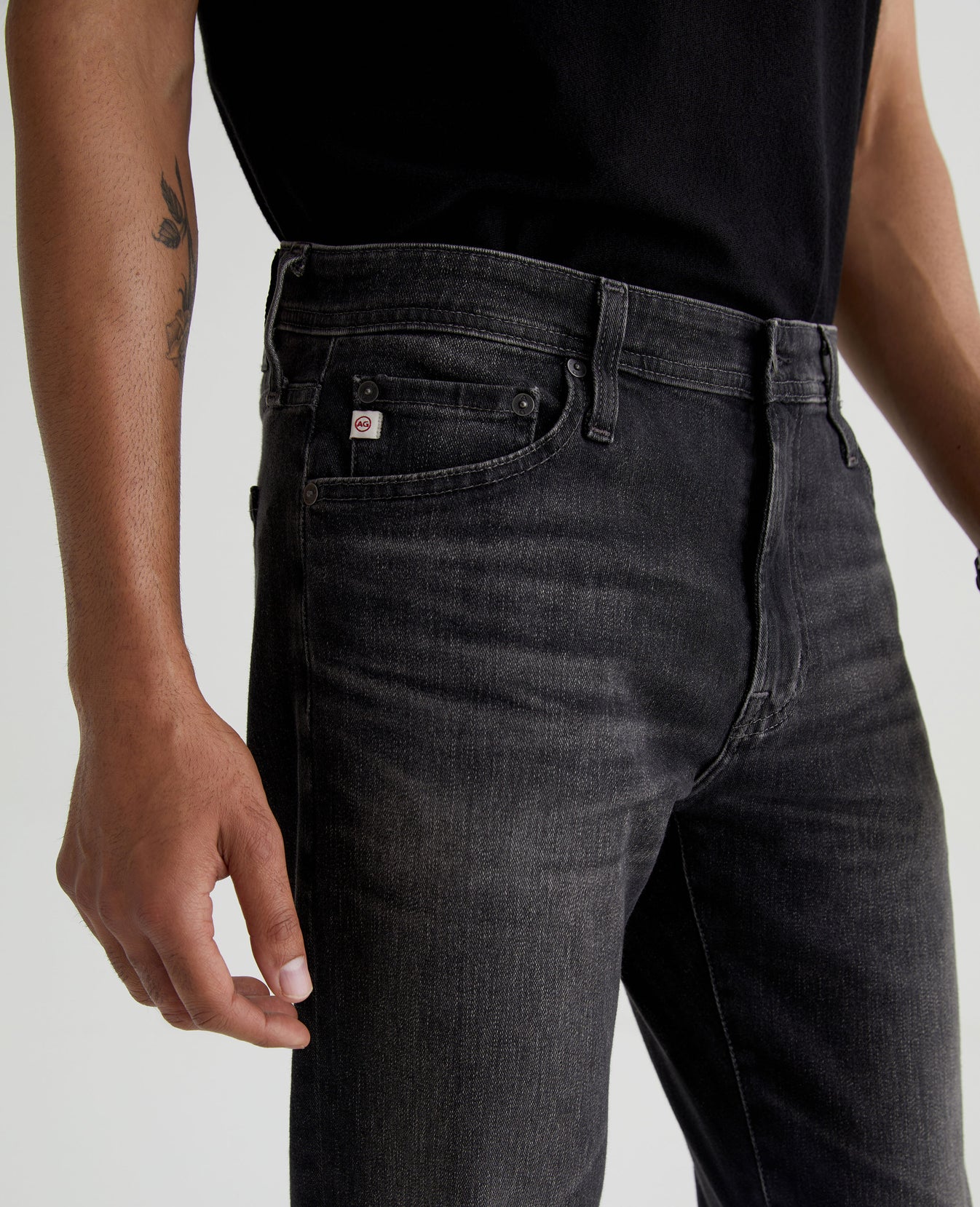Tellis is a modern slim-cut men's jean, updated here in a 12-year black shade with faded details and a vintage tint. The five-pocket style has a fitted upper block and tapered leg opening. Made from our exclusive AG Cloud Soft Denim™, a left-hand twill fabric that allows the yarns to gently relax and untwist for a supple, velvety-soft feel. It's designed to get even softer as you wear it. Dual-elastic stretch offers extra comfort.