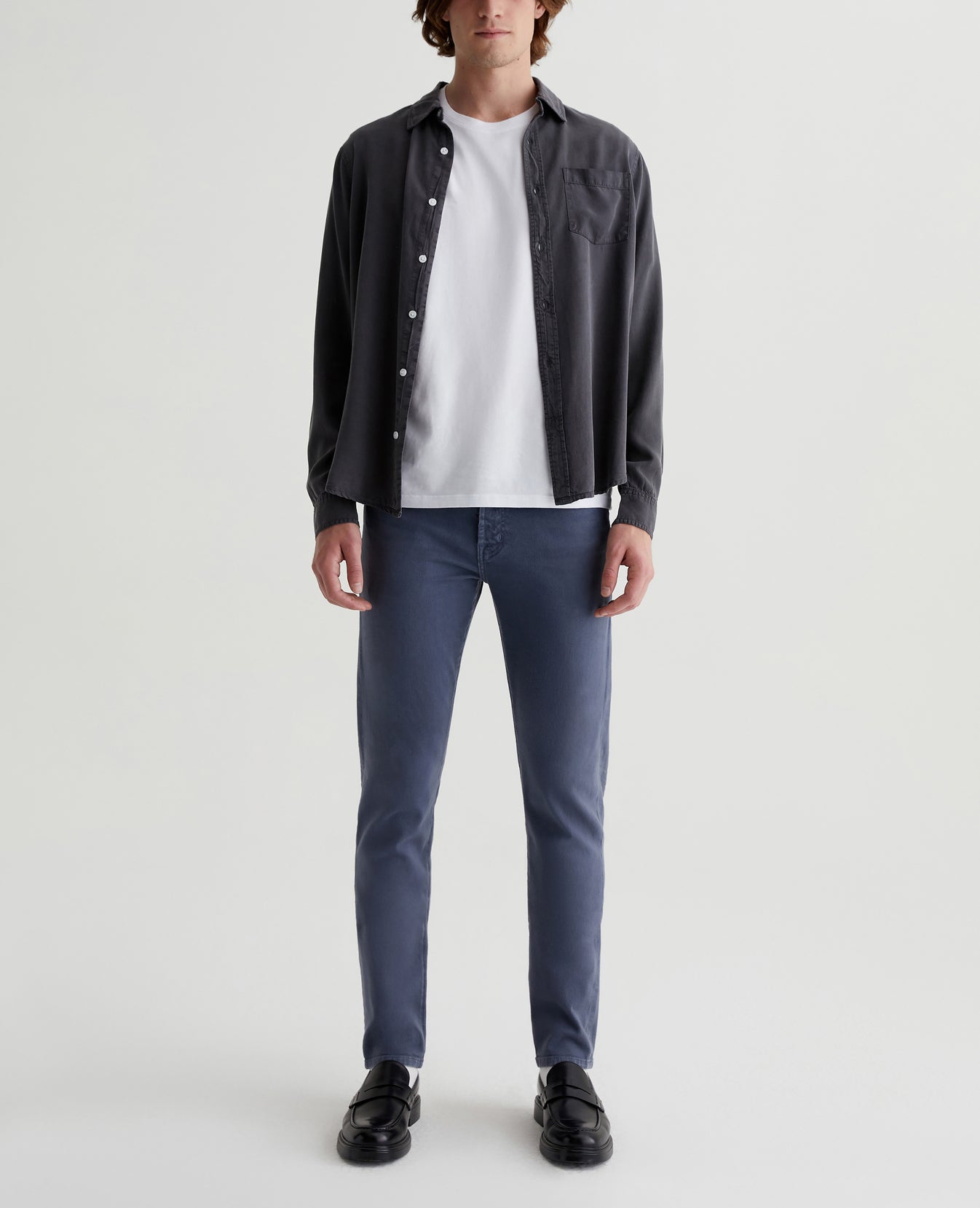 Tellis is a modern slim fit for men, updated in a medium blue wash with a 7-year AG-ed™ denim fade. These five-pocket jeans have a fitted upper block and a tapered leg opening in 9.4 oz. Hyper Soft Indigo Denim, our exclusive left-hand twill fabric with a velvety texture. Made from our exclusive AG Cloud Soft Denim™, the fabric's special construction allows the yarns to gently relax and untwist for a supple feel that gets softer with every wear. It's blended with dual-elastic performance fibers, offering premium stretch and recovery.