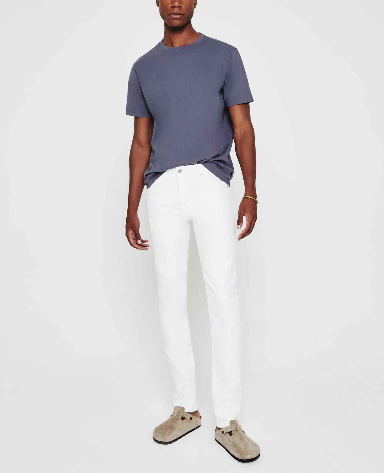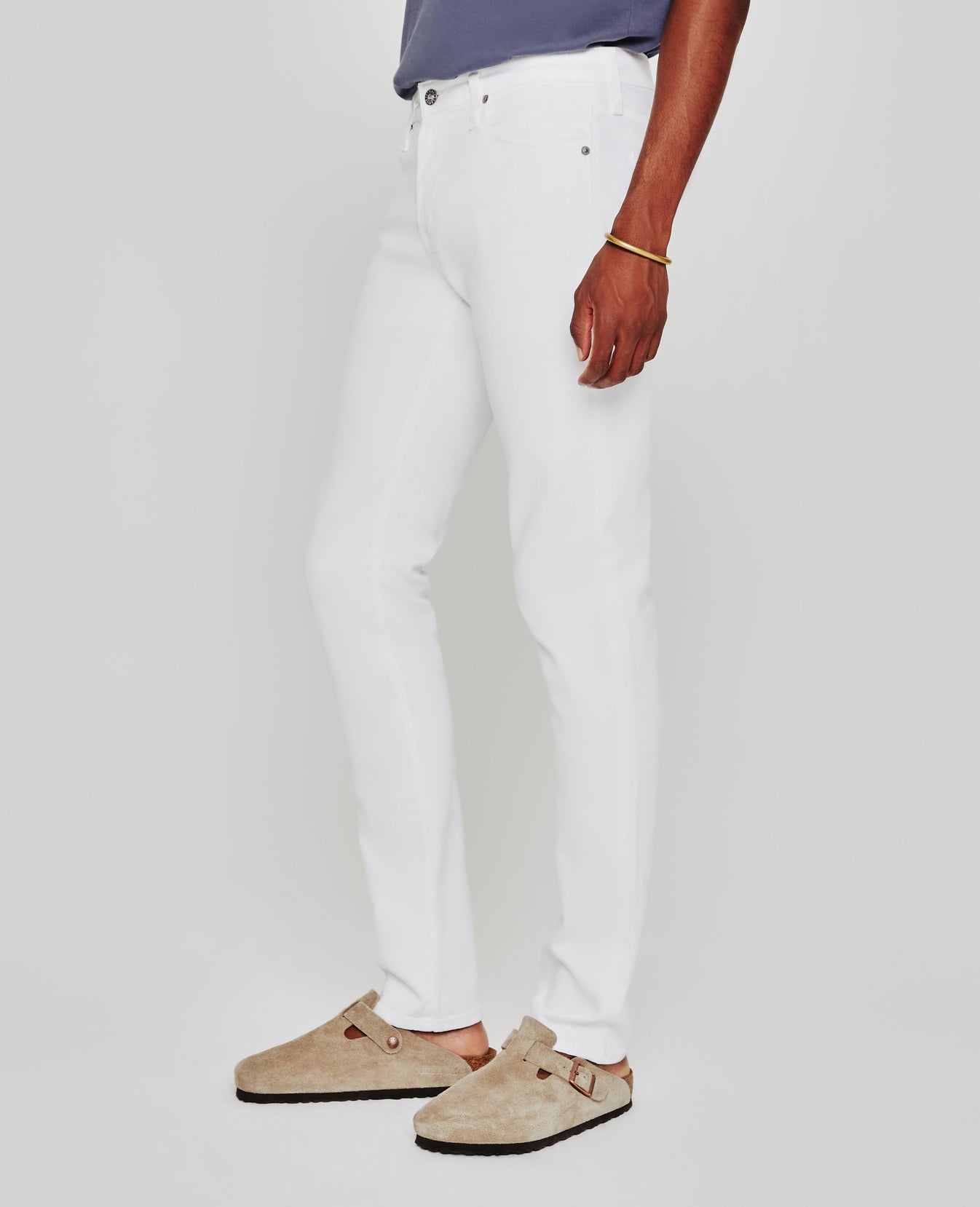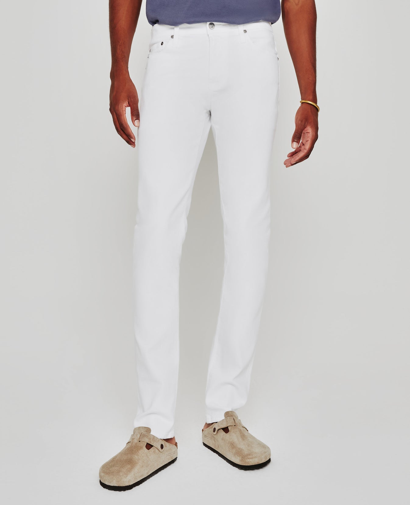 The Tellis modern slim jean for men features a fitted upper block and tapered leg opening—complete with a crisp white hue. This men’s pant is designed in 10 oz. Dover Stretch Denim for a luxurious feel and premium look.