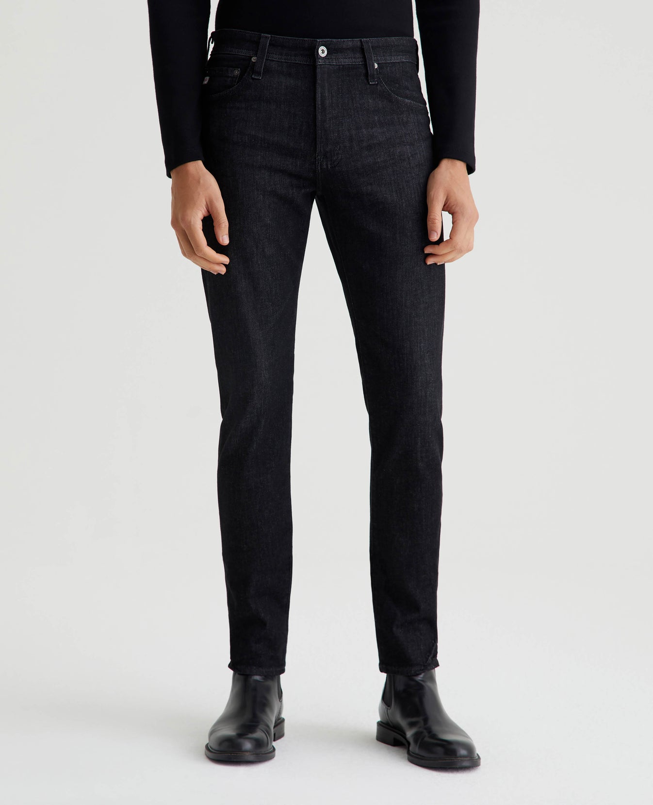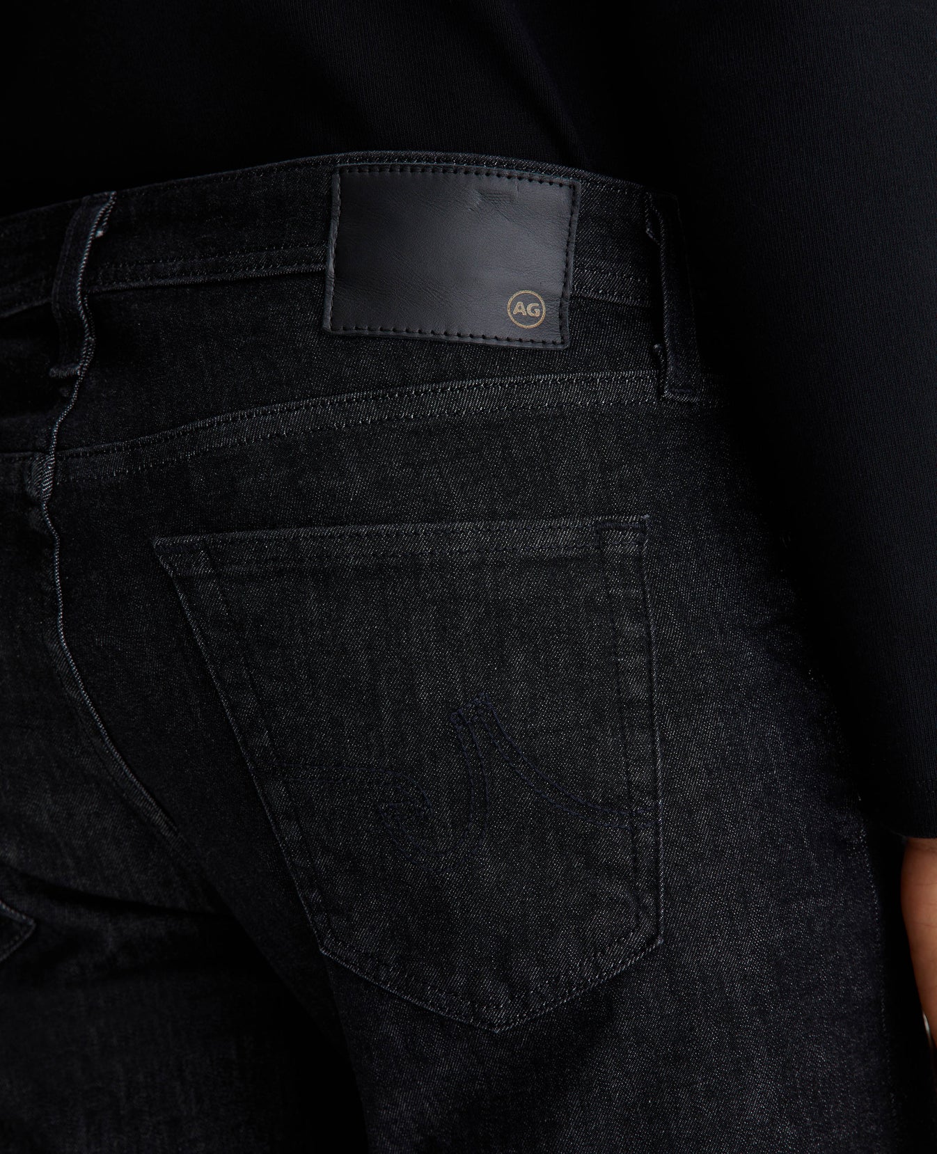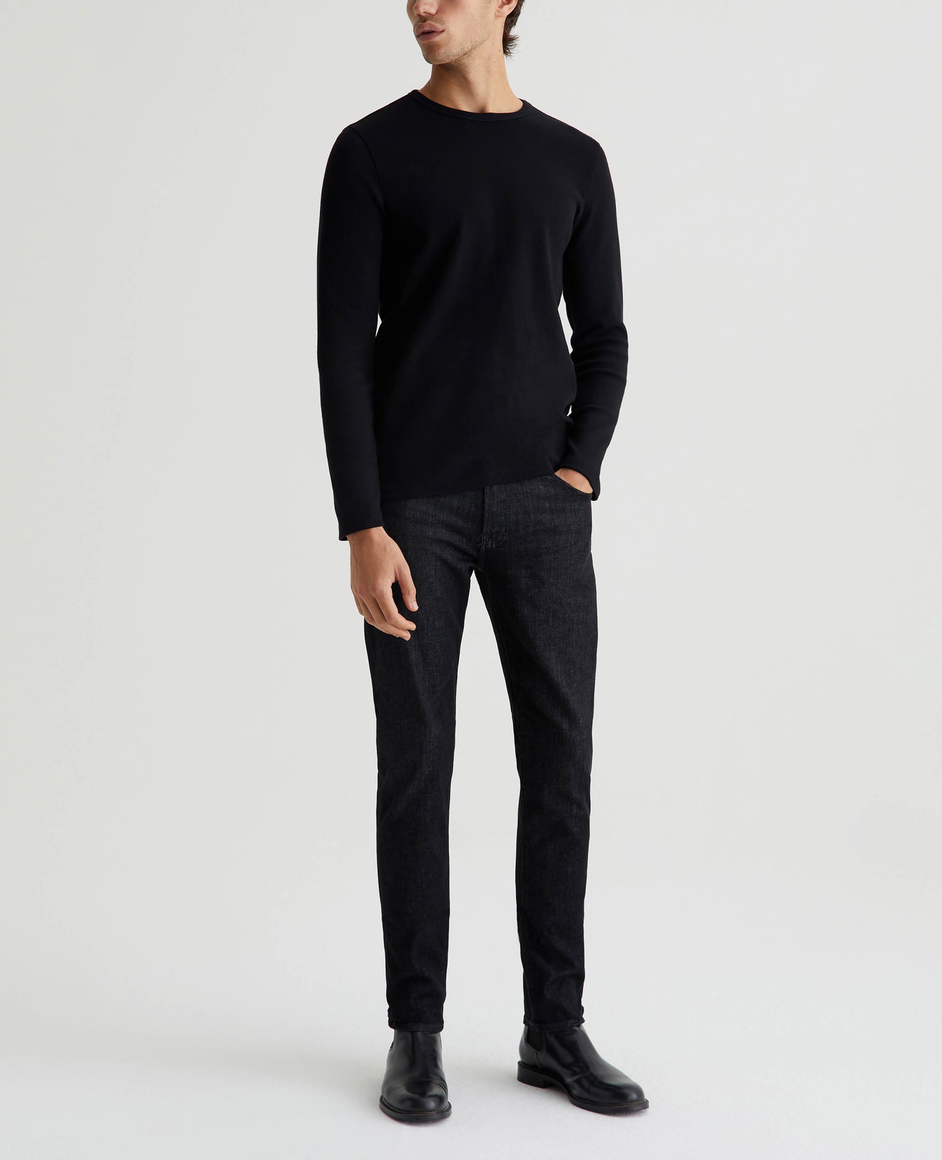Tellis is a modern slim fit for men, updated in our 10.5 oz Infinite Bi-Stretch Black denim with a touch of whiskering. These five-pocket jeans have a fitted upper block and a tapered leg opening.