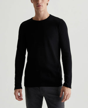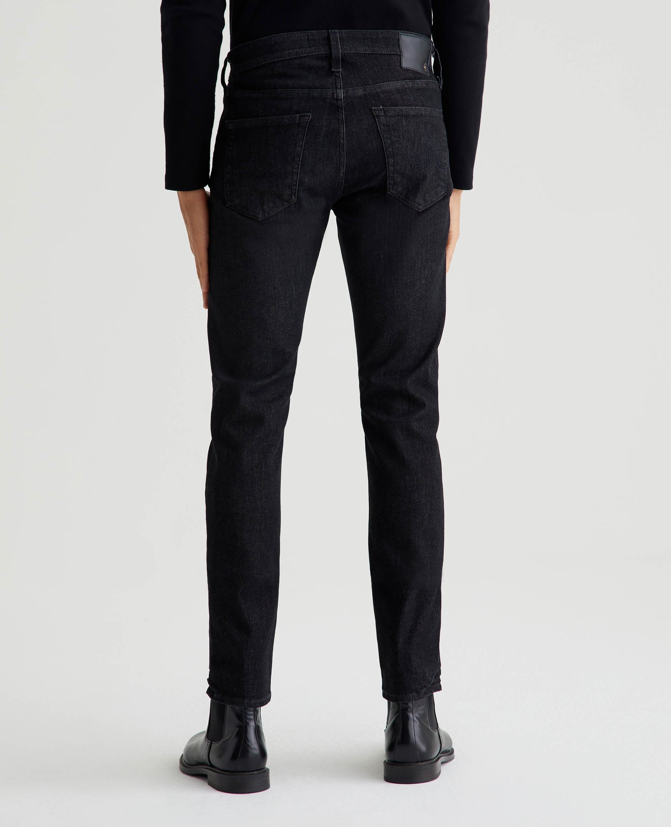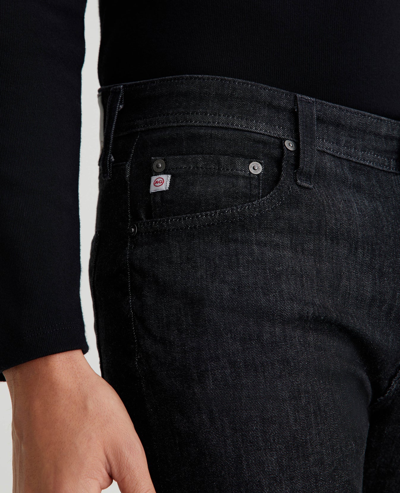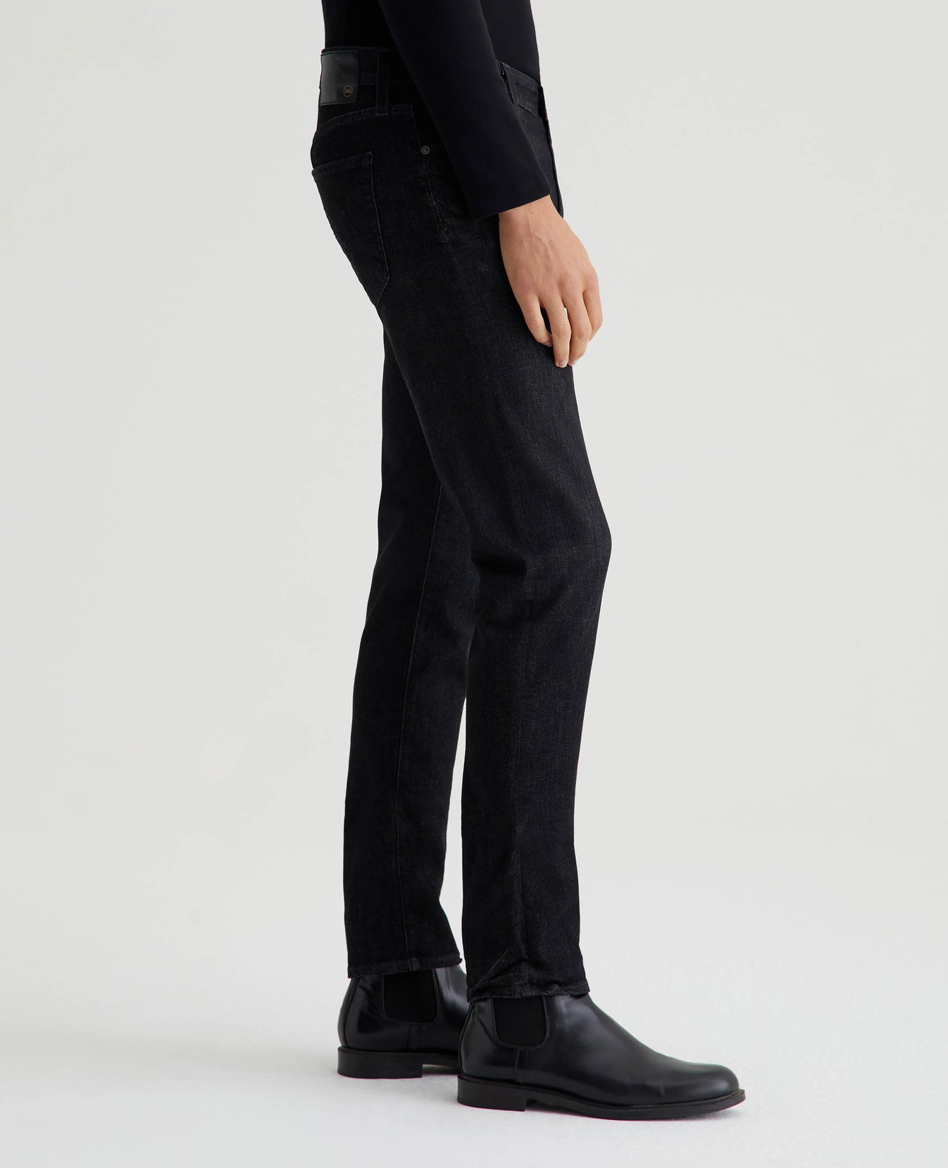 Tellis is a modern slim fit for men, updated in our 10.5 oz Infinite Bi-Stretch Black denim with a touch of whiskering. These five-pocket jeans have a fitted upper block and a tapered leg opening.