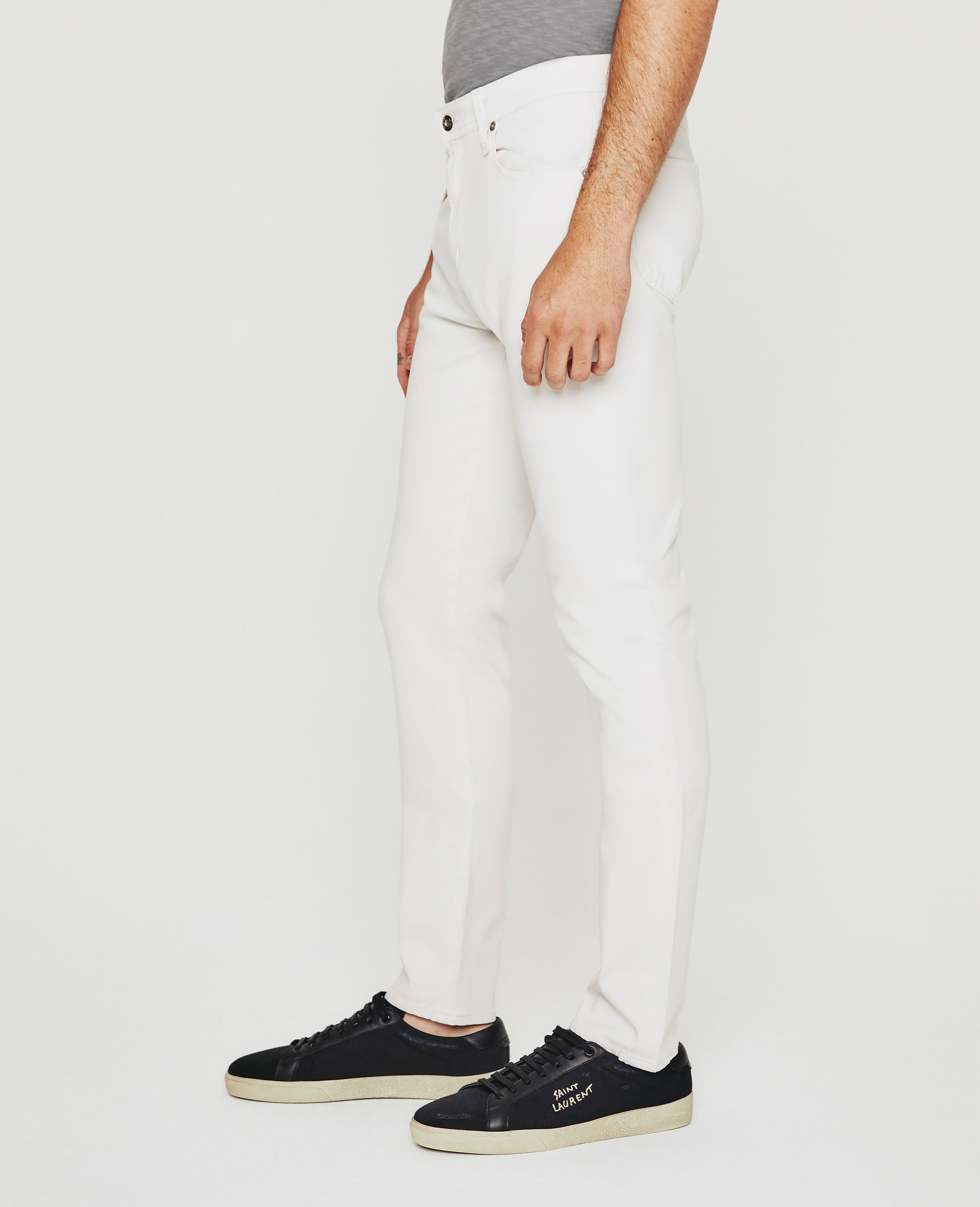 The Tellis modern slim fit introduces our new 11 oz. 360° Sueded Sateen in an ultra-pale shade of grey. Featuring a fitted upper block and tapered leg opening, the five-pocket men's pant combines all-direction stretch with the refined texture of our best-selling sateen.