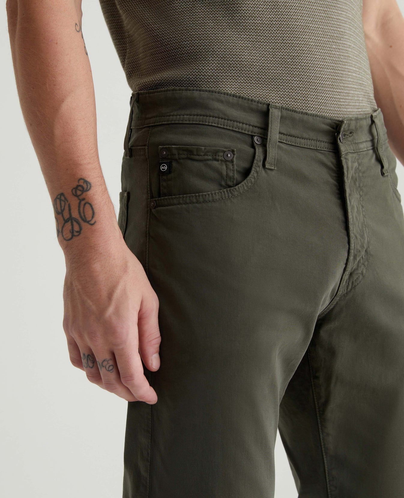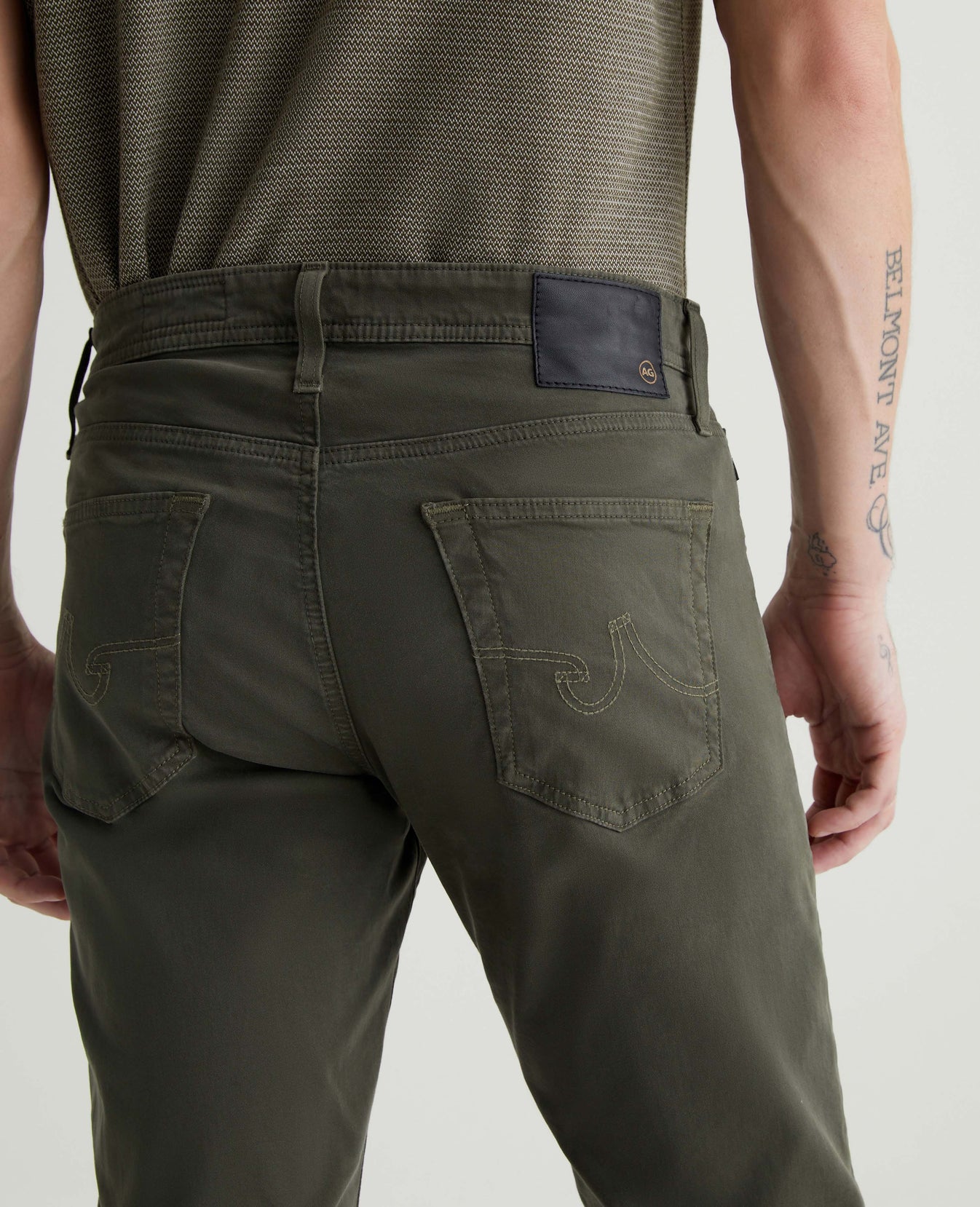 Tellis is a modern slim-fit men's pant in 8.4 oz. Sueded Stretch Sateen with a soft, brushed finish. Featuring a forest green shade, this five-pocket pair has a fitted upper block and tapered legs.