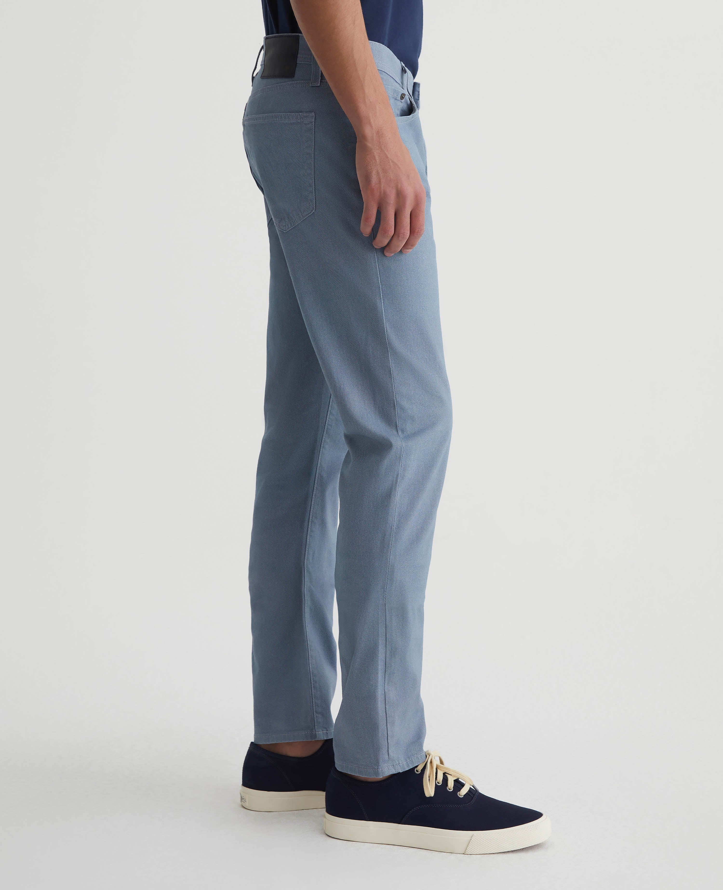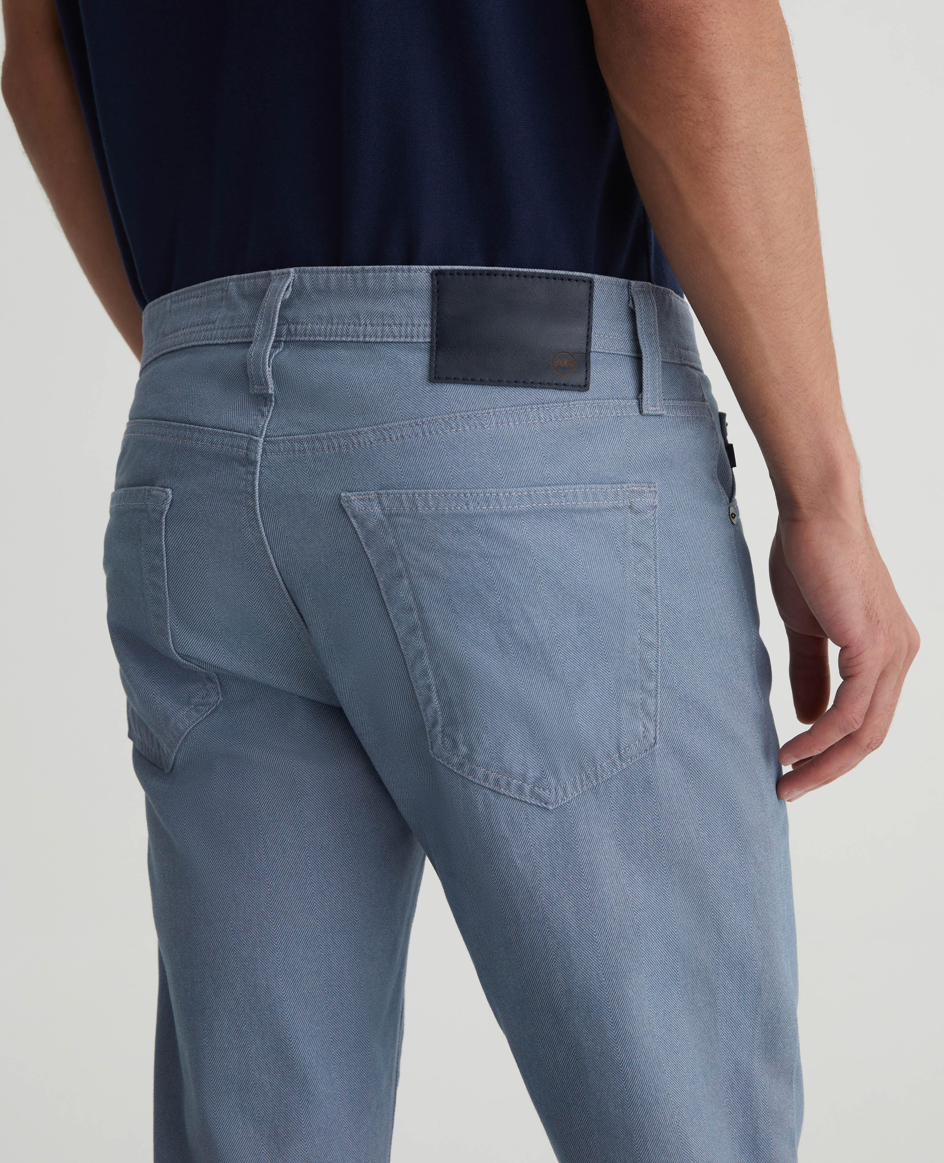 Tellis is our modern slim fit for men, updated here in a subdued blue shade with a refined herringbone print. The style has a fitted upper block and tapered leg opening. This men’s pant is designed in lightweight 8.4 oz. Sueded Stretch Sateen featuring a soft, brushed finish.