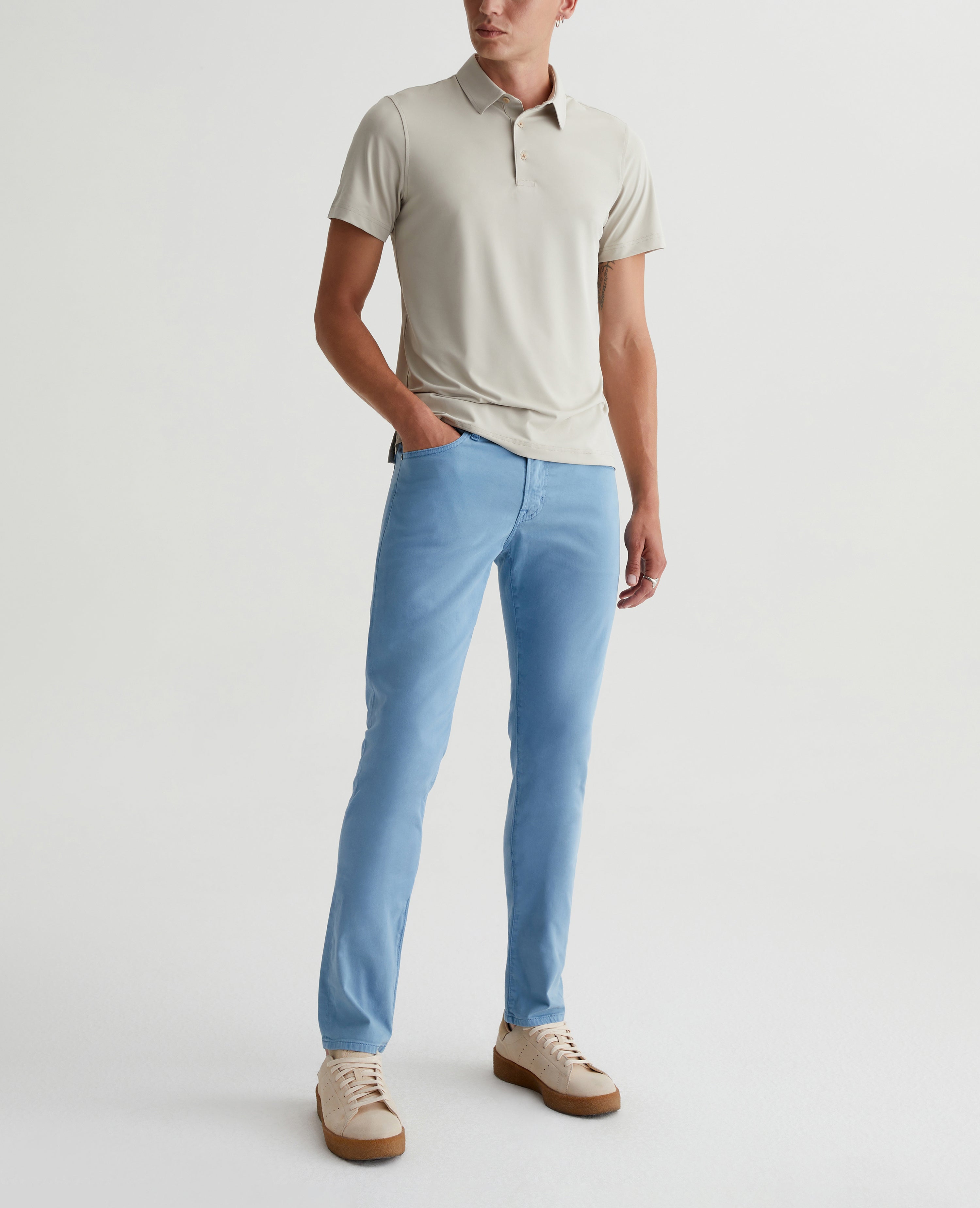 The Tellis is our modern slim fit for men, designed with a fitted upper block, tapered legs, and a sulfur-dyed sky blue shade. This men’s pant is designed in lightweight 8.4 oz. Sueded Stretch Sateen featuring a brushed finish for a refined look and soft, smooth feel.