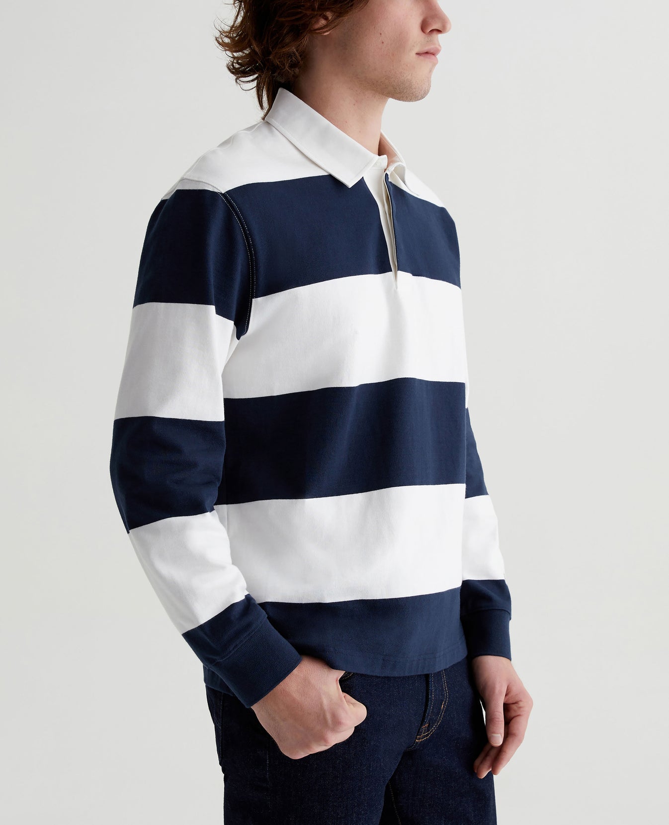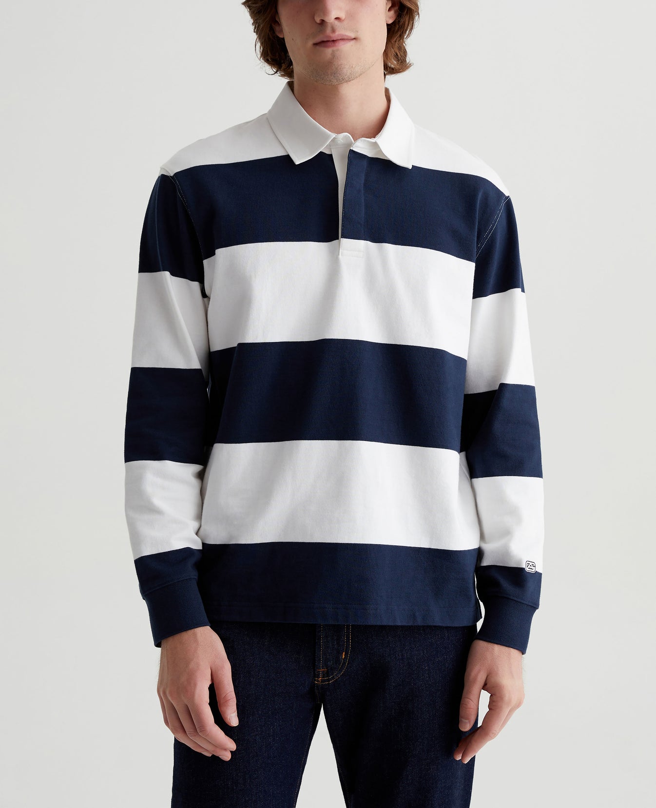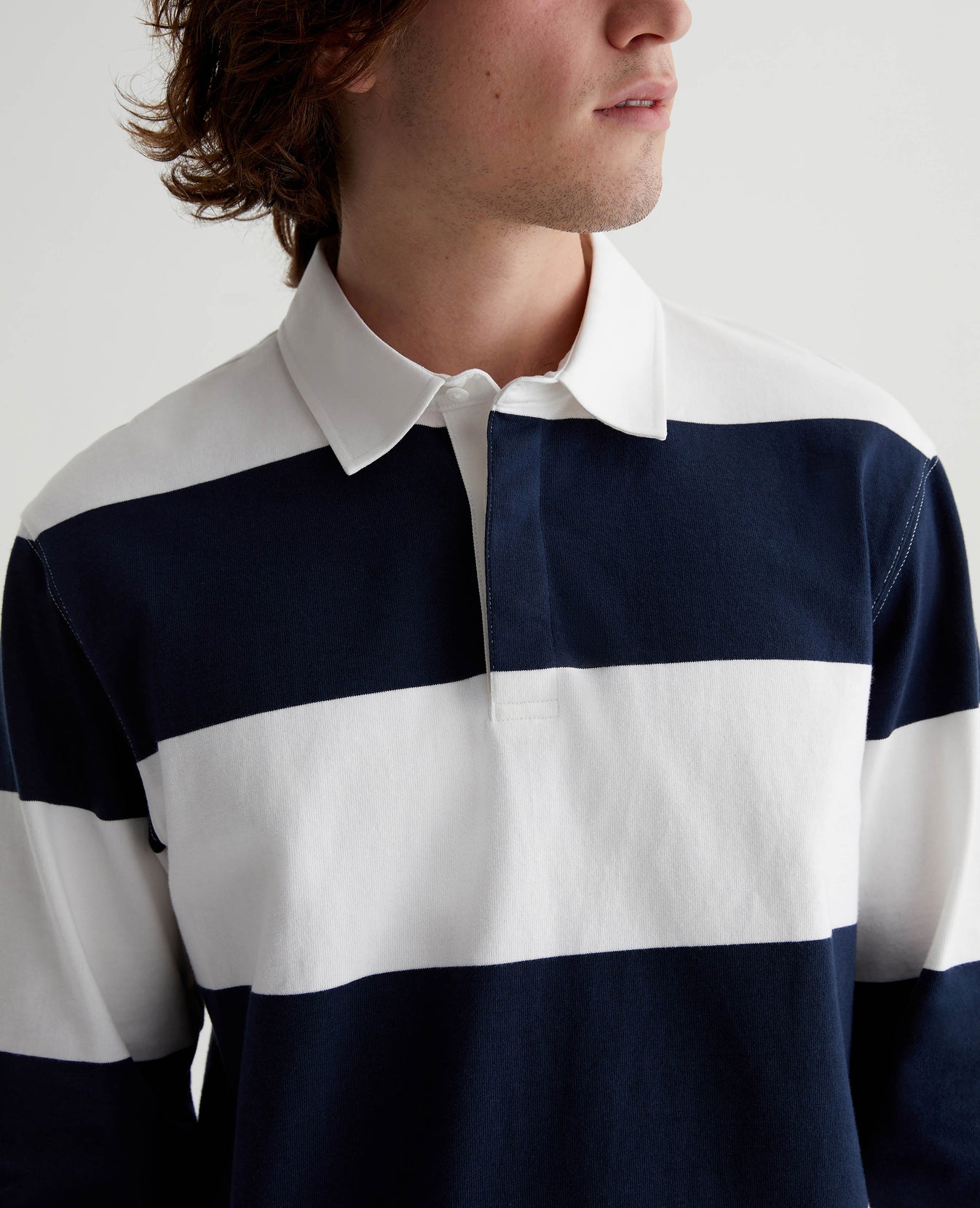 Inspired by vintage collegiate style, the Wade Rugby Shirt comes in heavy cotton jersey with wide stripes. The long-sleeve silhouette has a relaxed fit with a polo collar and a hidden button placket reinforced by cotton twill.