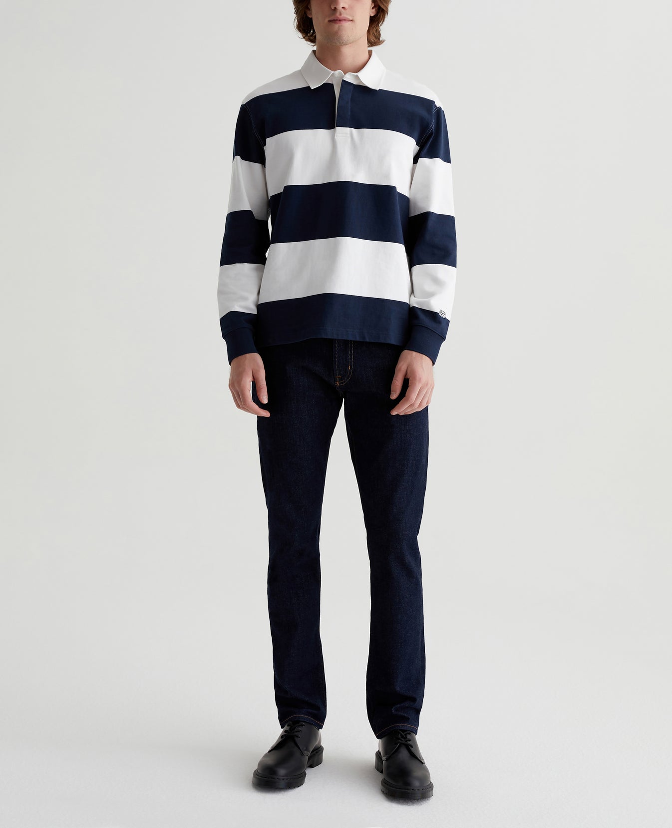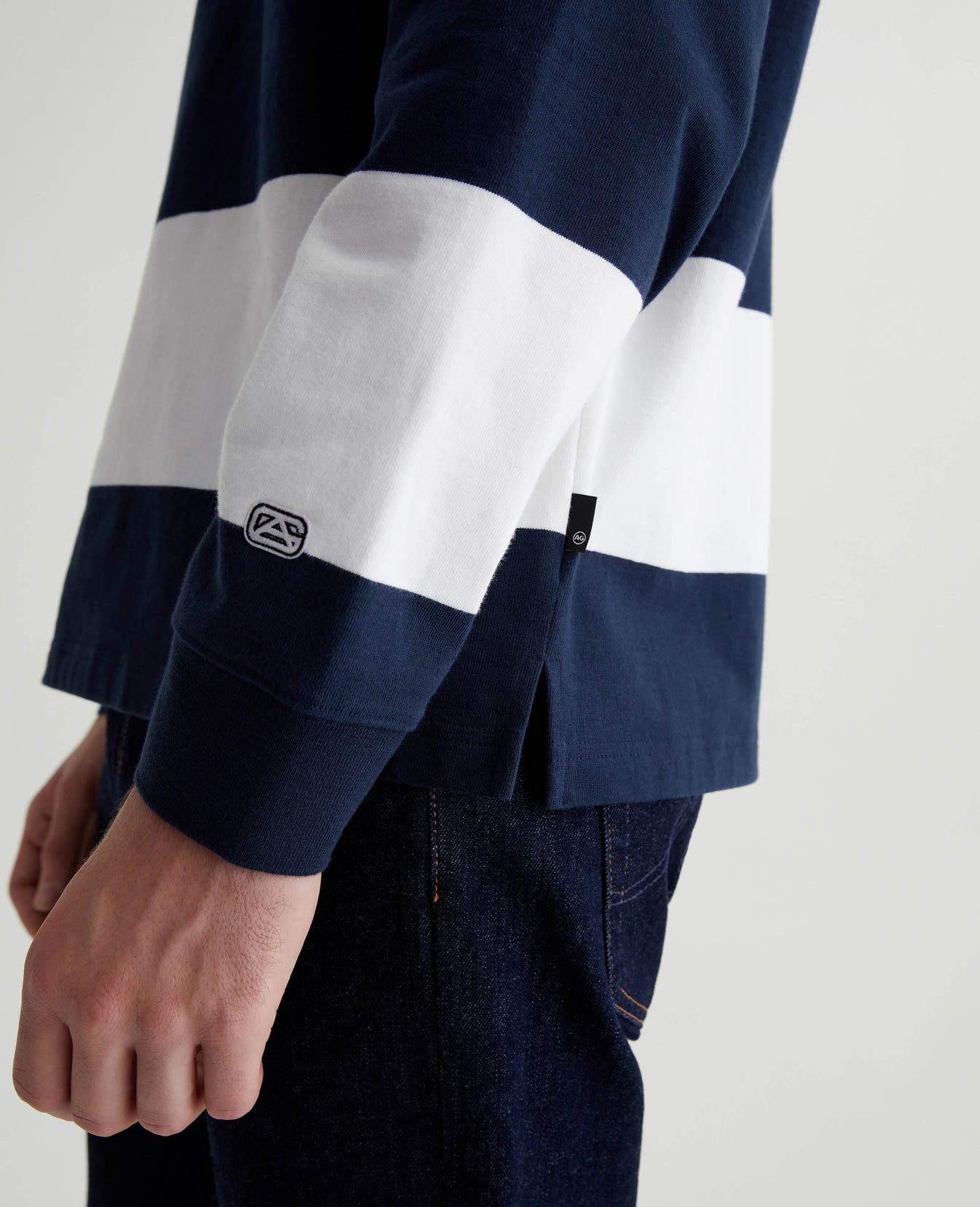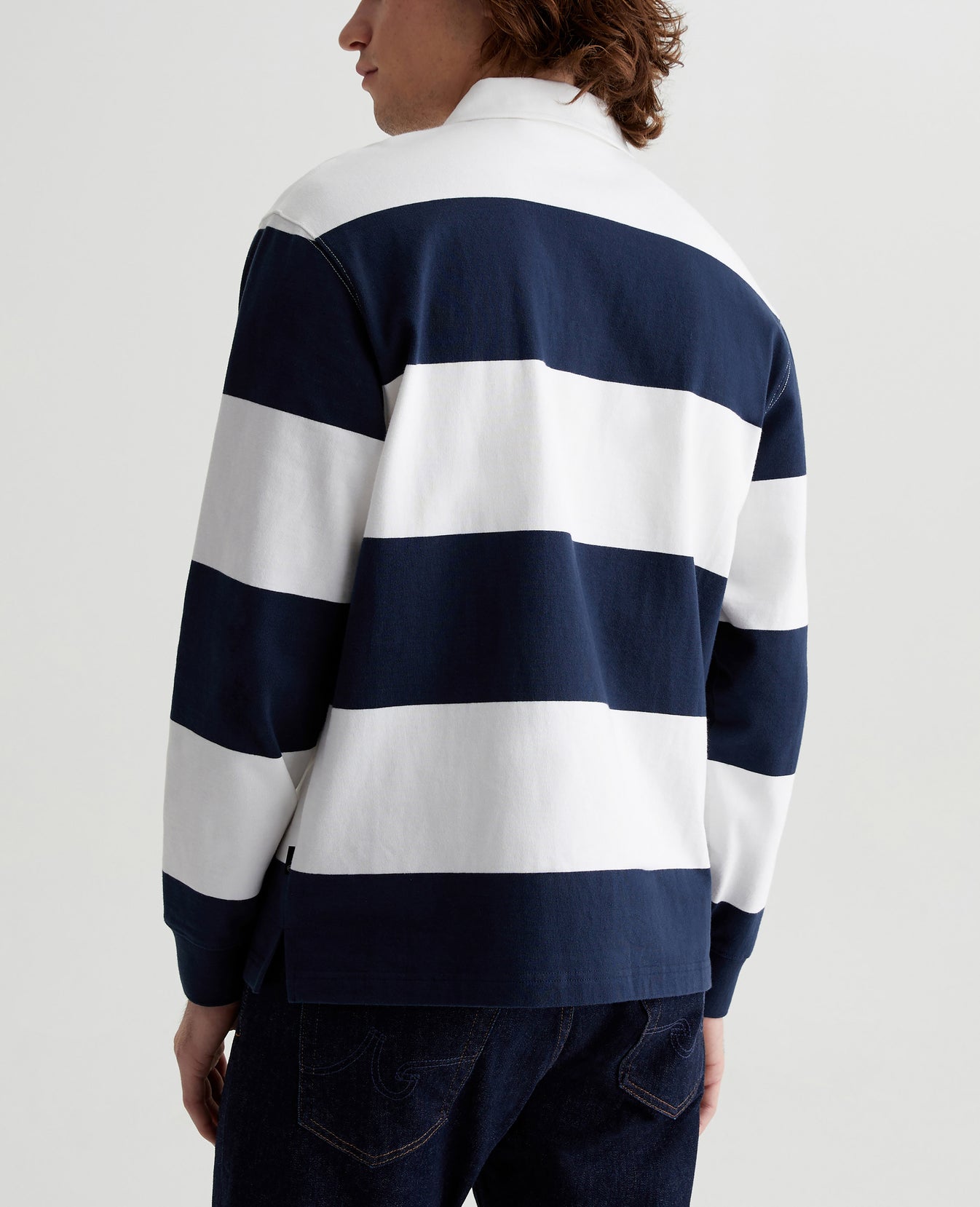 Inspired by vintage collegiate style, the Wade Rugby Shirt comes in heavy cotton jersey with wide stripes. The long-sleeve silhouette has a relaxed fit with a polo collar and a hidden button placket reinforced by cotton twill.