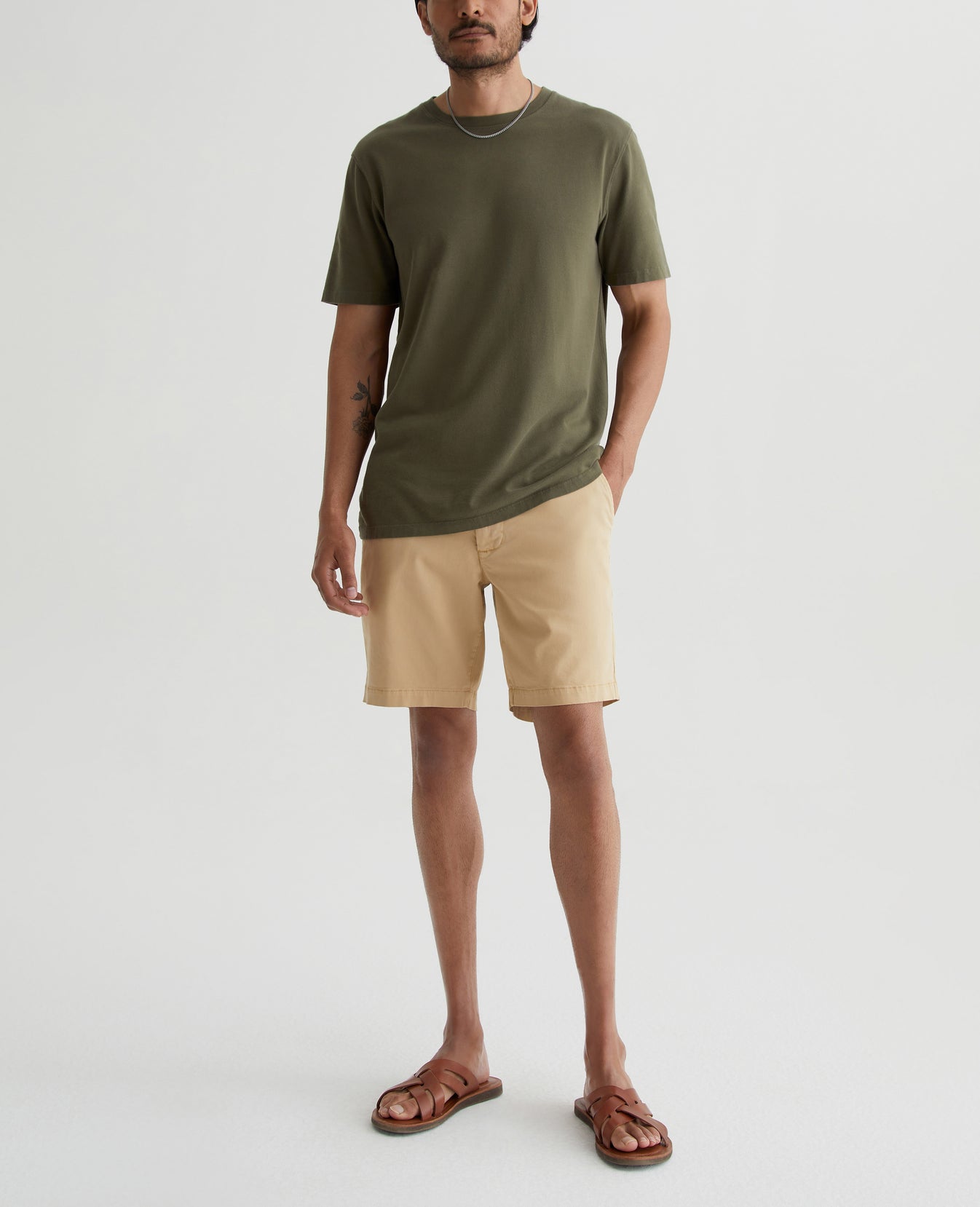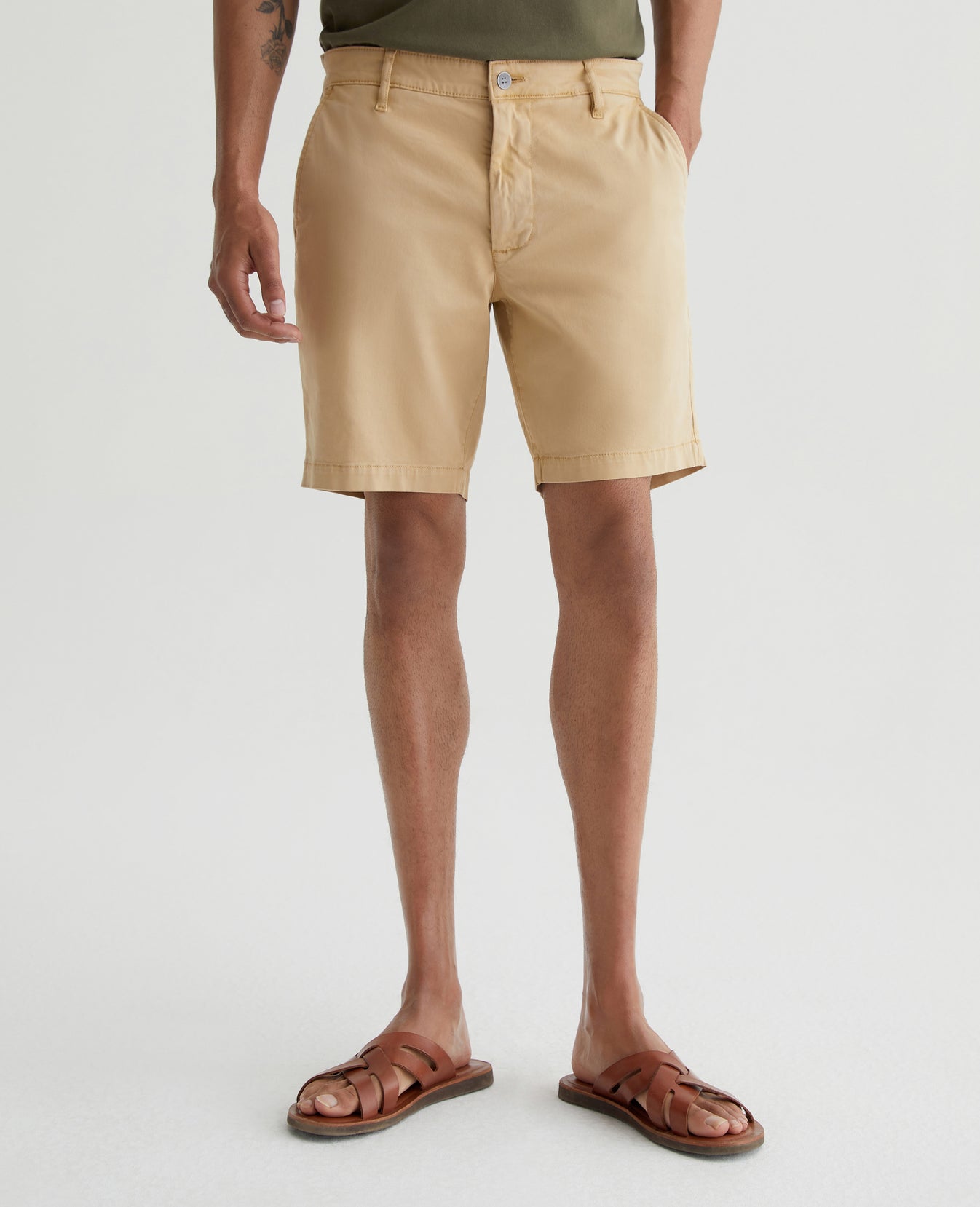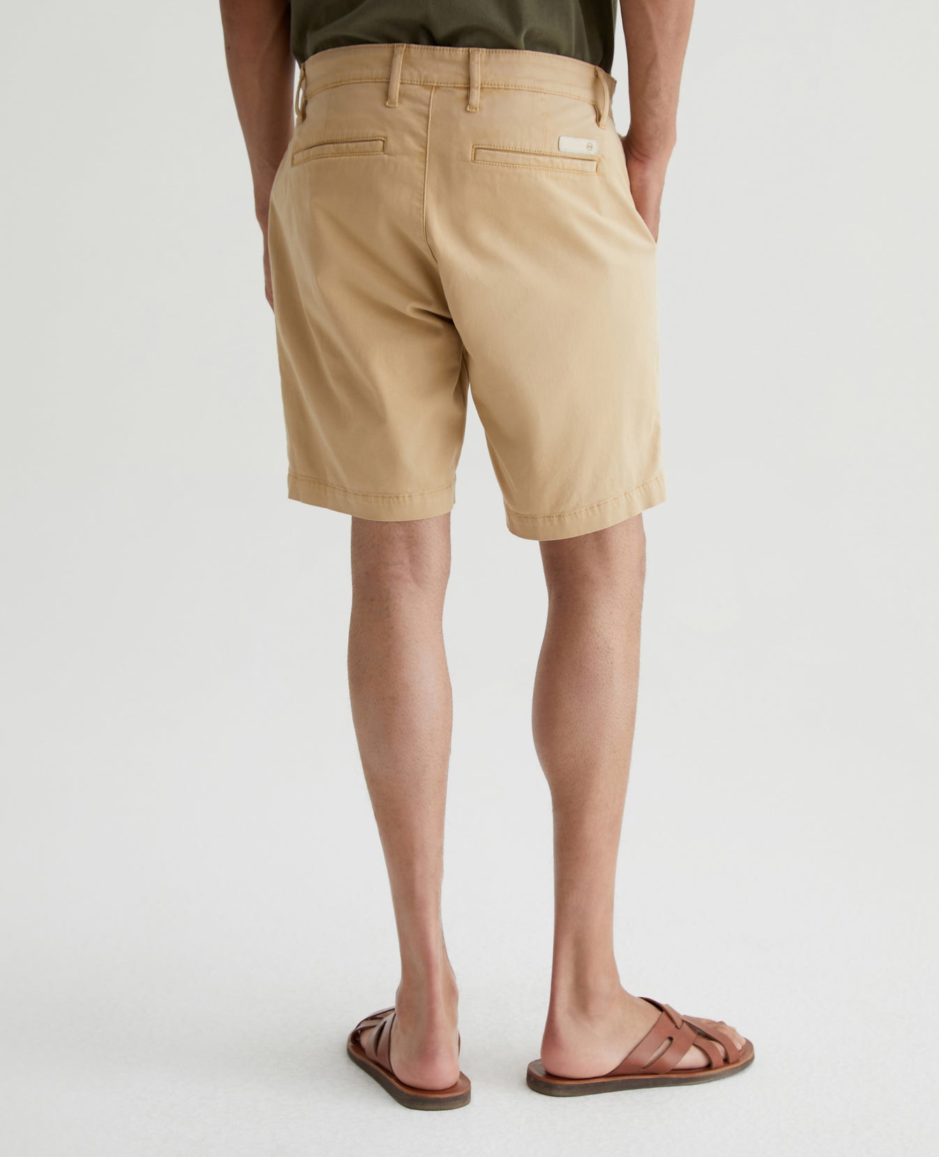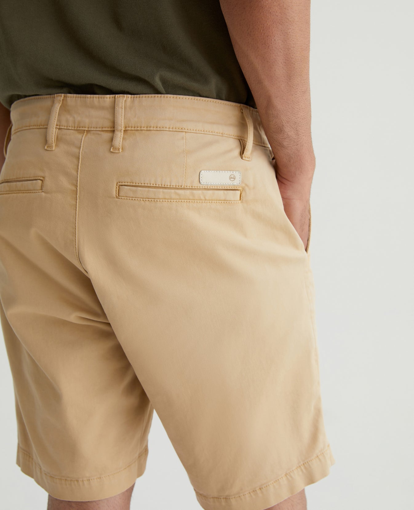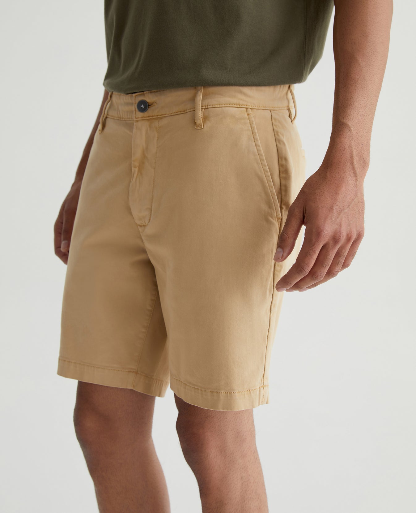 The Wanderer Short is a slim-cut trouser style with a slightly tapered leg opening. This men’s short features lightweight and sumptuous 7.4 oz. Brighton Sueded Sateen in a sulfur-dyed khaki color. There's a bit of stretch in the fabric to keep the fit feeling extra comfortable.
