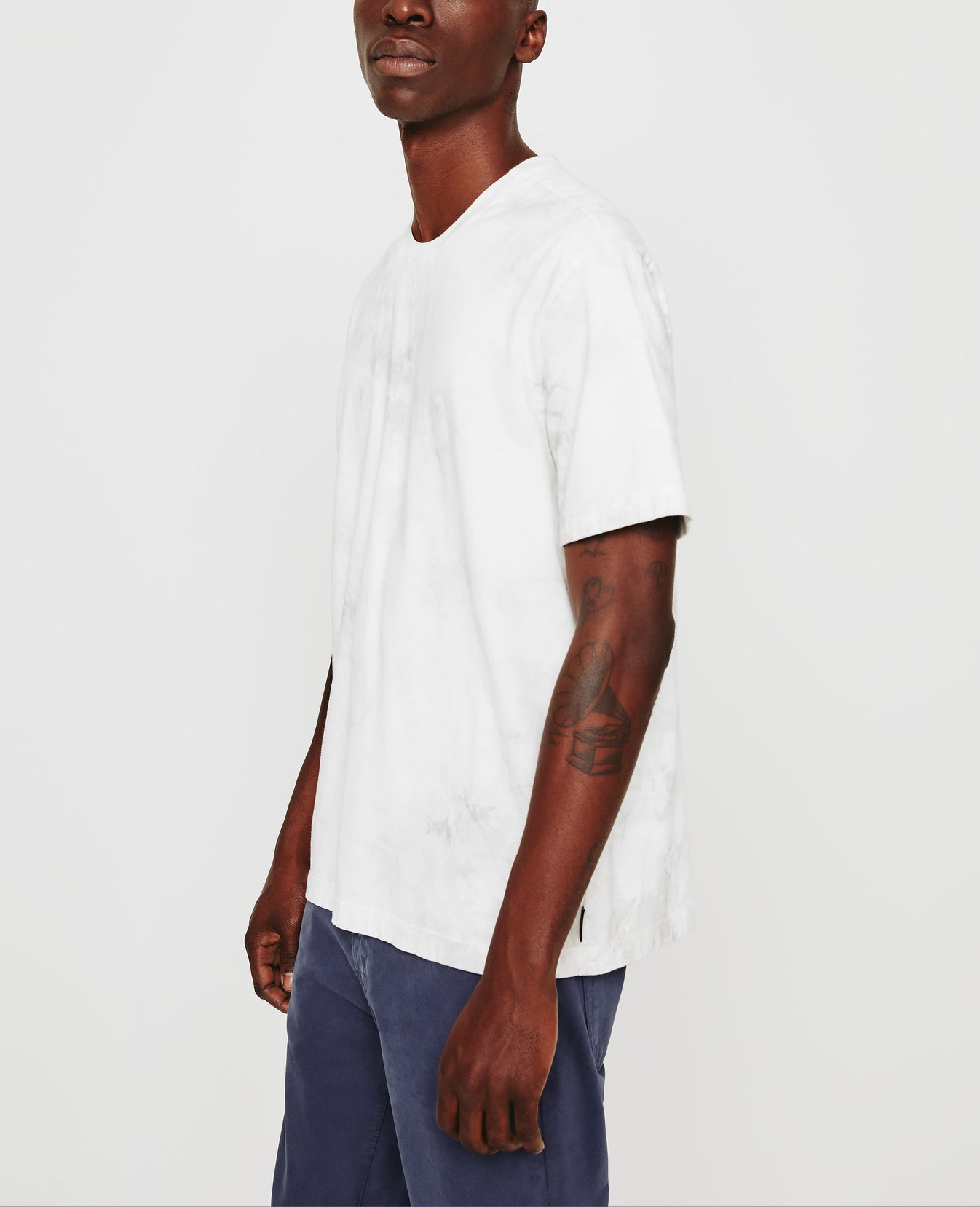 Our Wesley Crew is a relaxed short-sleeve tee for men. Done here in a faded gray tie-dye, the tee is designed with drop-shoulder detailing and a wider hem for a more fashion forward fit. Our Jersey Knit offers luxurious comfort that is unrivaled—knitted with both S-twist and Z-twist yarn to sustain longevity and stability, preventing unnecessary twisting and torquing. During the production process, the S-twist yarn is spun counterclockwise creating a right-handed twill. The Z-twist yarn works in opposition, spinning clockwise for a left-handed twill. This opposition—when working together—yields a softer, more durable fabrication and gives strength to the yarn making it more difficult to pull apart. Designed in 100% Cotton.